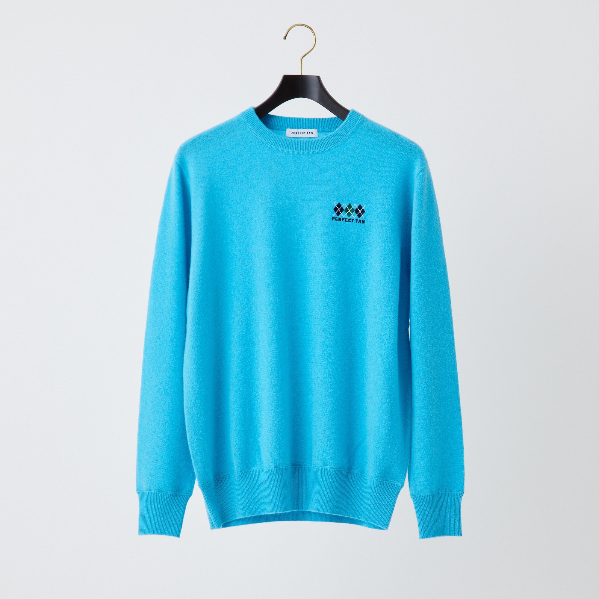 num:1 PERFECT TAN|《SALE》カシミヤクルーネック刺繍プルオーバー〈MENS〉