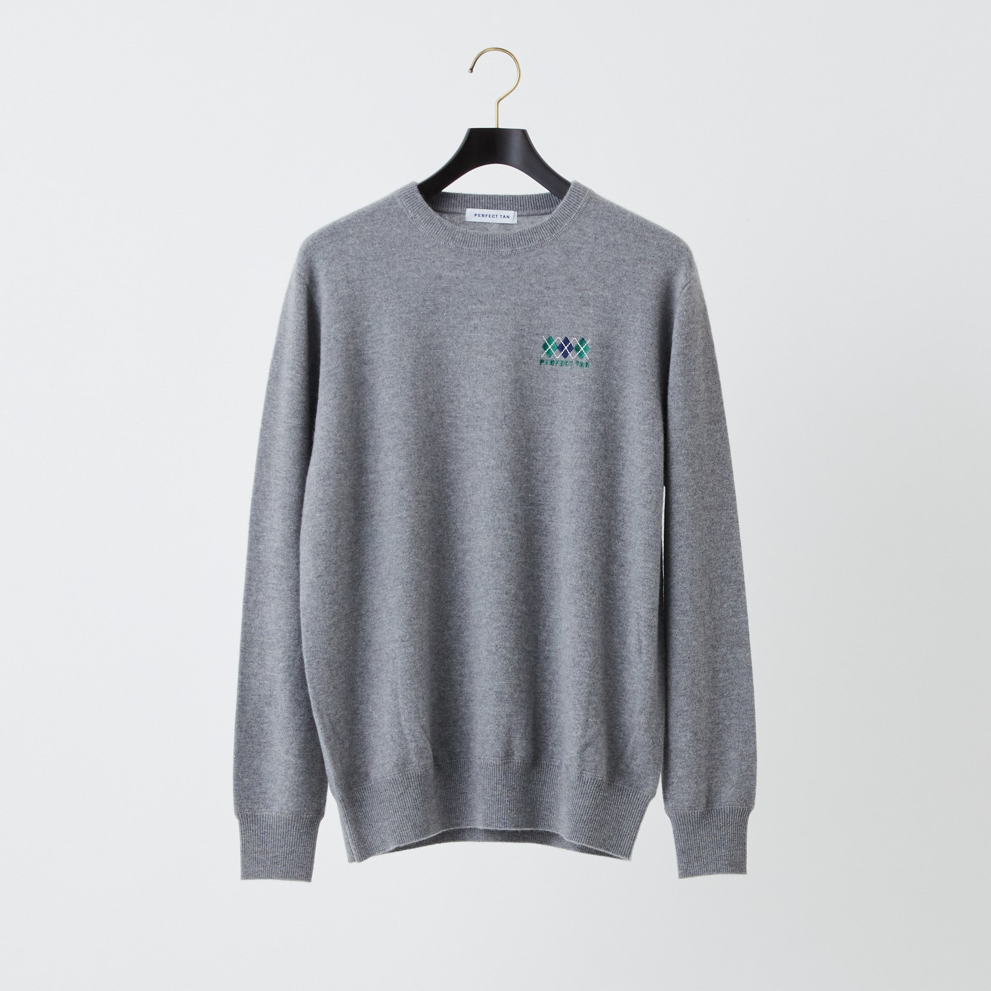num:3 PERFECT TAN|《SALE》カシミヤクルーネック刺繍プルオーバー〈MENS〉
