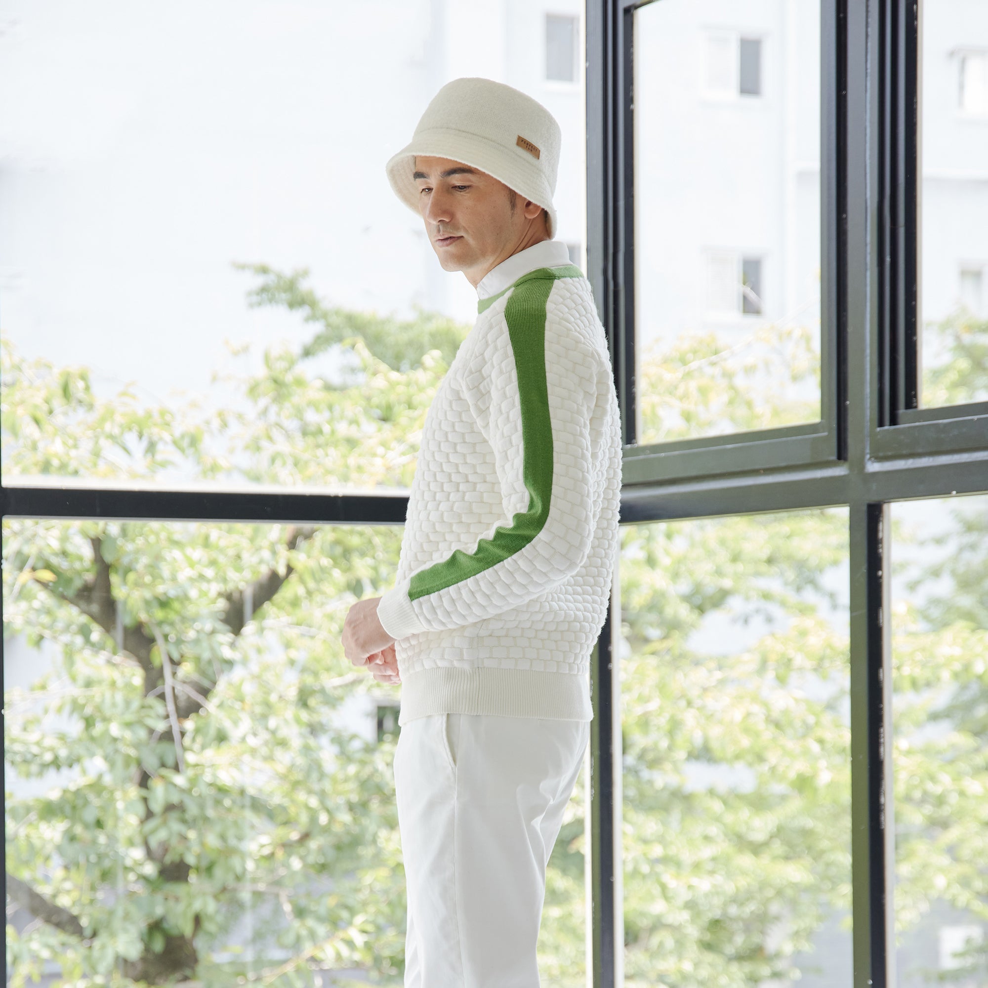 首周りは少し小さくしてモダンな印象に、そして腕、肩周りは可動域が広がるように設定、着用時の動きやすさにこだわりました。