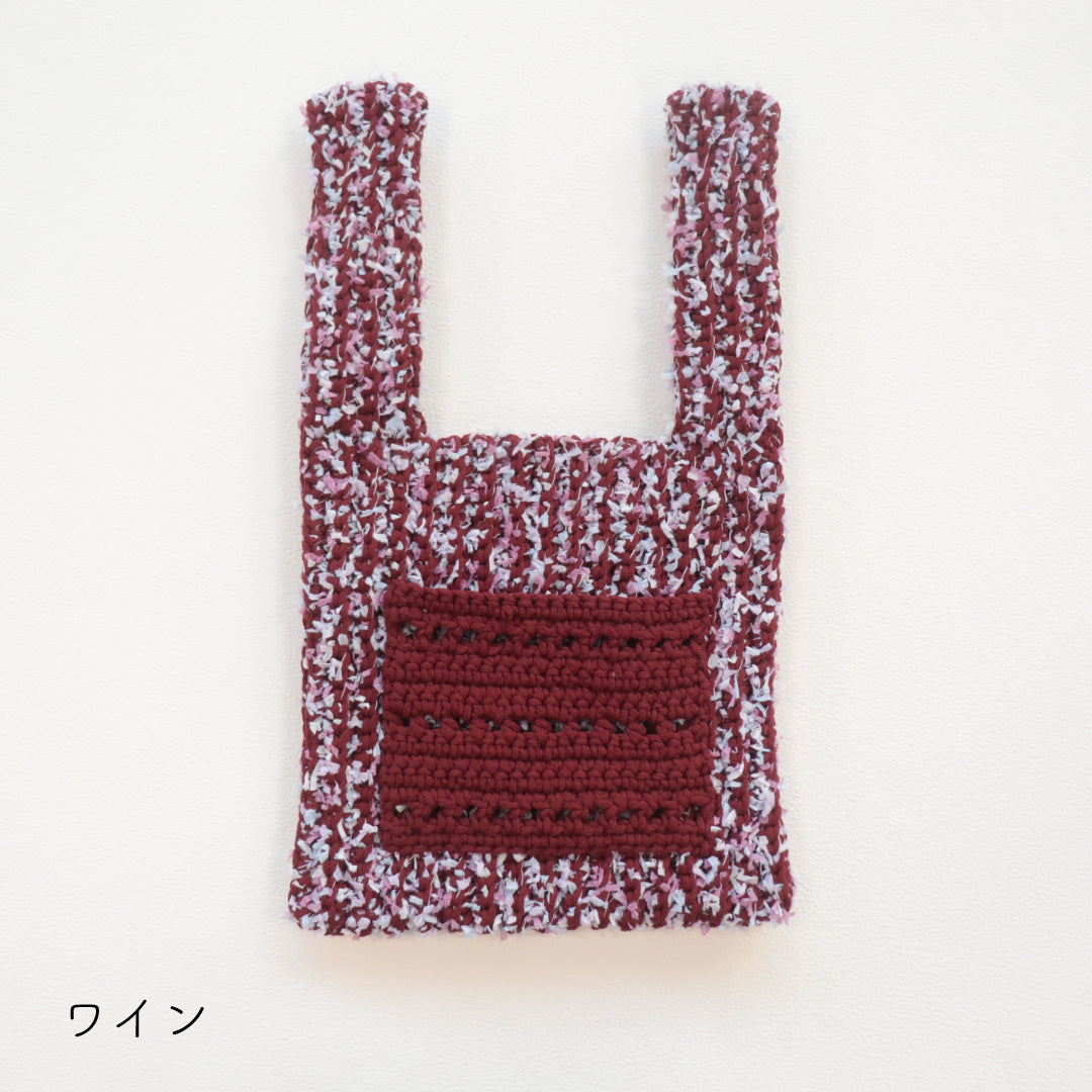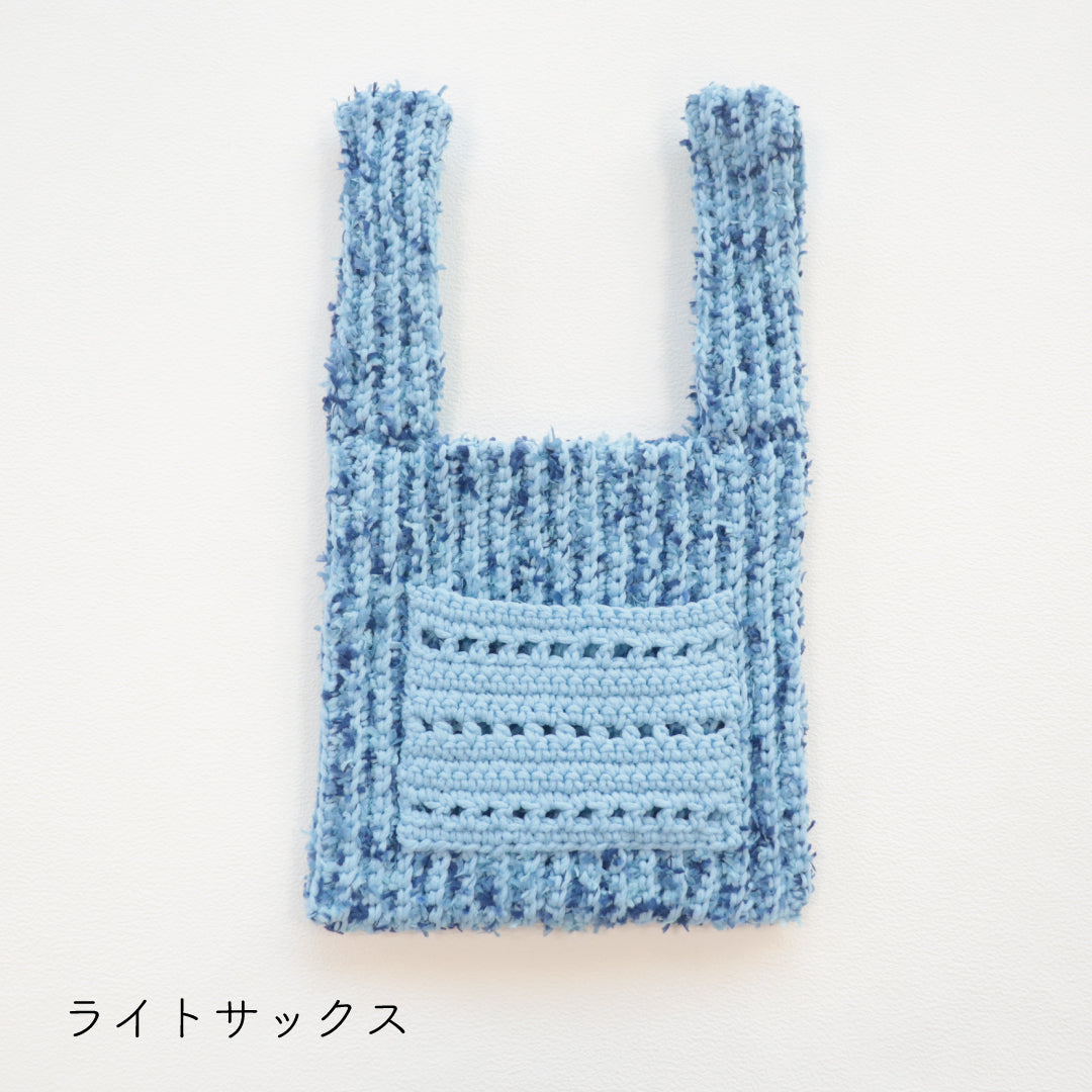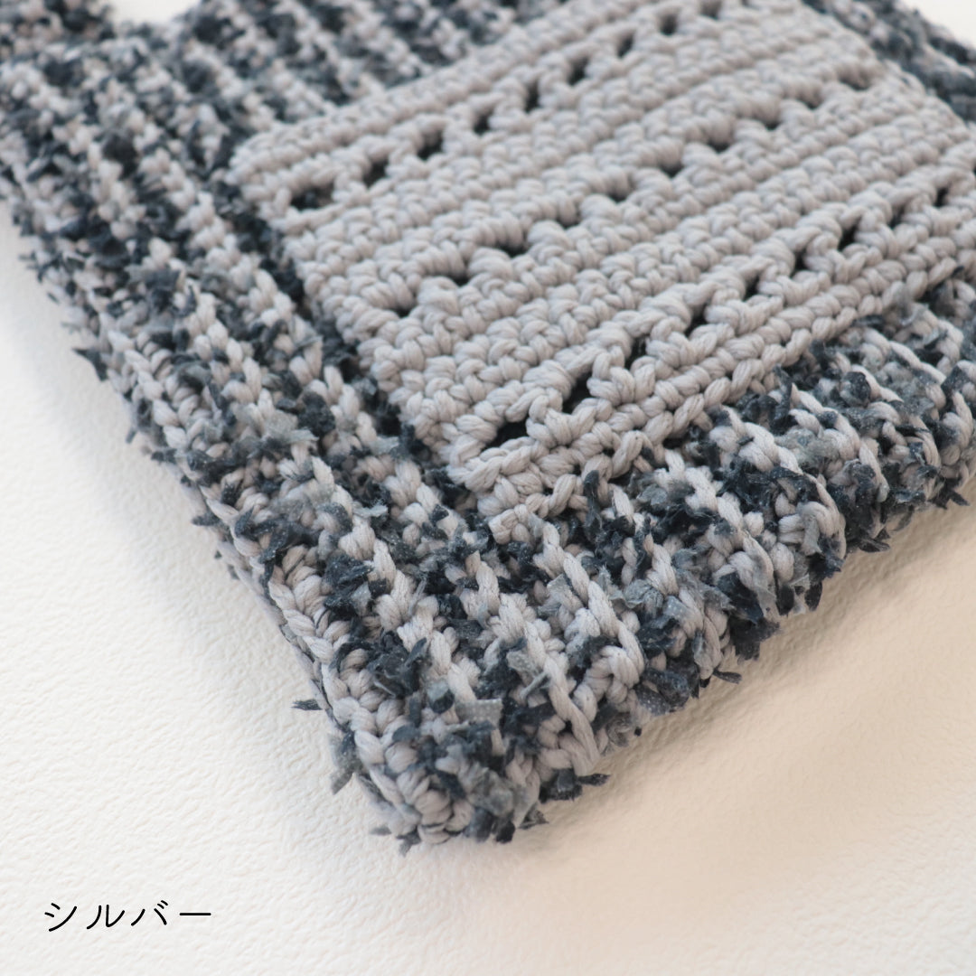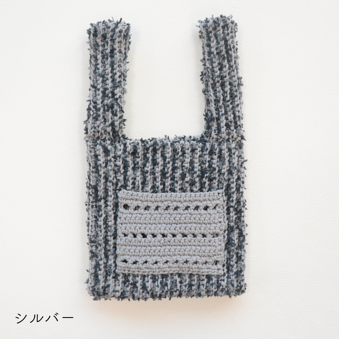 人気のプニペタバッグのpunyeco×petalバージョン!ポケットを付けたデザインにバージョンアップしました。少し長めの持ち手で荷物が出し入れしやすいデザイン。 うね編みとpetalの引き揃えで立体感のある編地に仕上がります。