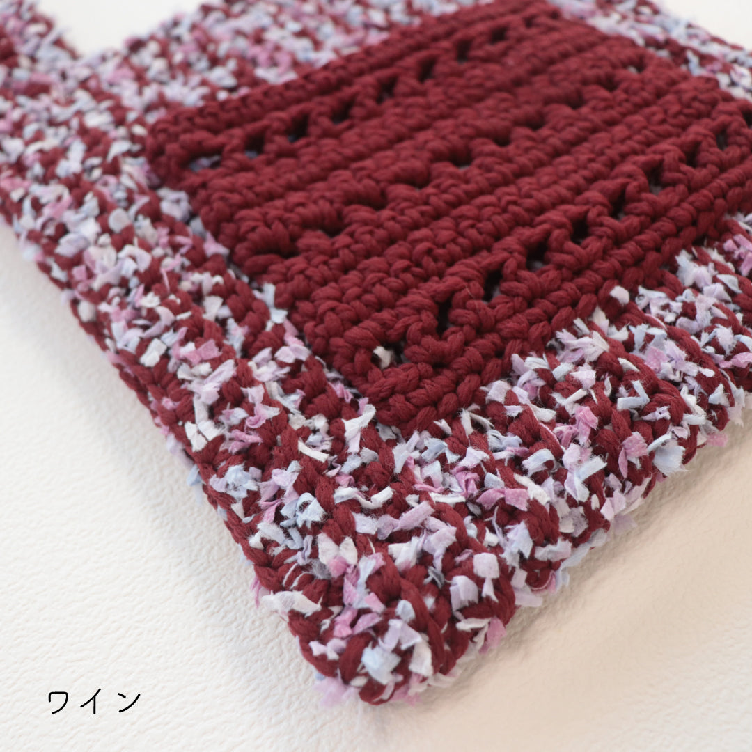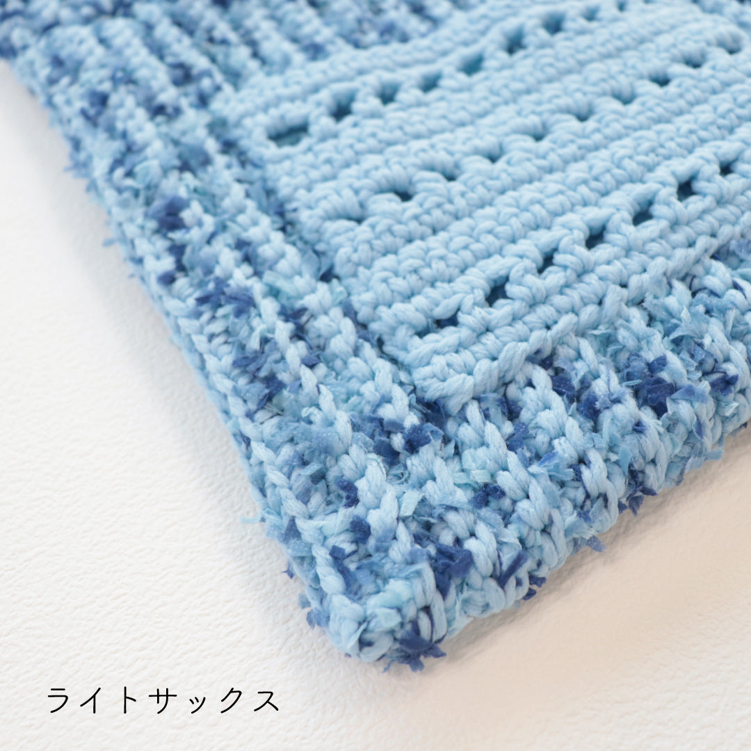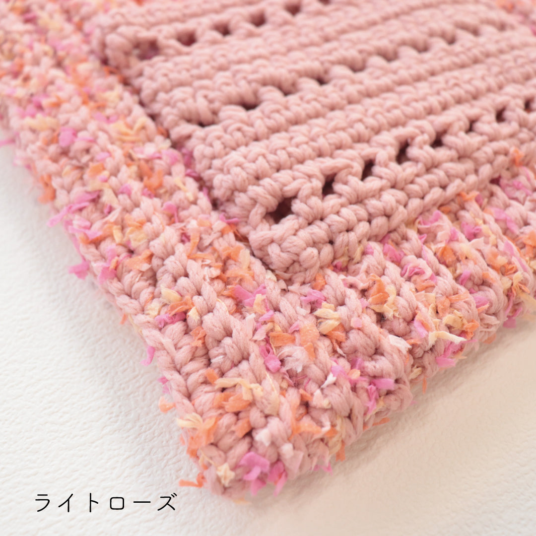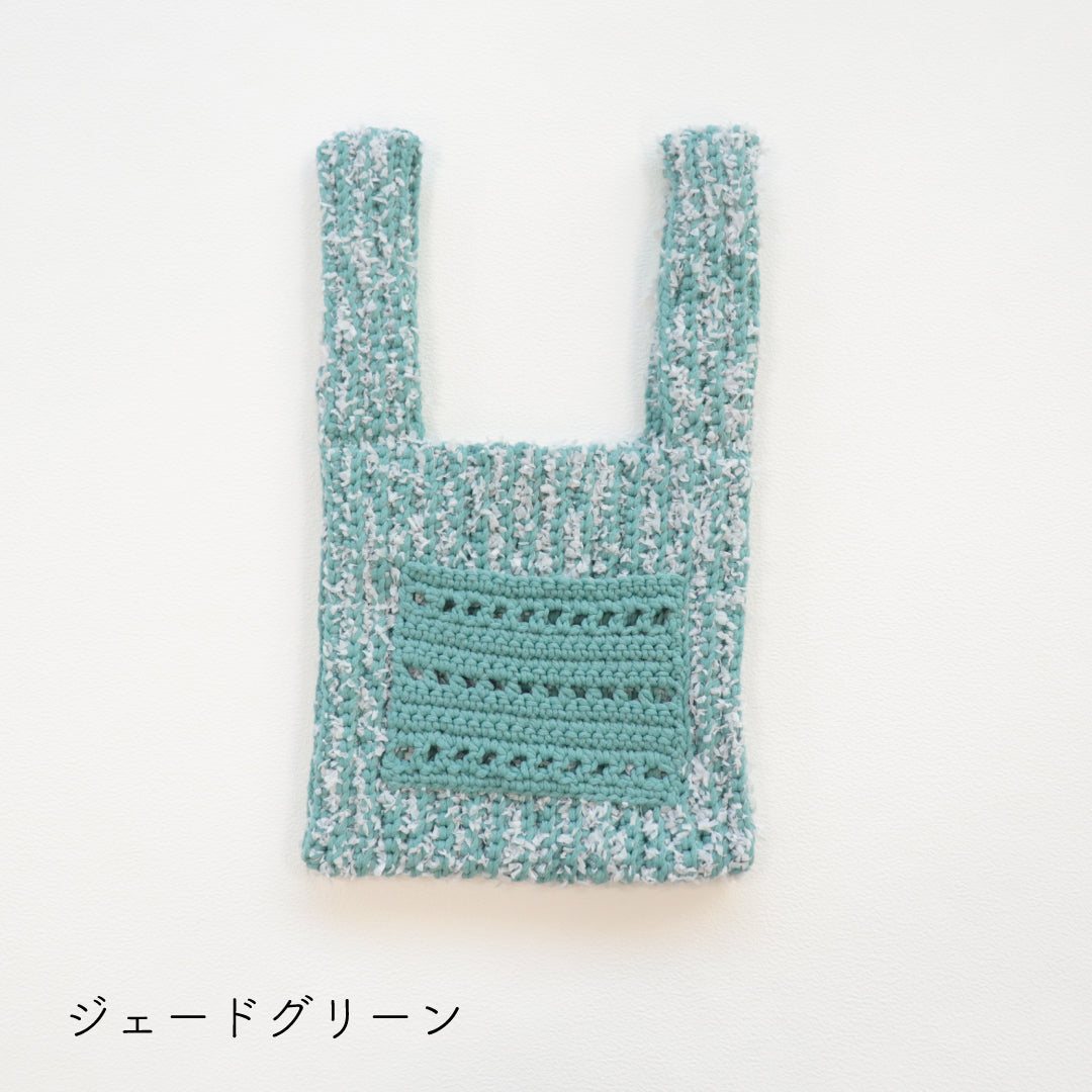 人気のプニペタバッグのpunyeco×petalバージョン!ポケットを付けたデザインにバージョンアップしました。少し長めの持ち手で荷物が出し入れしやすいデザイン。 うね編みとpetalの引き揃えで立体感のある編地に仕上がります。