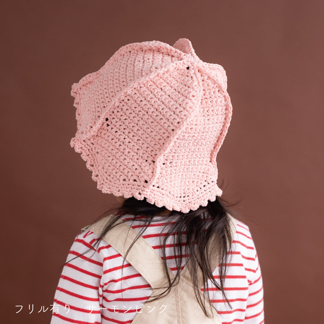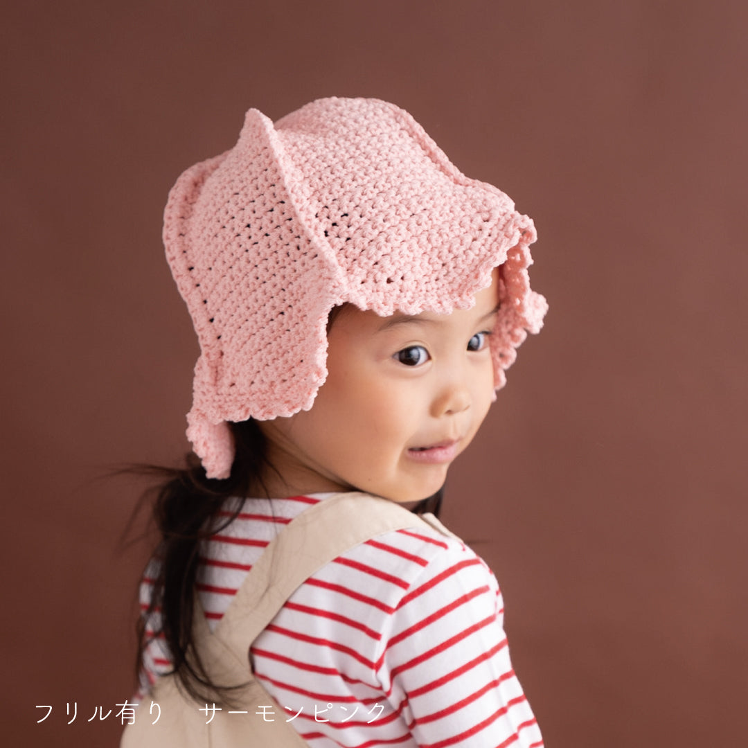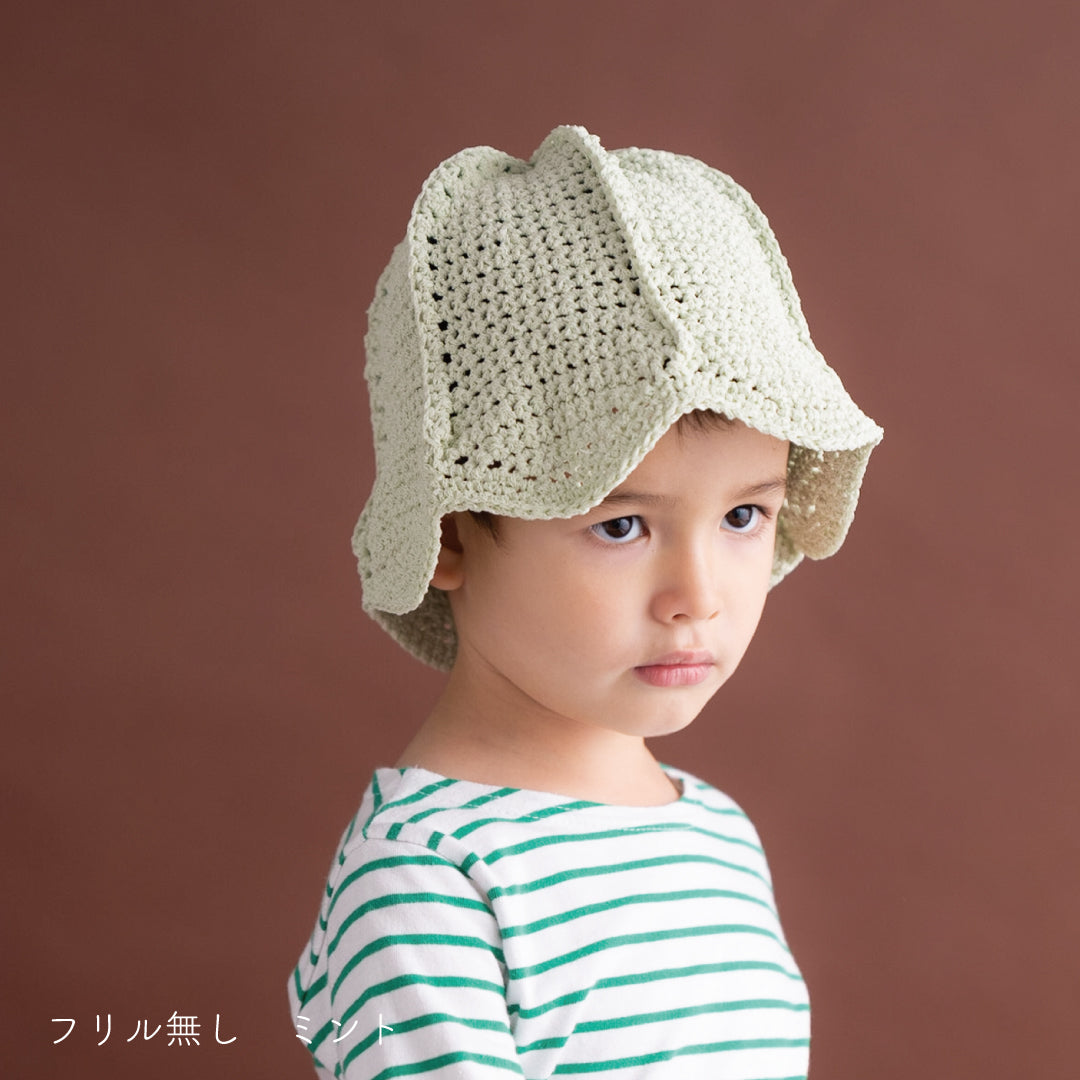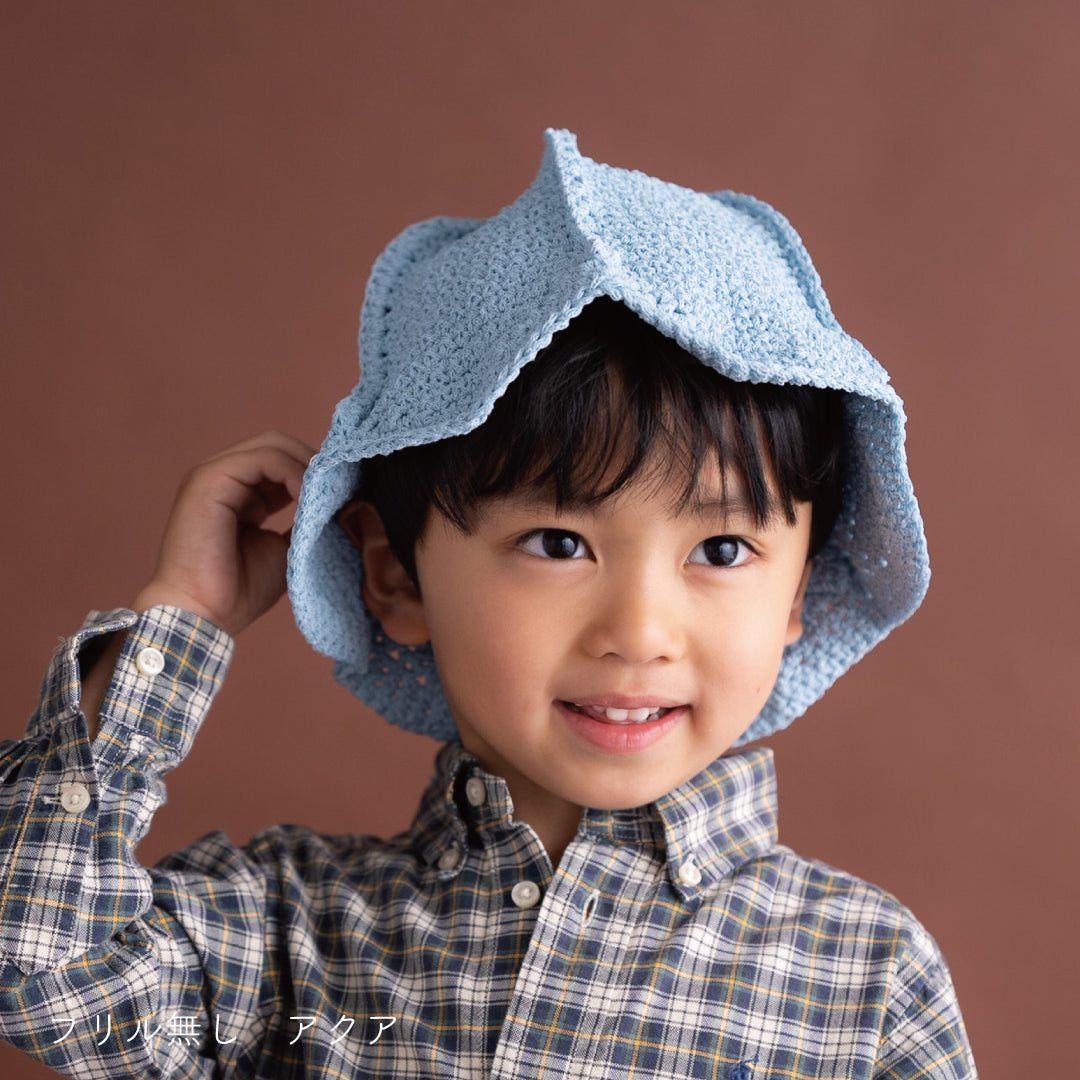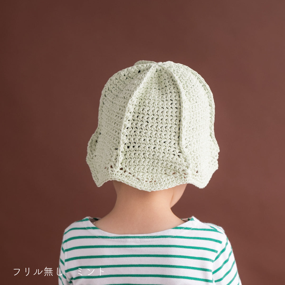 目元から首後ろまでしっかり鍔(つば)があるので夏の強い日差しよけになります。和紙でできたSHANAは通気性もよく涼やかにかぶることができます。ライトグレーは上品な雰囲気ですが、ベージュやキャメルならナチュラル感が出て、ブルー系やピンク系だとカジュアルな雰囲気で様々なコーデを楽しめます。キッズサイズにはフリル付きの編み図になっているので、シンプルデザインもフリルデザインもお子さんの好きなデザインをお選びいただけます。おそろいにしたり、プレゼントにもぴったりです!