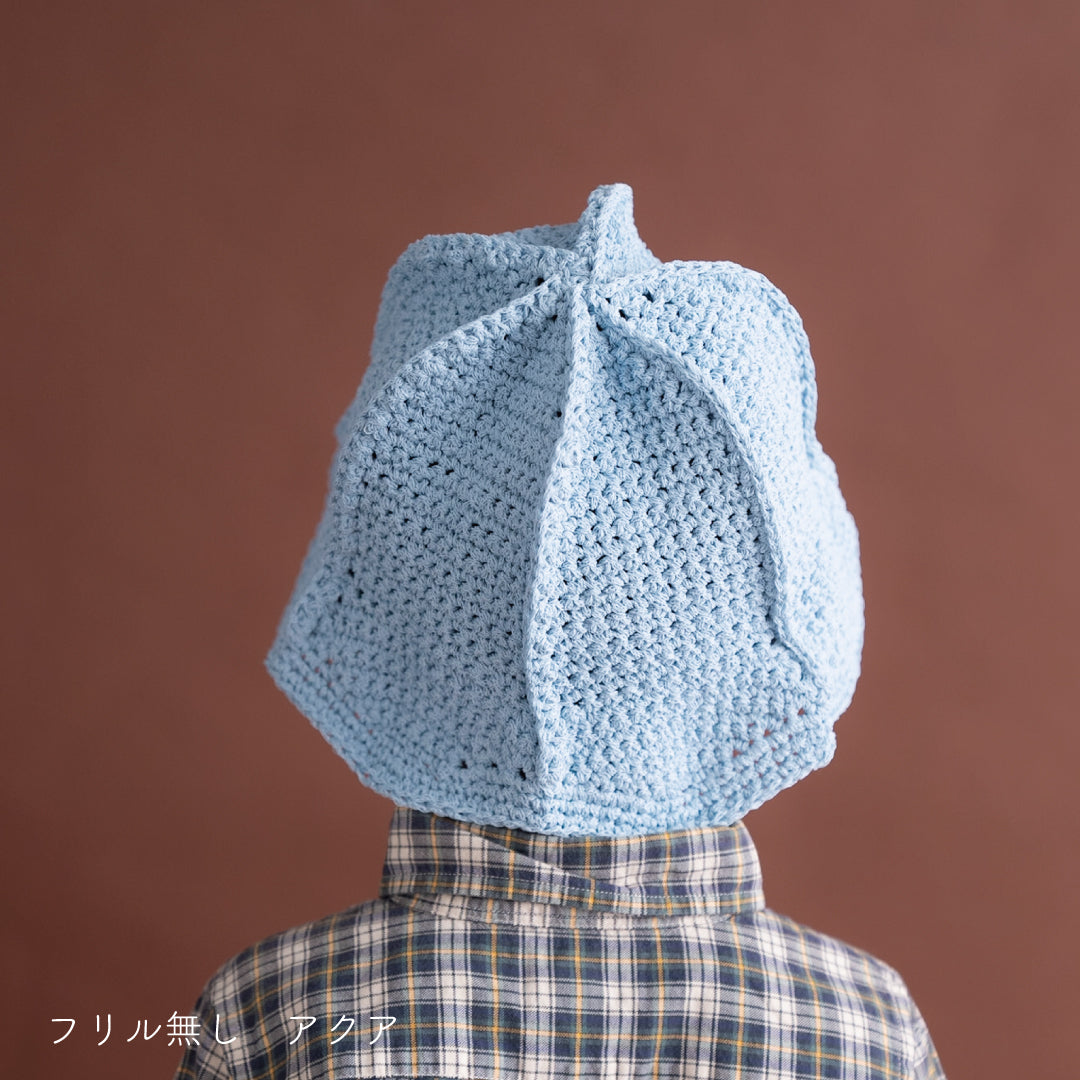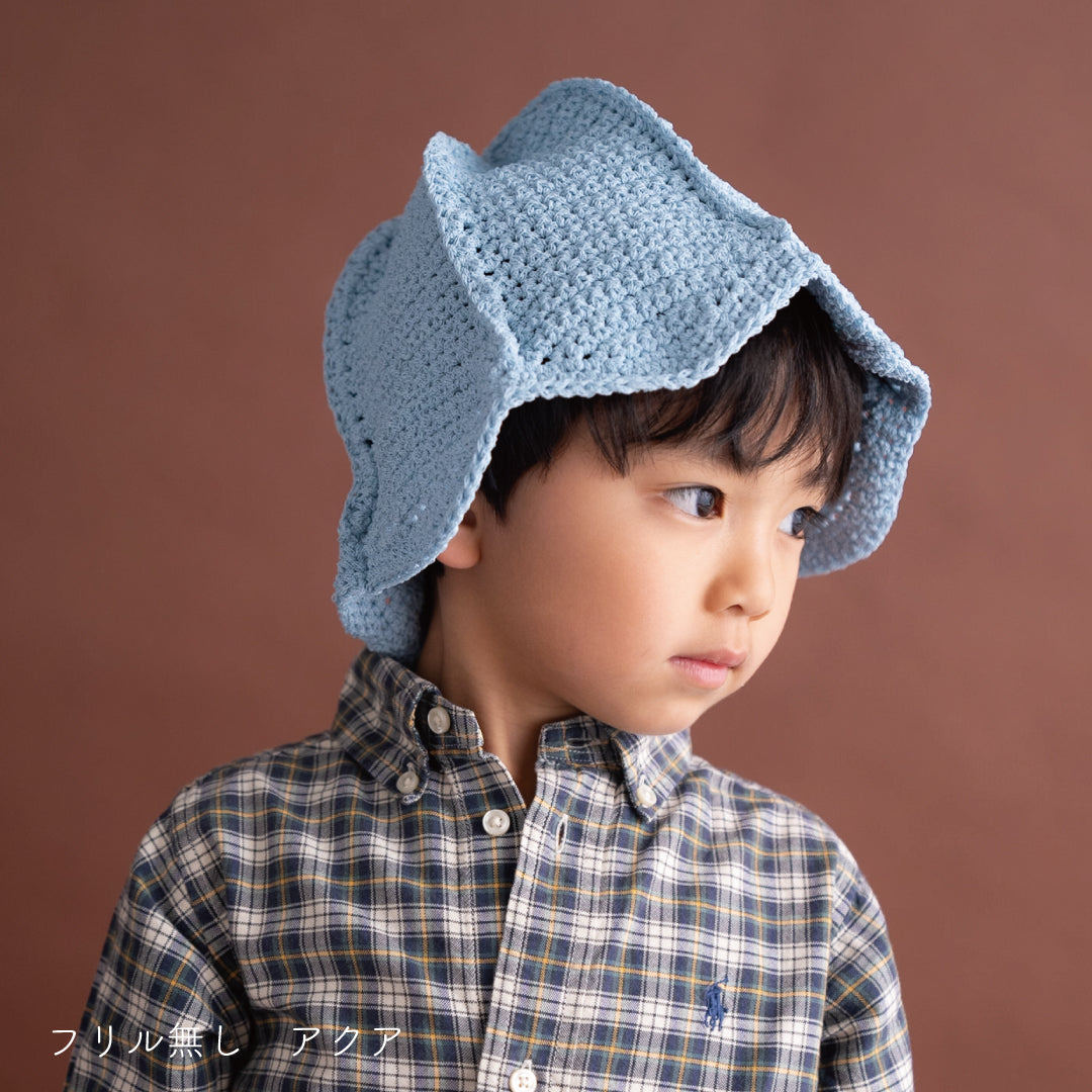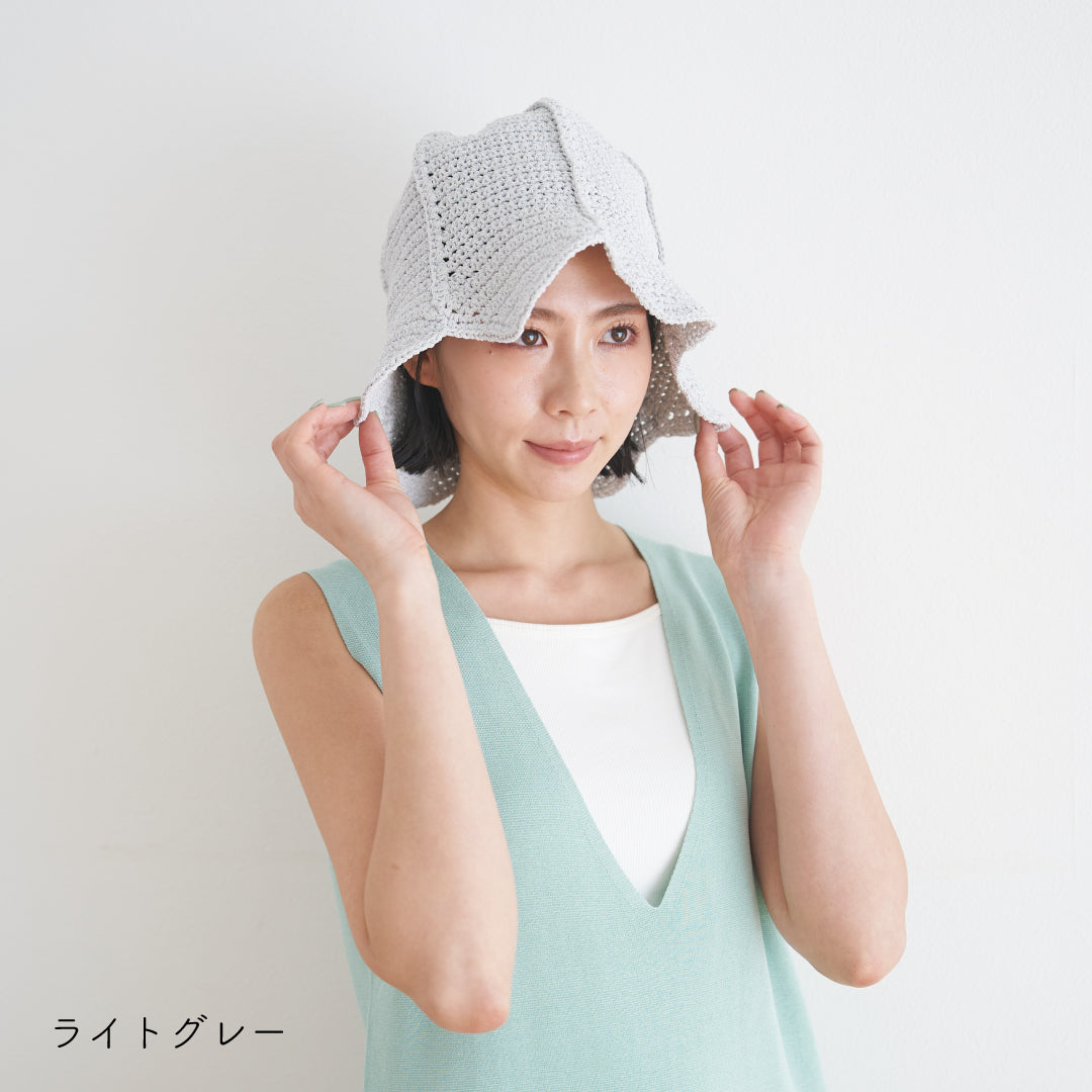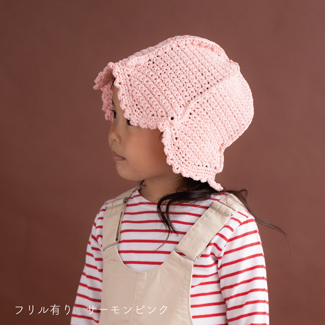 目元から首後ろまでしっかり鍔(つば)があるので夏の強い日差しよけになります。和紙でできたSHANAは通気性もよく涼やかにかぶることができます。ライトグレーは上品な雰囲気ですが、ベージュやキャメルならナチュラル感が出て、ブルー系やピンク系だとカジュアルな雰囲気で様々なコーデを楽しめます。キッズサイズにはフリル付きの編み図になっているので、シンプルデザインもフリルデザインもお子さんの好きなデザインをお選びいただけます。おそろいにしたり、プレゼントにもぴったりです!
