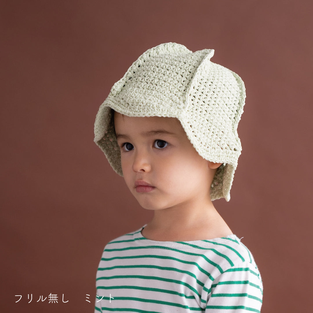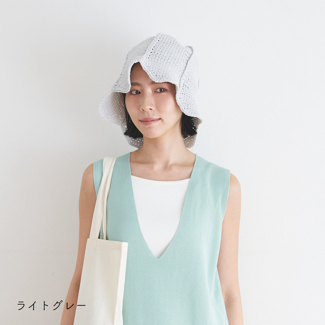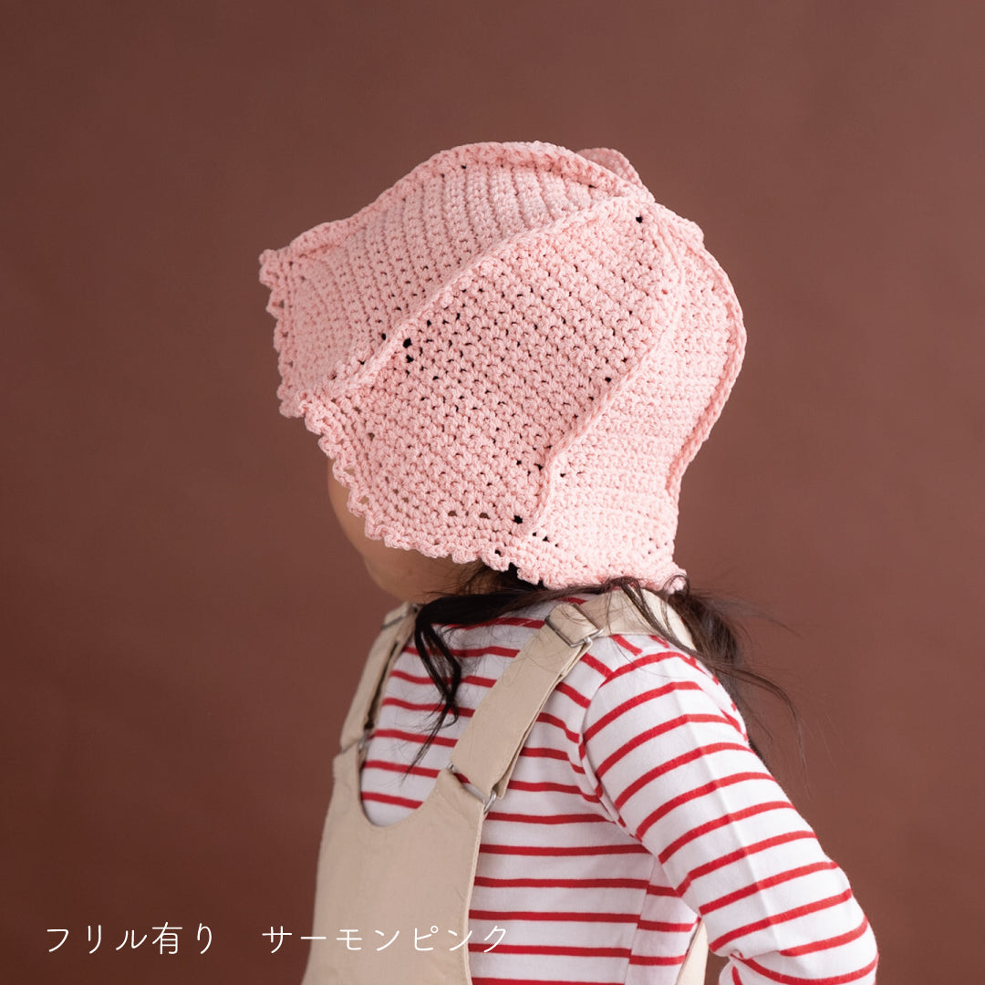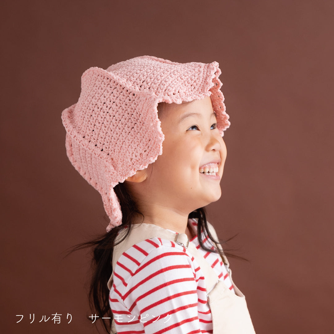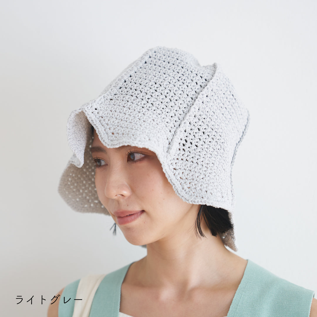 目元から首後ろまでしっかり鍔(つば)があるので夏の強い日差しよけになります。和紙でできたSHANAは通気性もよく涼やかにかぶることができます。ライトグレーは上品な雰囲気ですが、ベージュやキャメルならナチュラル感が出て、ブルー系やピンク系だとカジュアルな雰囲気で様々なコーデを楽しめます。キッズサイズにはフリル付きの編み図になっているので、シンプルデザインもフリルデザインもお子さんの好きなデザインをお選びいただけます。おそろいにしたり、プレゼントにもぴったりです!