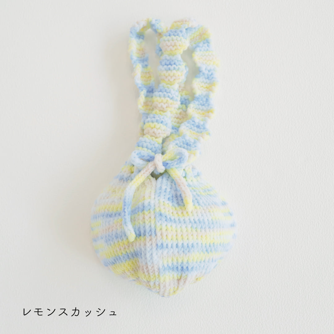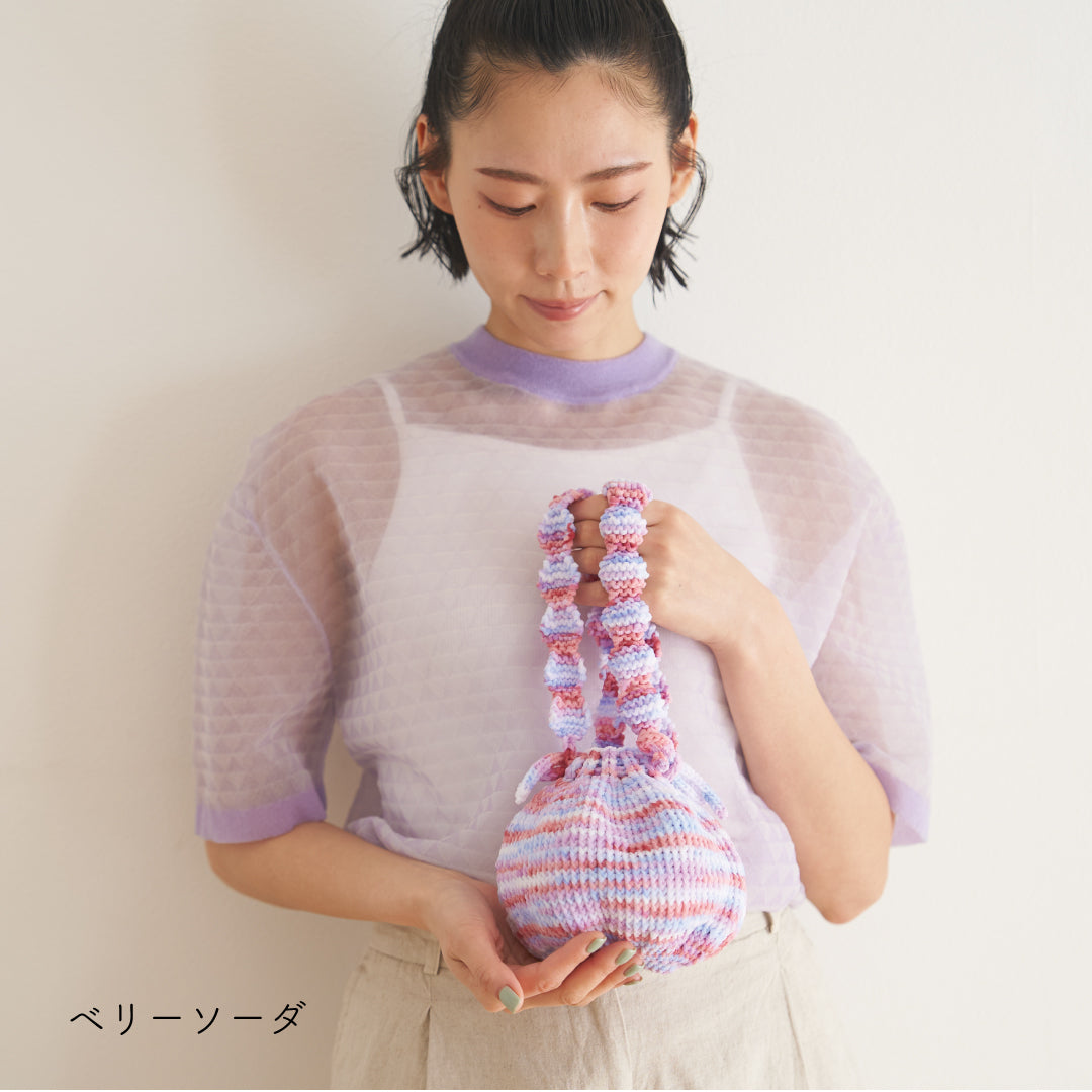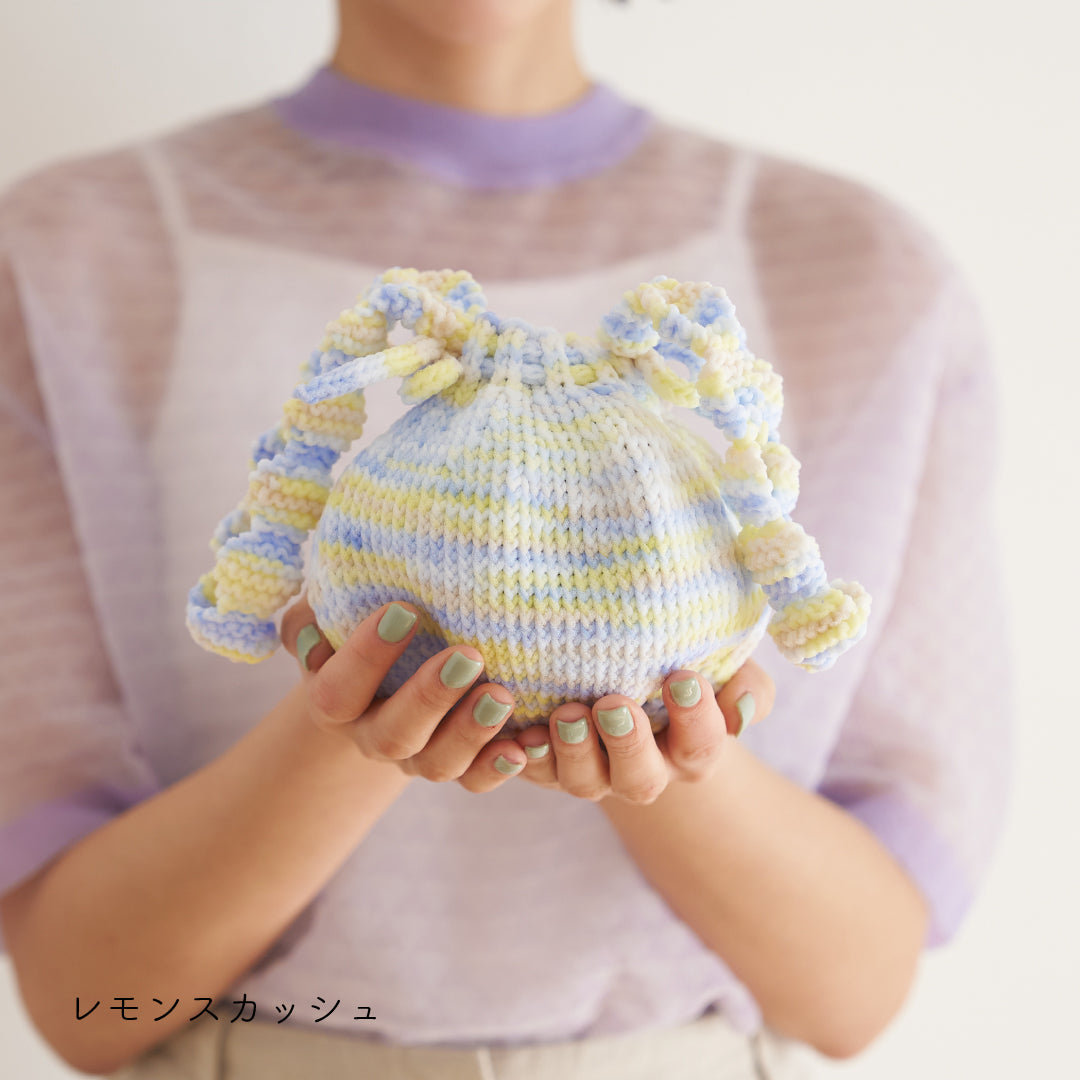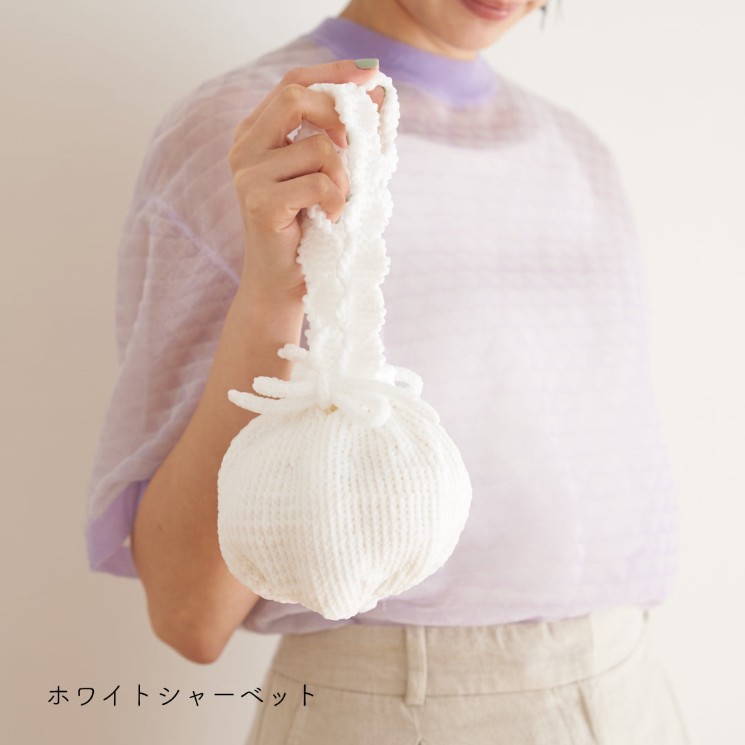 こちらはchocoshoeさんで企画販売していただいたキットです。sawada ittoでも期間限定のお取り扱いがスタート。chocoshoeさんならではな個性的でかわいいデザインがポイント。マッシュルームのような丸いシルエットがキュートなミニバッグです。 使用しているNAILYという糸は、チュールのような軽さと透け感のある素材で夏にぴったり。お財布やリップ、ミラーやハンカチが入るサイズ感です。