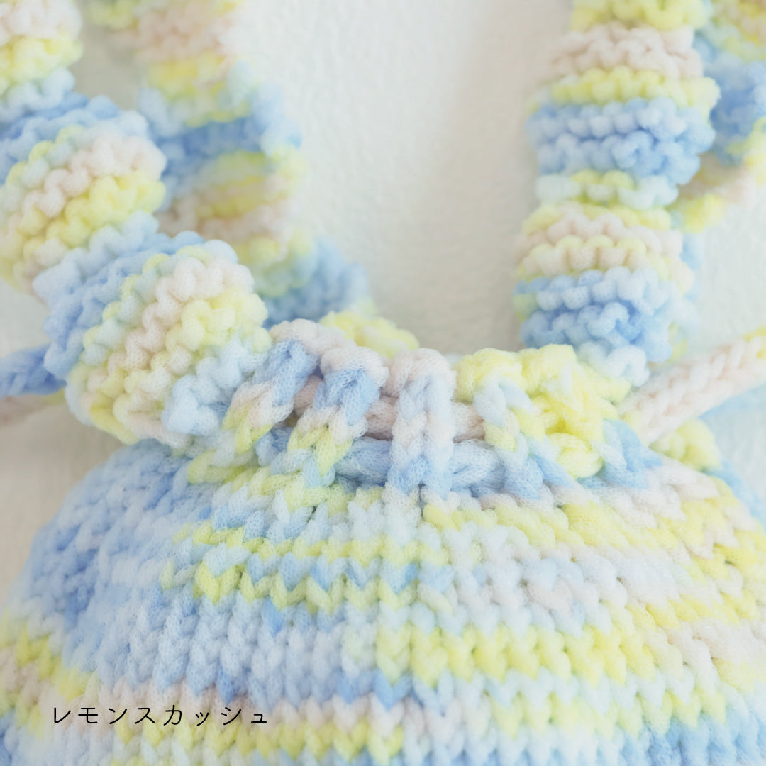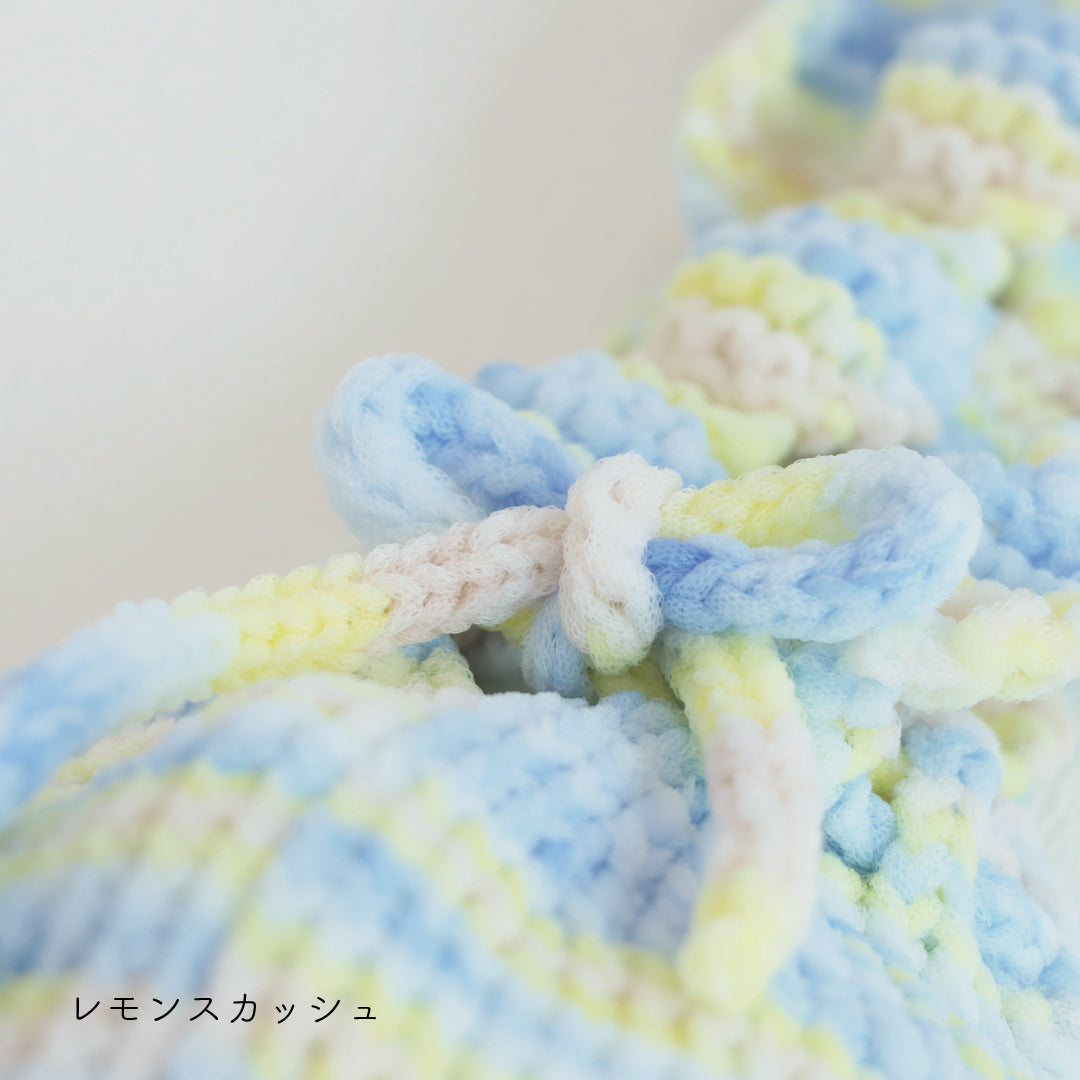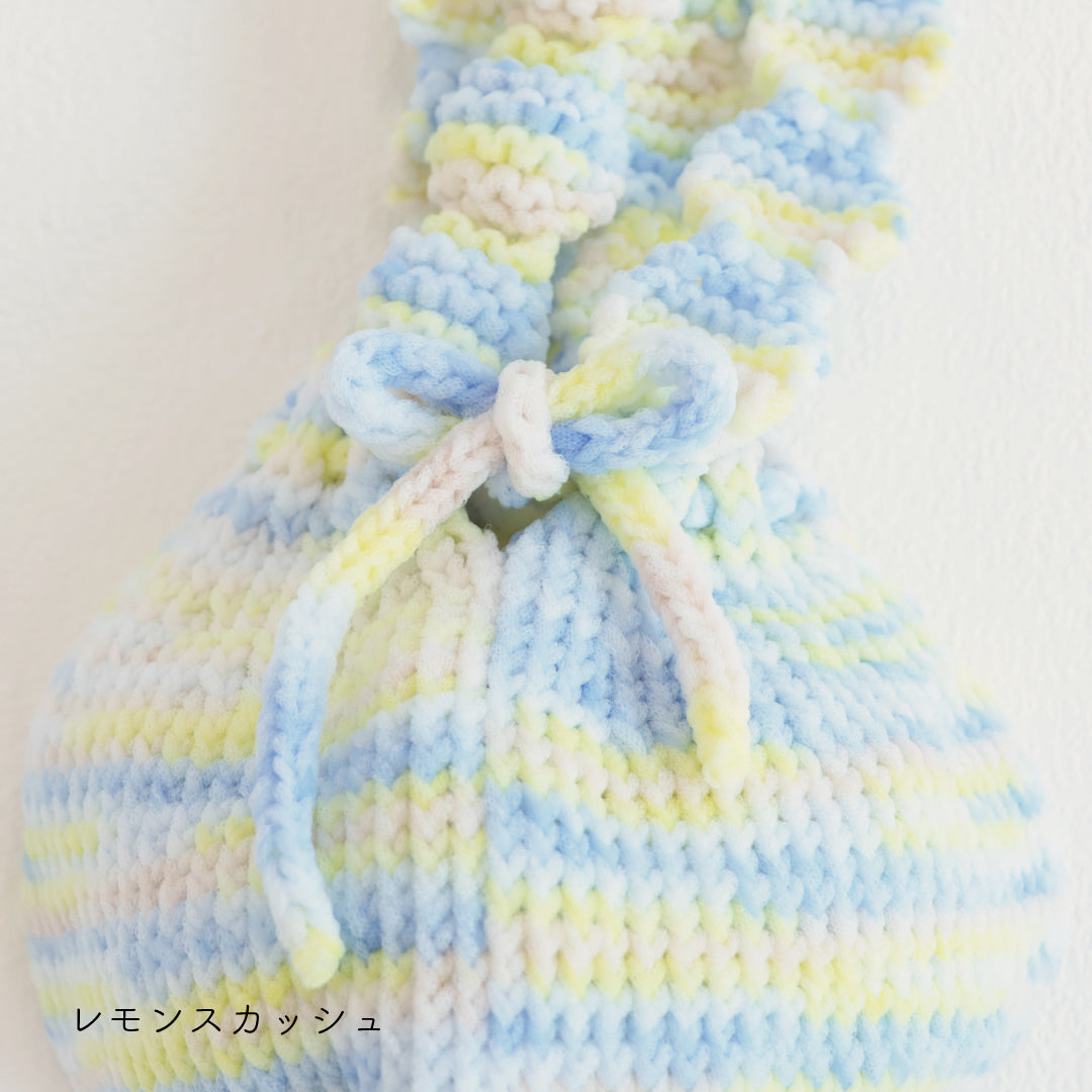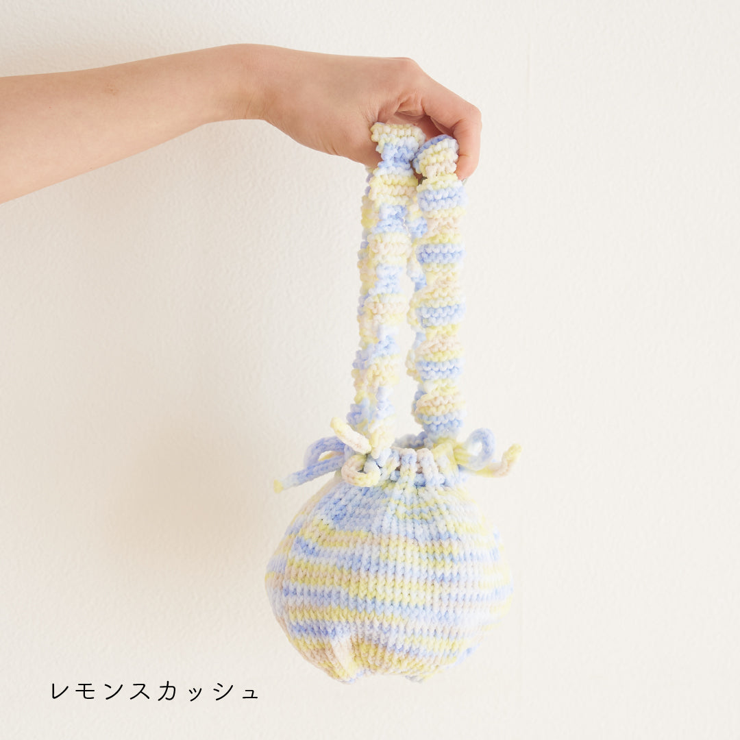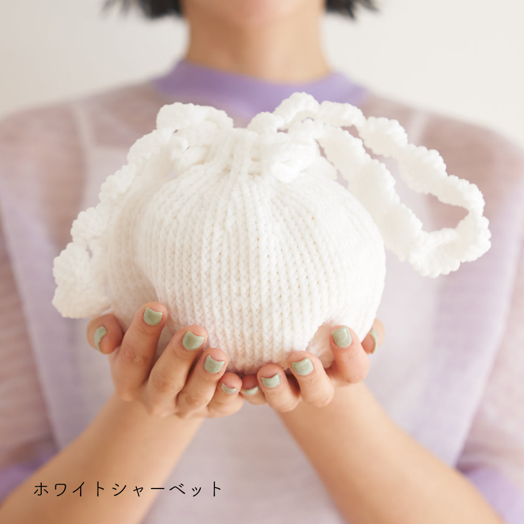 こちらはchocoshoeさんで企画販売していただいたキットです。sawada ittoでも期間限定のお取り扱いがスタート。chocoshoeさんならではな個性的でかわいいデザインがポイント。マッシュルームのような丸いシルエットがキュートなミニバッグです。 使用しているNAILYという糸は、チュールのような軽さと透け感のある素材で夏にぴったり。お財布やリップ、ミラーやハンカチが入るサイズ感です。