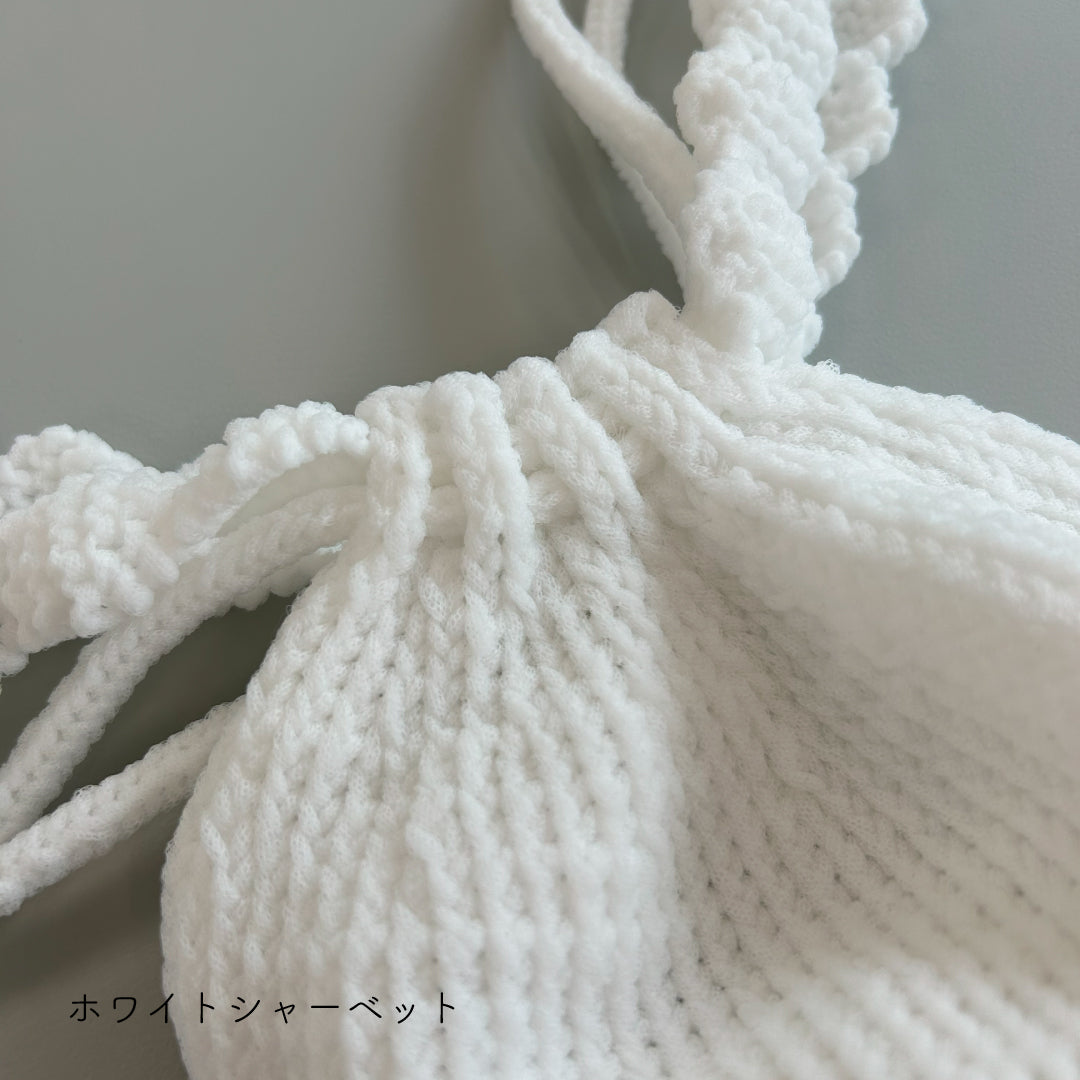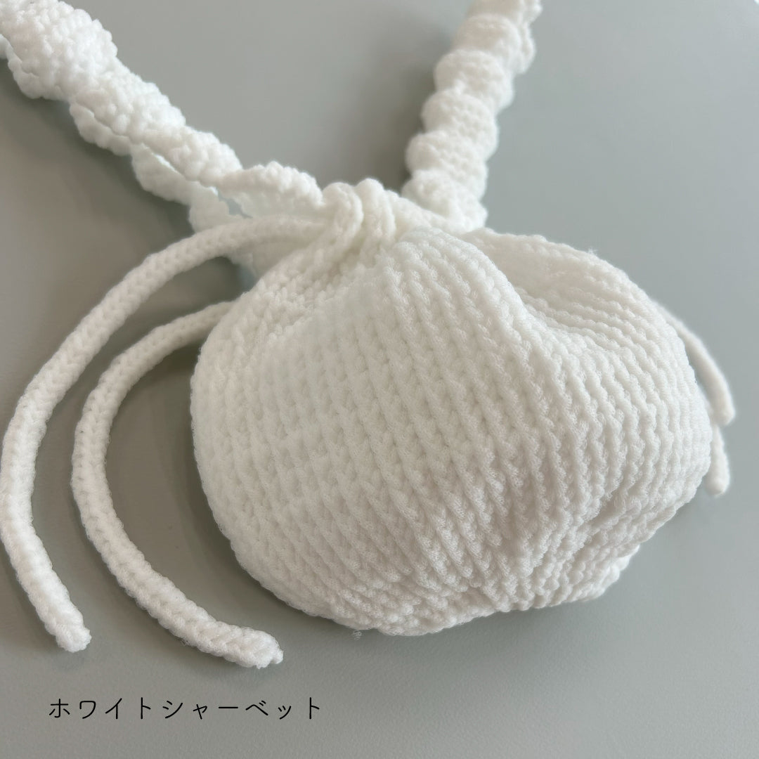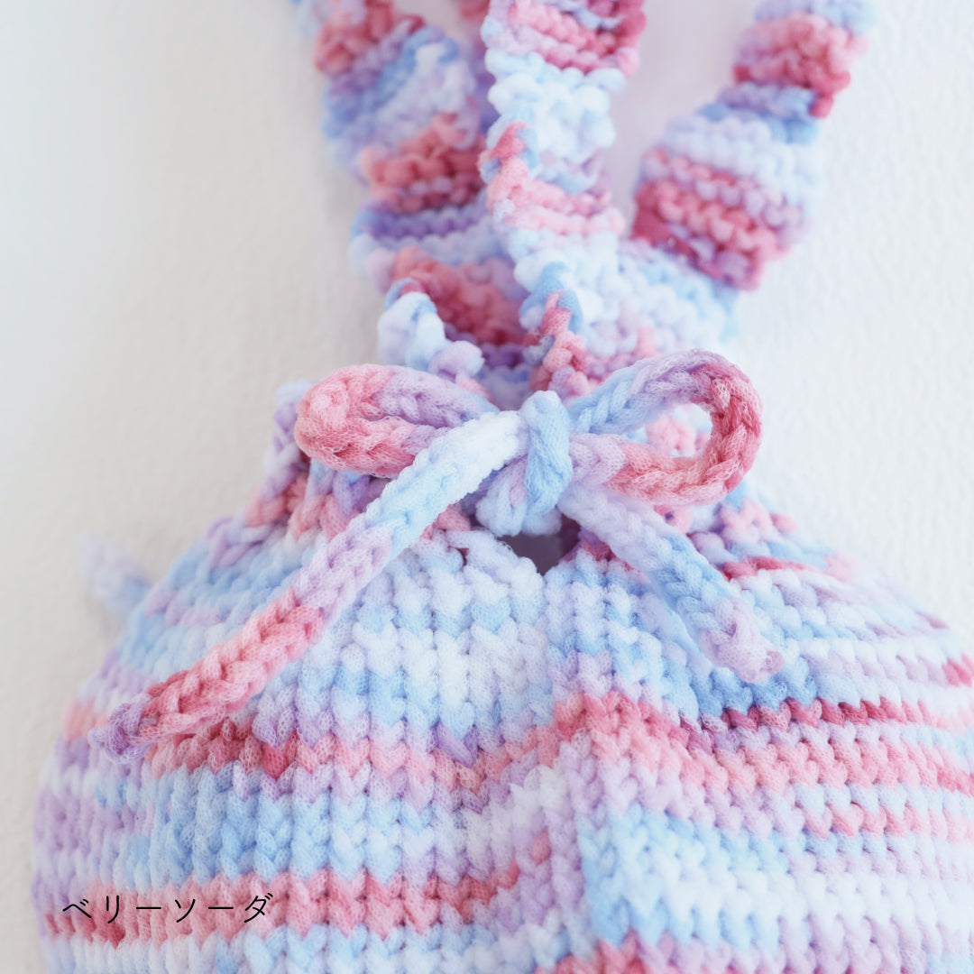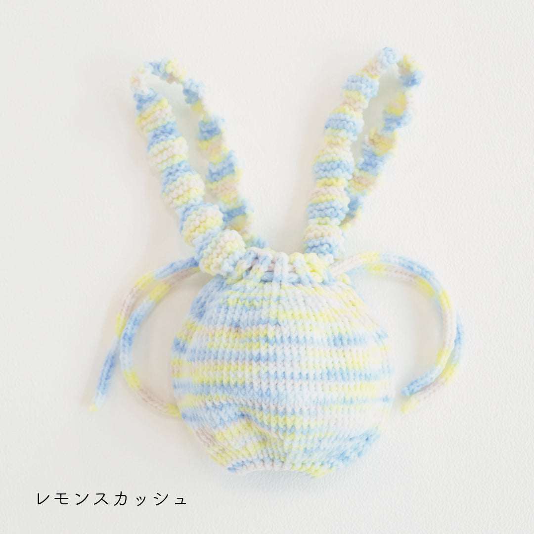 こちらはchocoshoeさんで企画販売していただいたキットです。sawada ittoでも期間限定のお取り扱いがスタート。chocoshoeさんならではな個性的でかわいいデザインがポイント。マッシュルームのような丸いシルエットがキュートなミニバッグです。 使用しているNAILYという糸は、チュールのような軽さと透け感のある素材で夏にぴったり。お財布やリップ、ミラーやハンカチが入るサイズ感です。