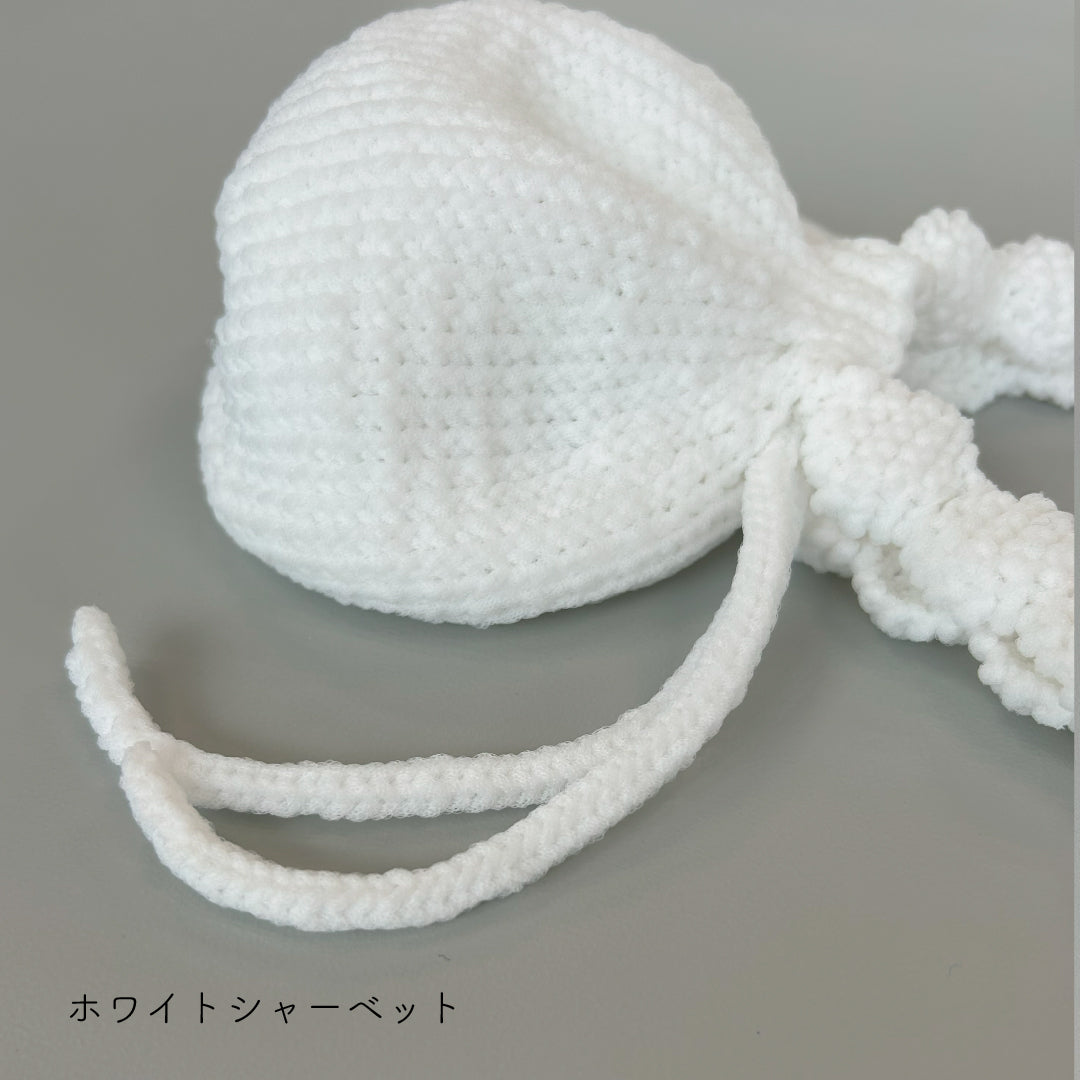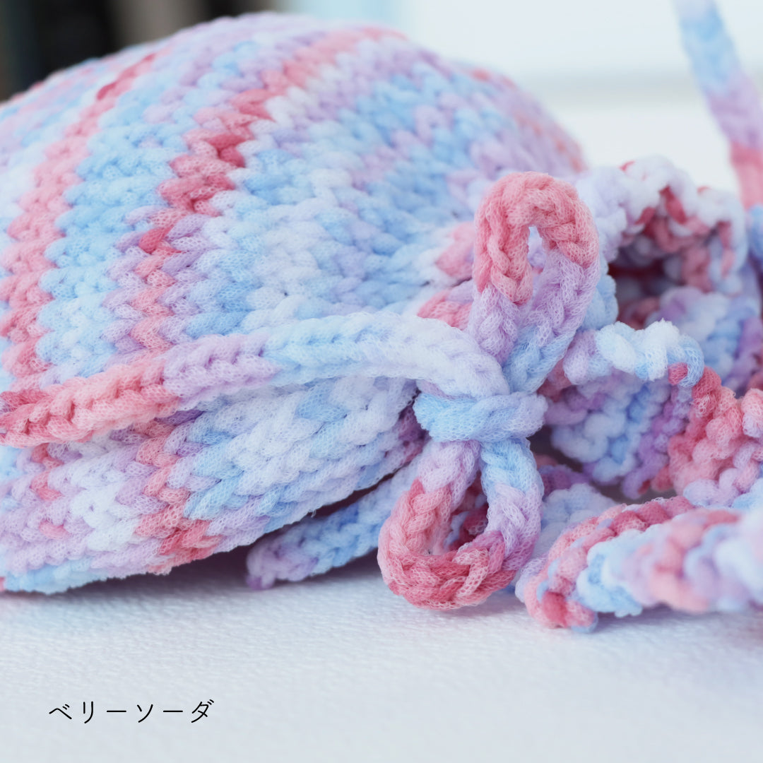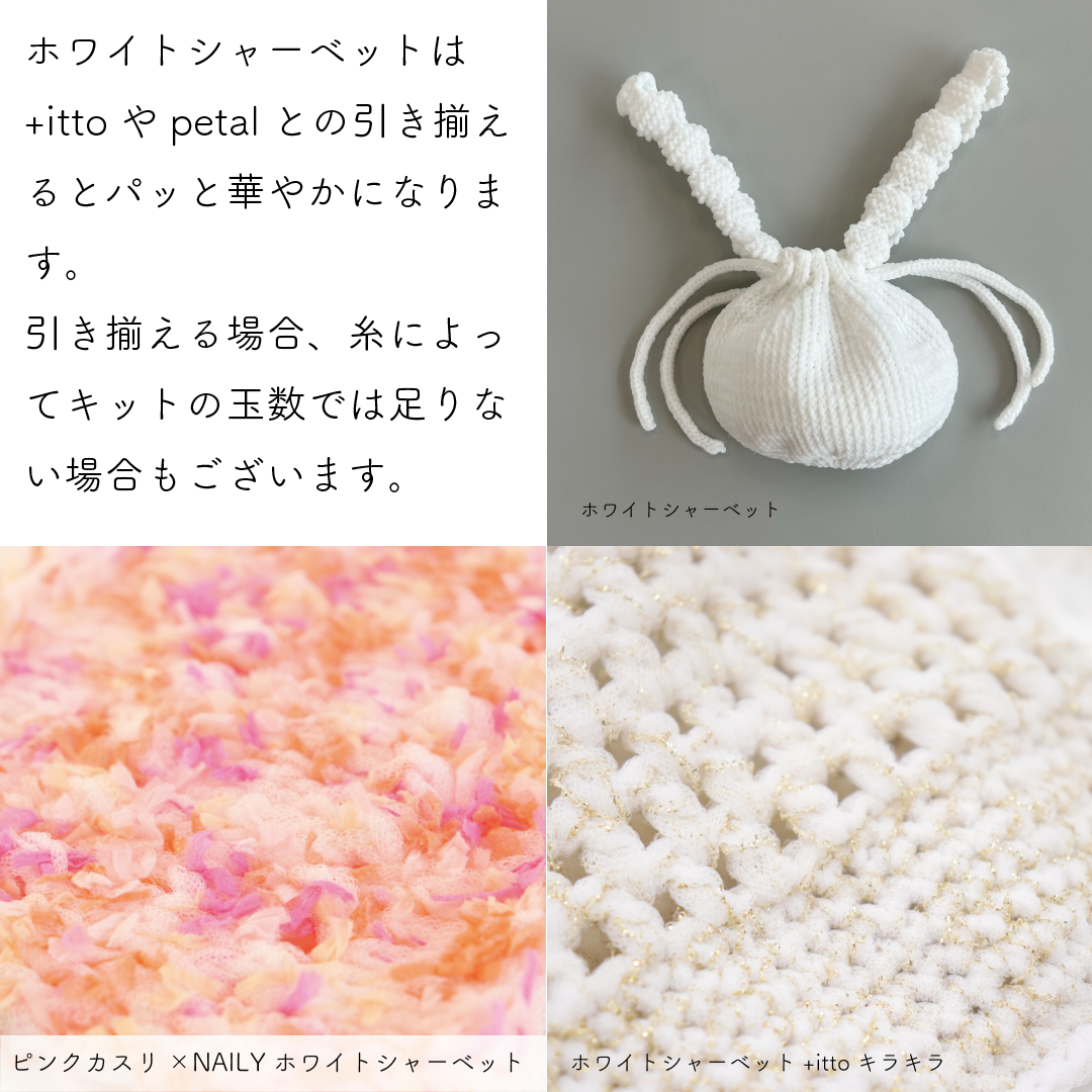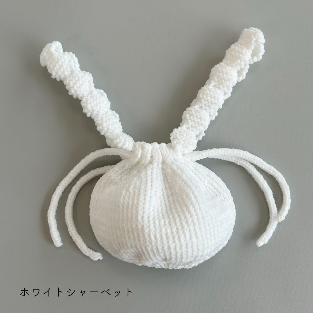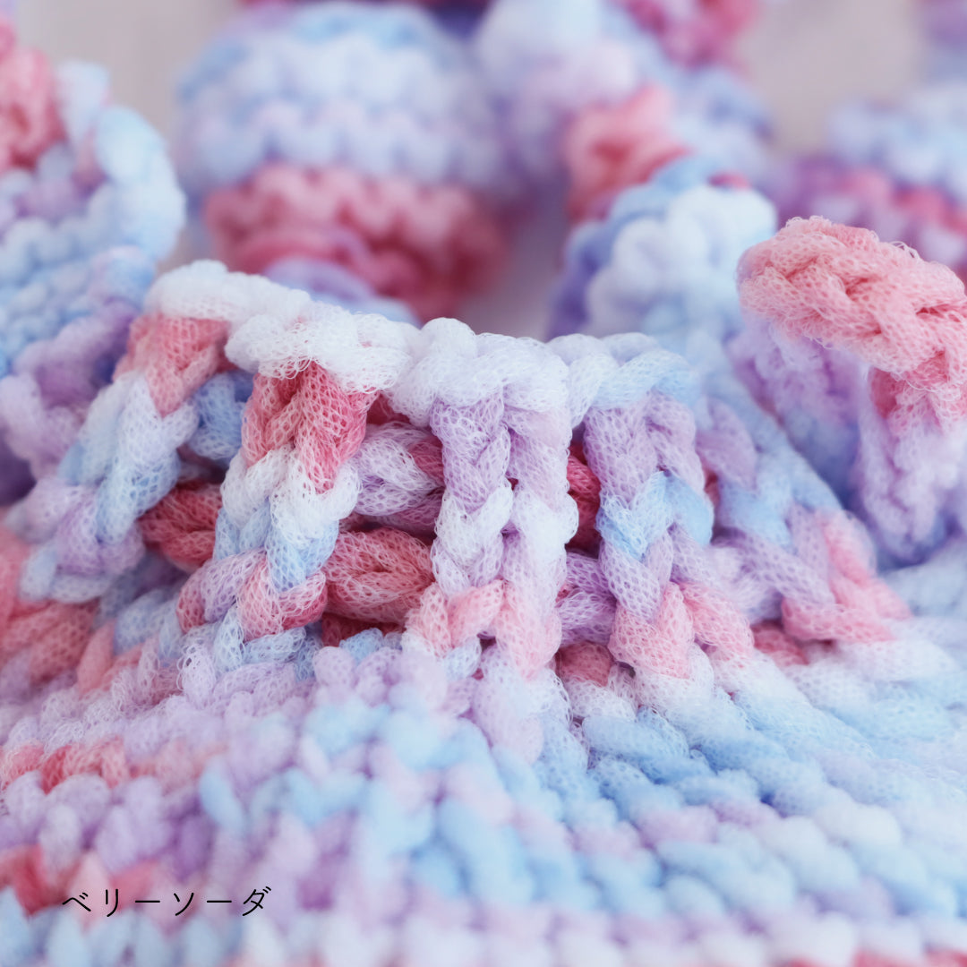 こちらはchocoshoeさんで企画販売していただいたキットです。sawada ittoでも期間限定のお取り扱いがスタート。chocoshoeさんならではな個性的でかわいいデザインがポイント。マッシュルームのような丸いシルエットがキュートなミニバッグです。 使用しているNAILYという糸は、チュールのような軽さと透け感のある素材で夏にぴったり。お財布やリップ、ミラーやハンカチが入るサイズ感です。