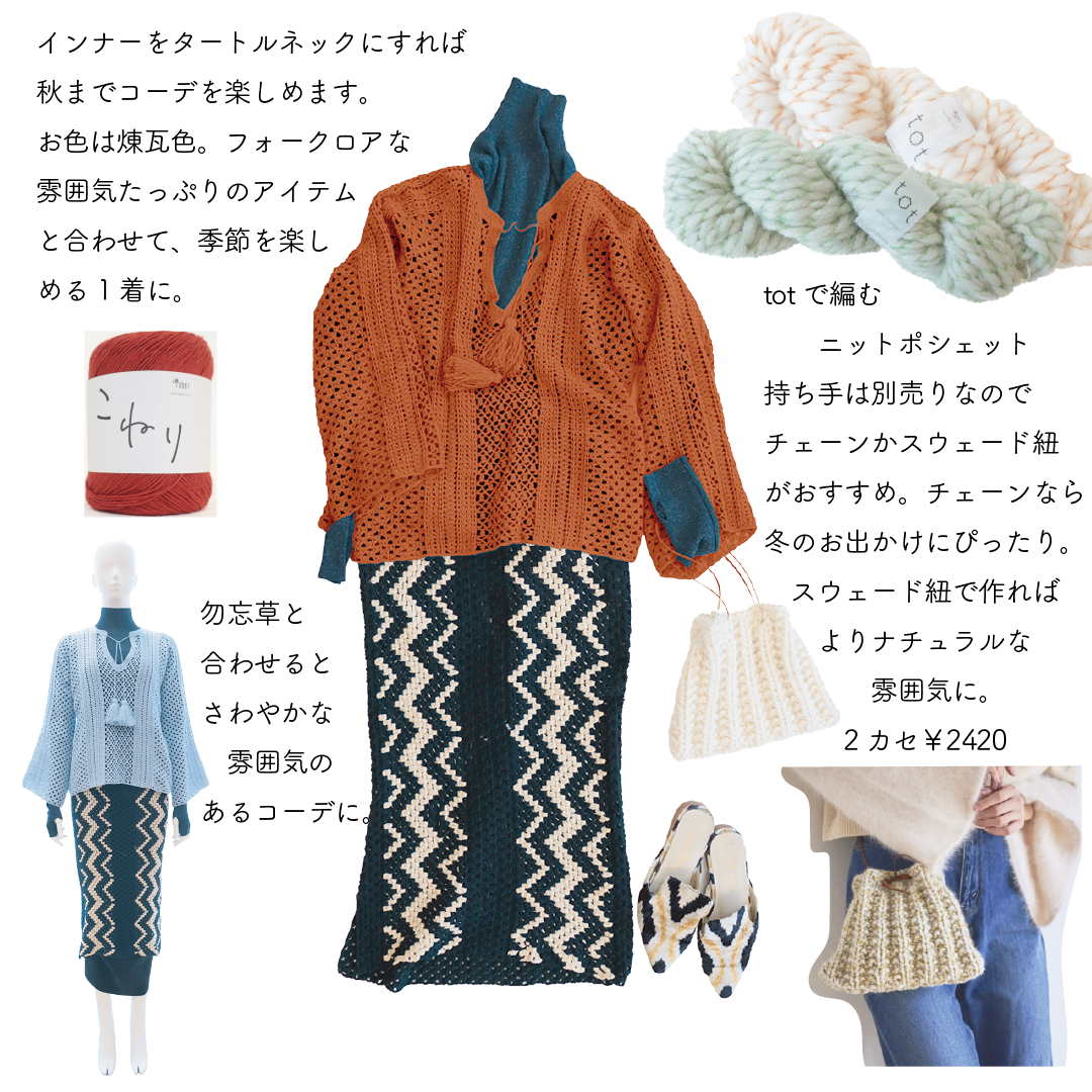 かぎ針編みで編みごたえのあるウエアを作りたい方におすすめのキットができました。