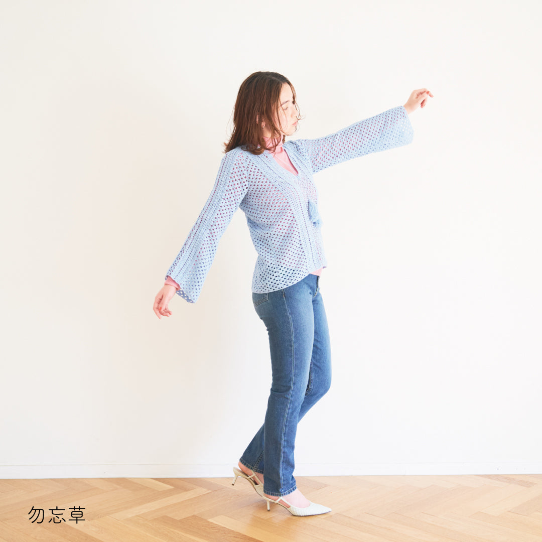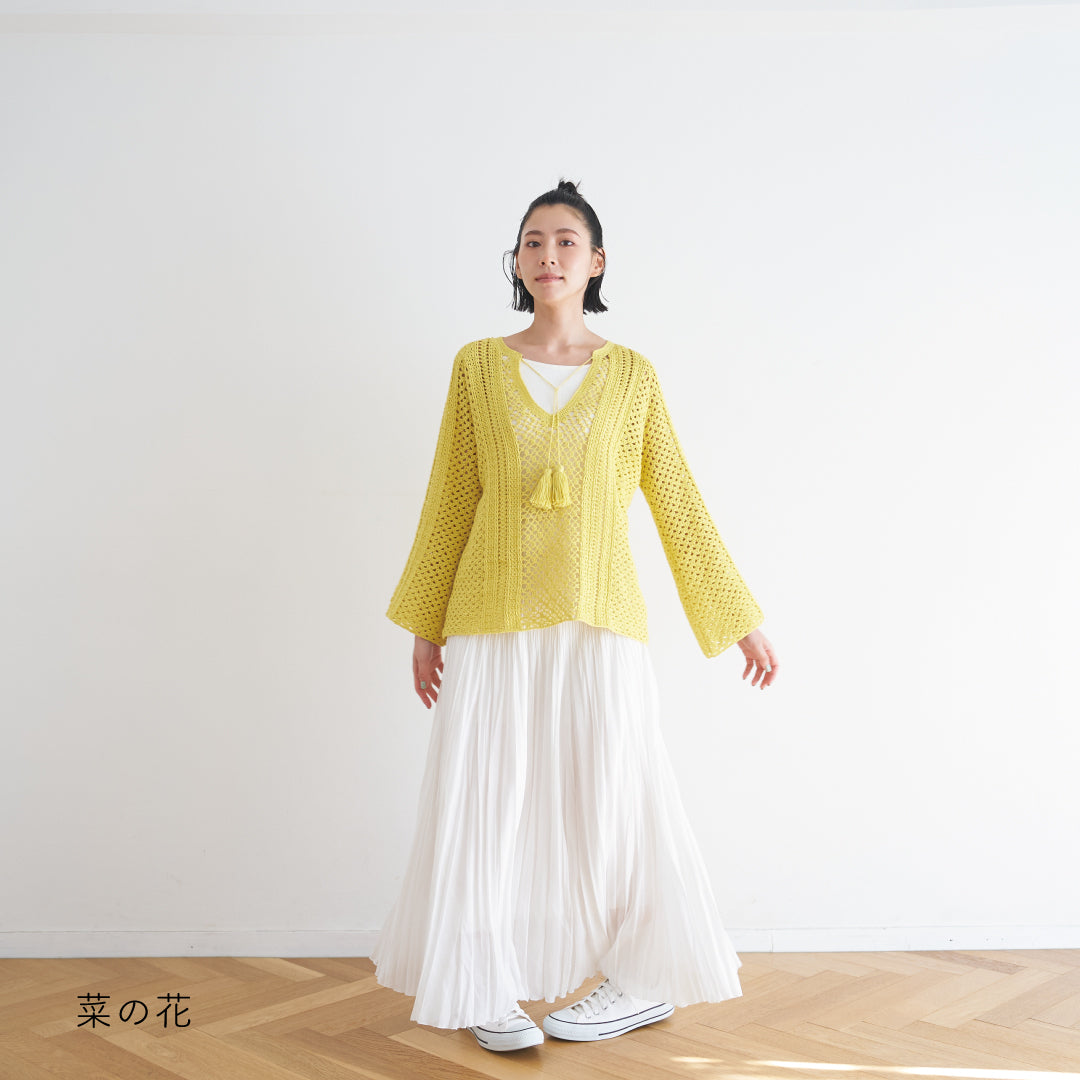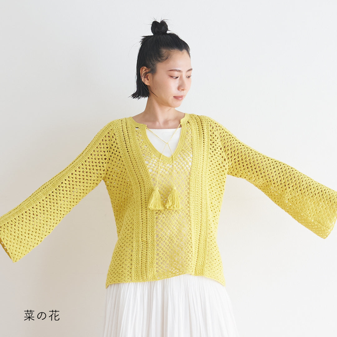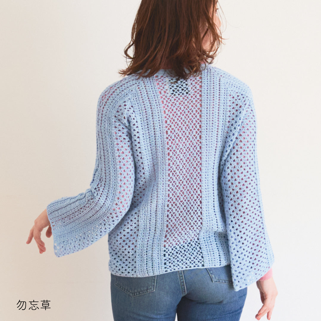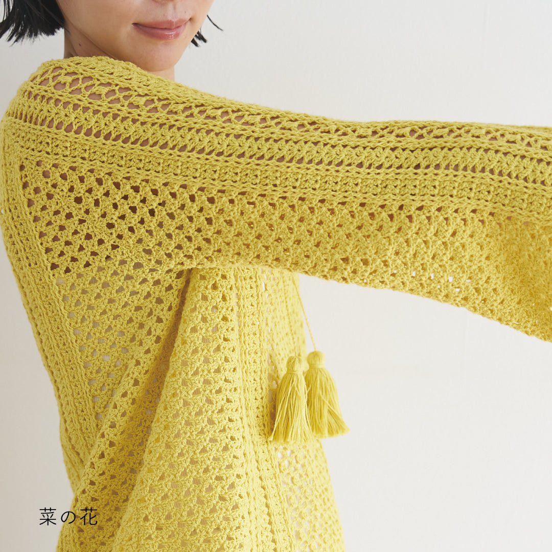 涼しげで通気性があり、春夏にぴったりです。全体に透かし模様が入っていて、インナーとのレイヤードが楽しめるデザインになっています。