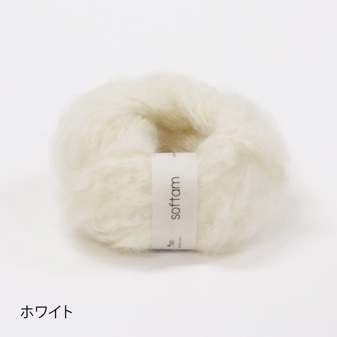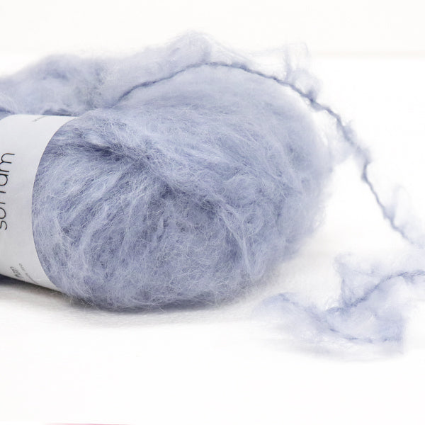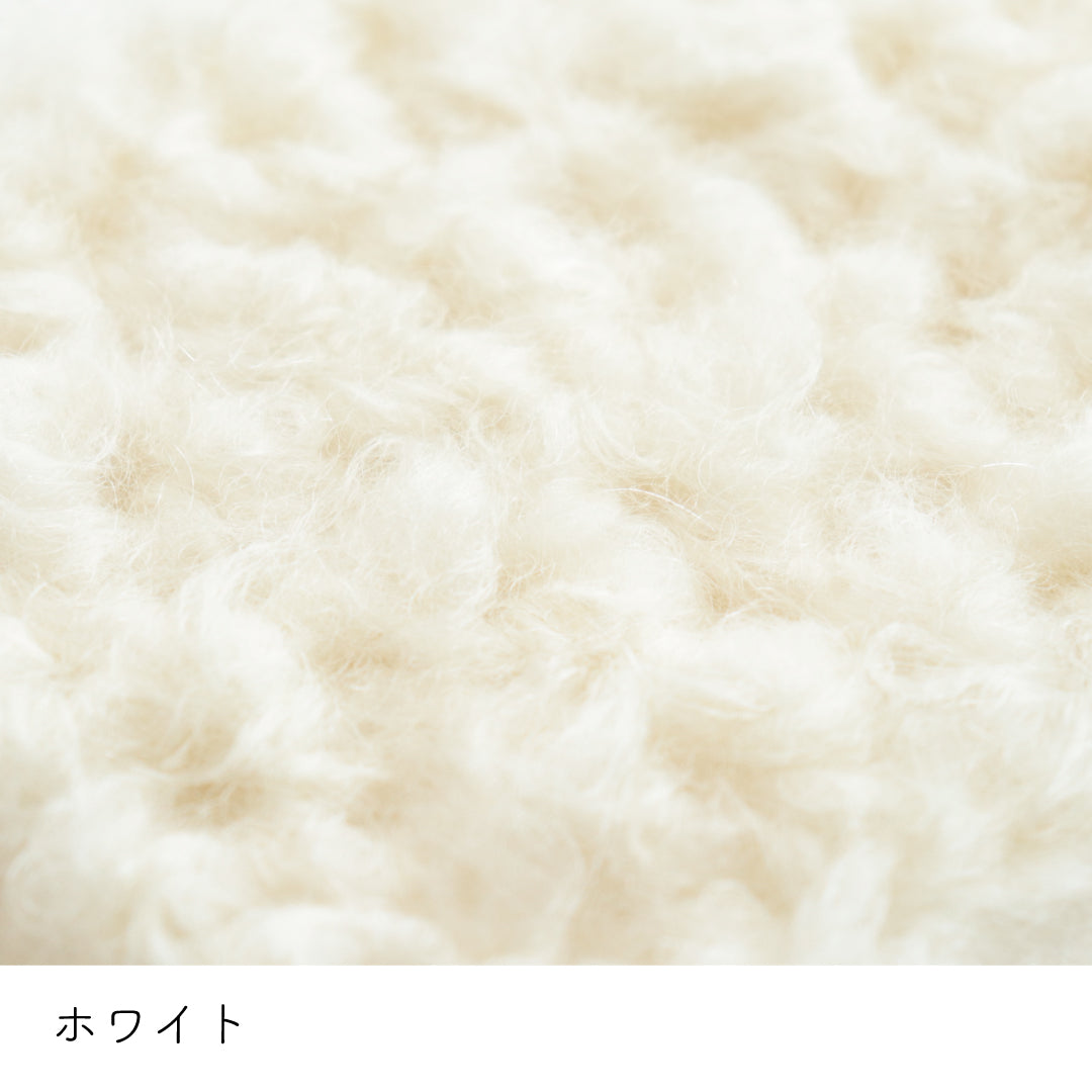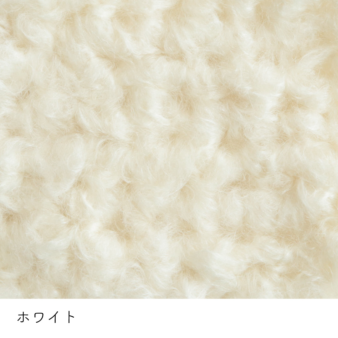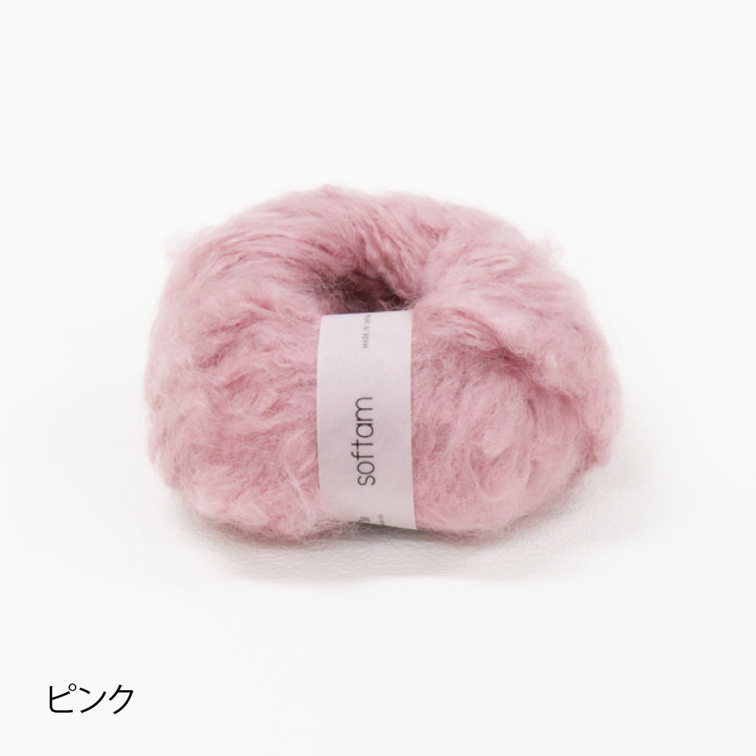 希少なキッドモヘヤをたっぷりと使用した、至極のふわふわ極太糸ができました。生後1年以内のアンゴラ山羊(ヤギ)からのみ刈り取ることが出来る、直径わずか26~32ミクロンの繊細なモヘヤ。糸を起毛させることで、毛質を最も活かした抜群の風合いに仕上げています。しっとりとした光沢があり、甘くなりすぎないこだわりのパステルカラーはどの色で組み合わせても可愛くなります。軽くて暖かく触り心地が抜群なのでウエアやマフラーレッグウォーマーなど肌に触れる秋冬小物が特におすすめ。極太糸はざくざく編み進められるので、作品の完成もはやく楽しく編めます。