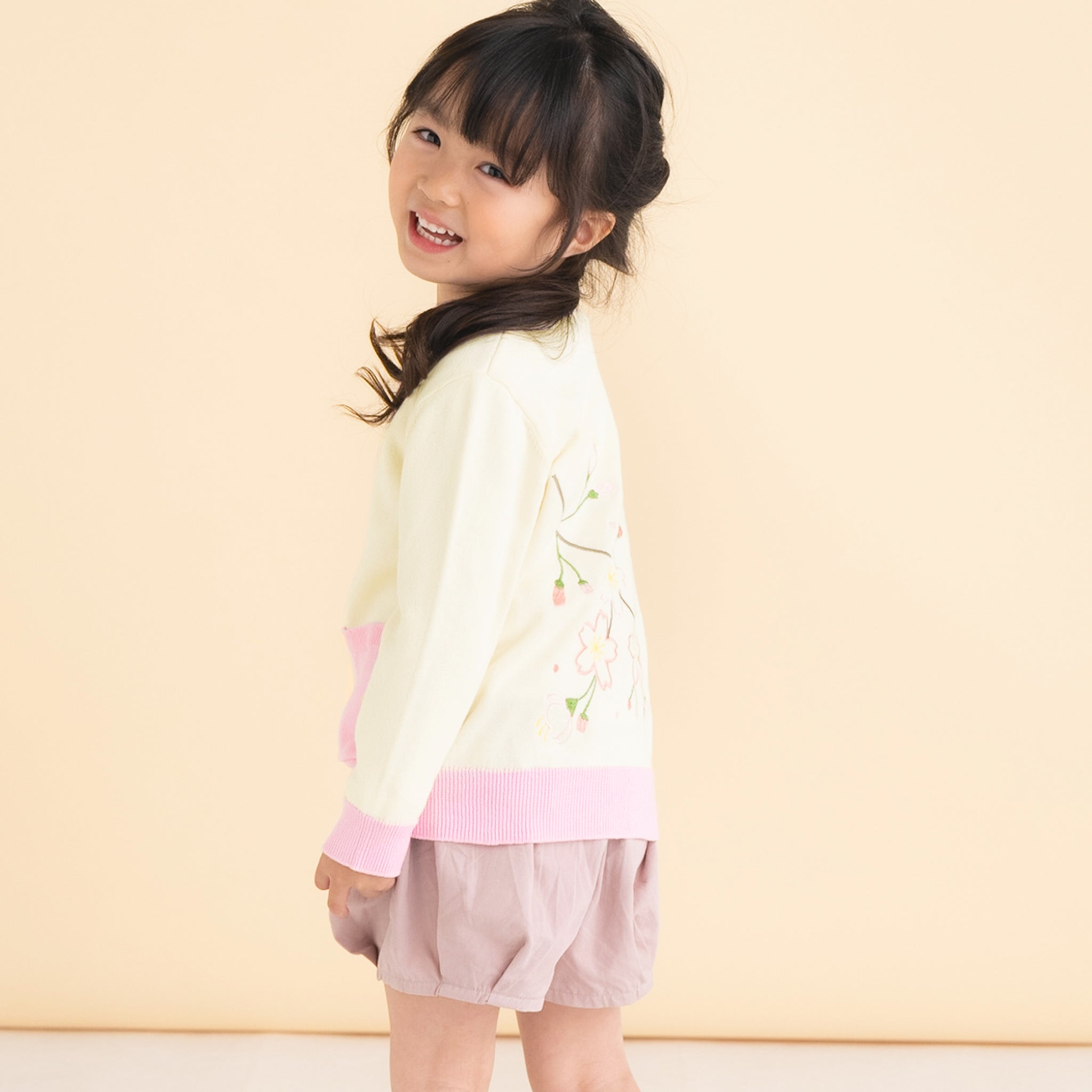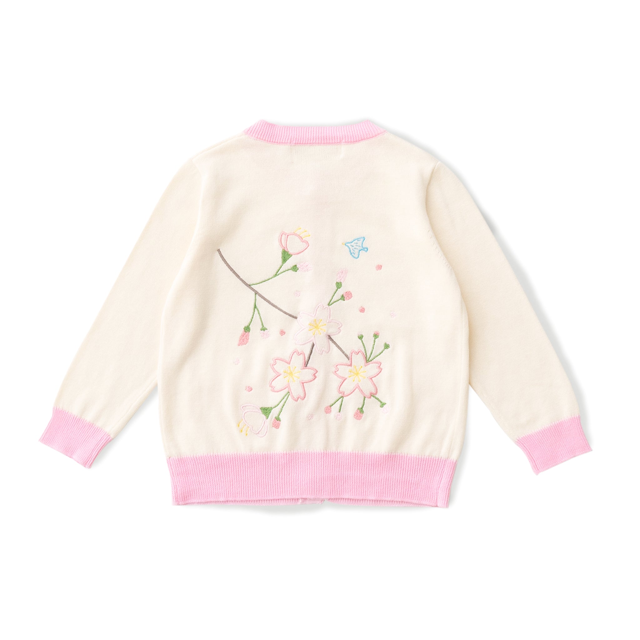 背面に桜が刺繍されたニットカーディガンです。