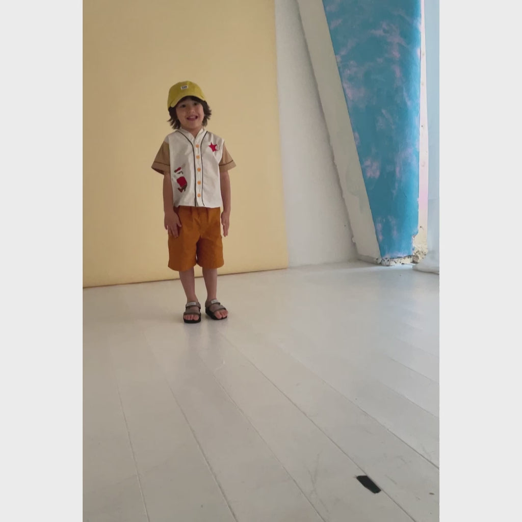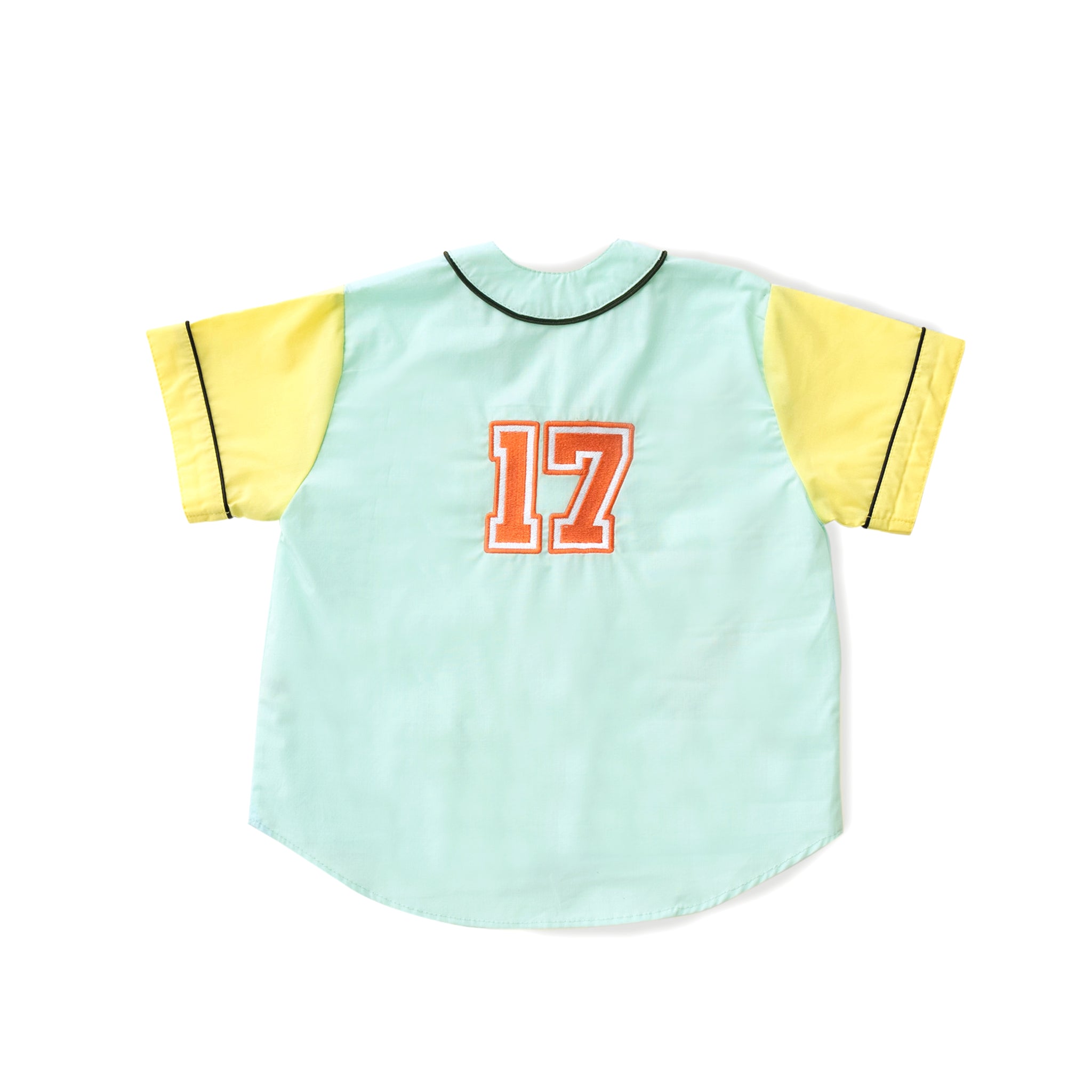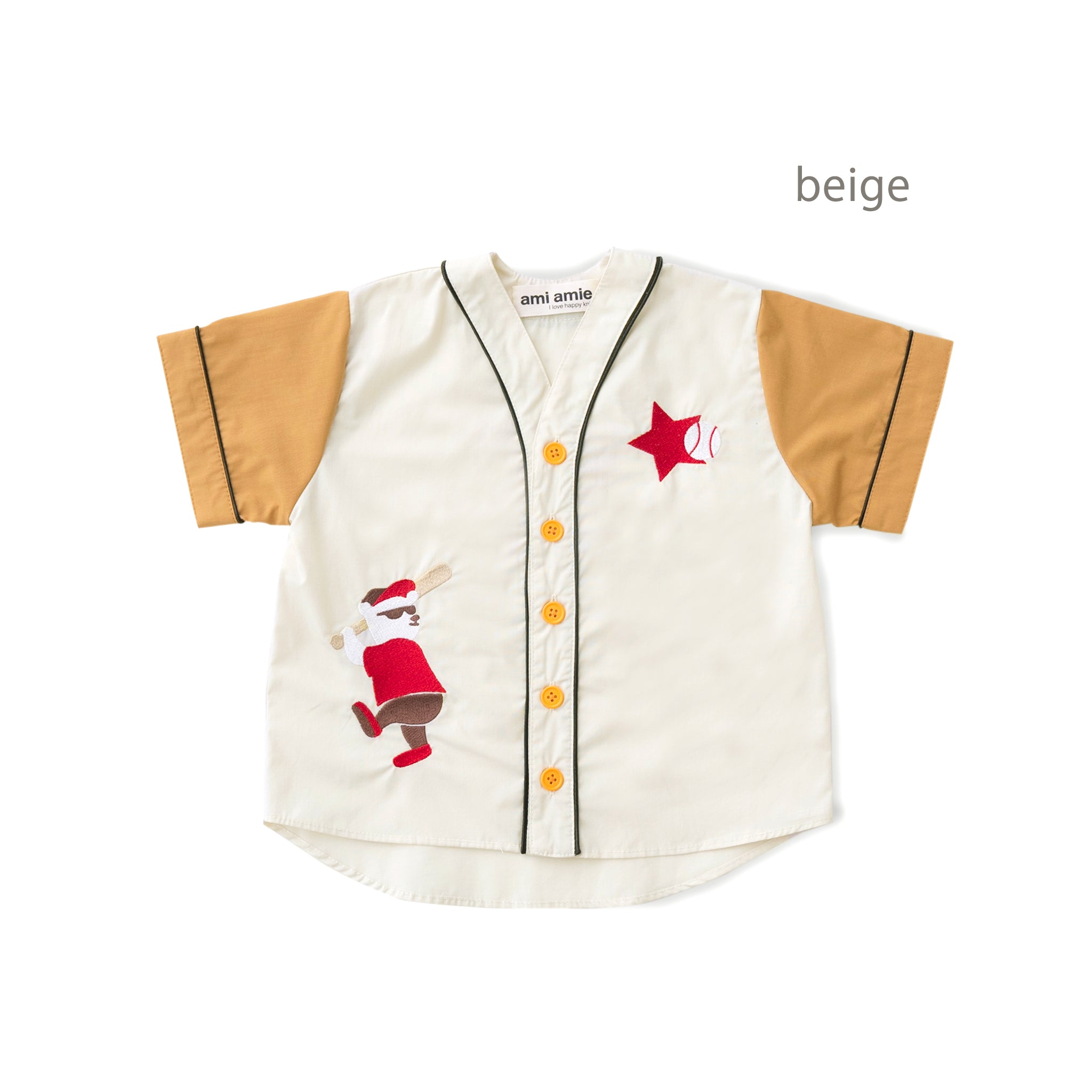 背番号、シロクマ、ボールの刺繍が入ったベースボールシャツです。
