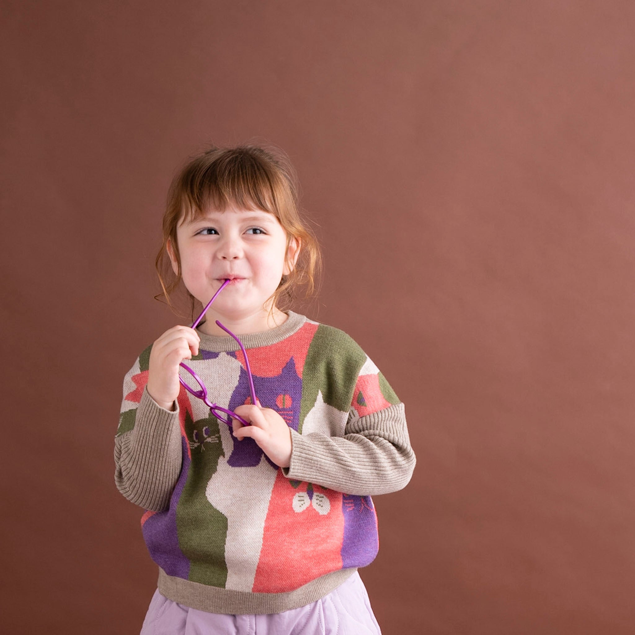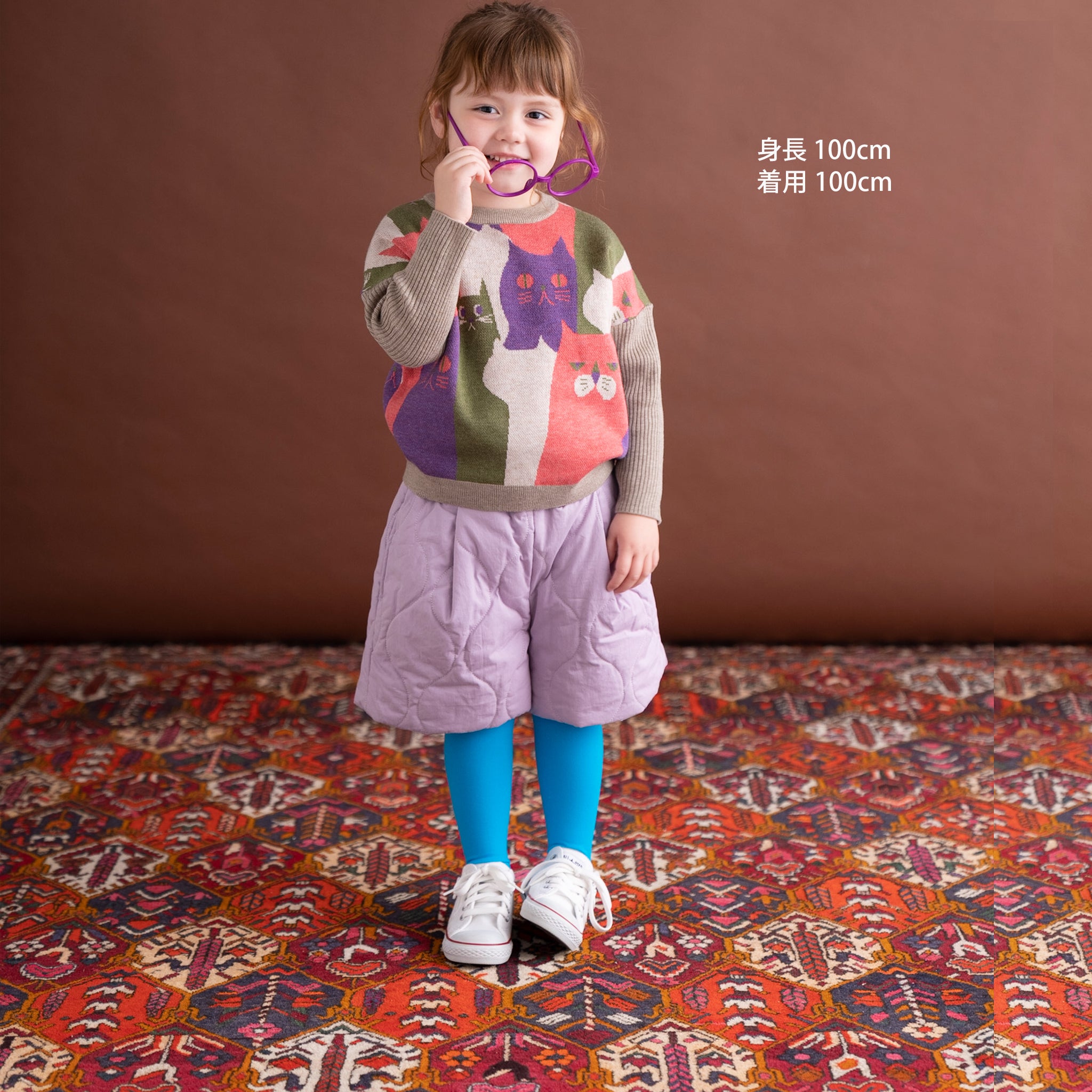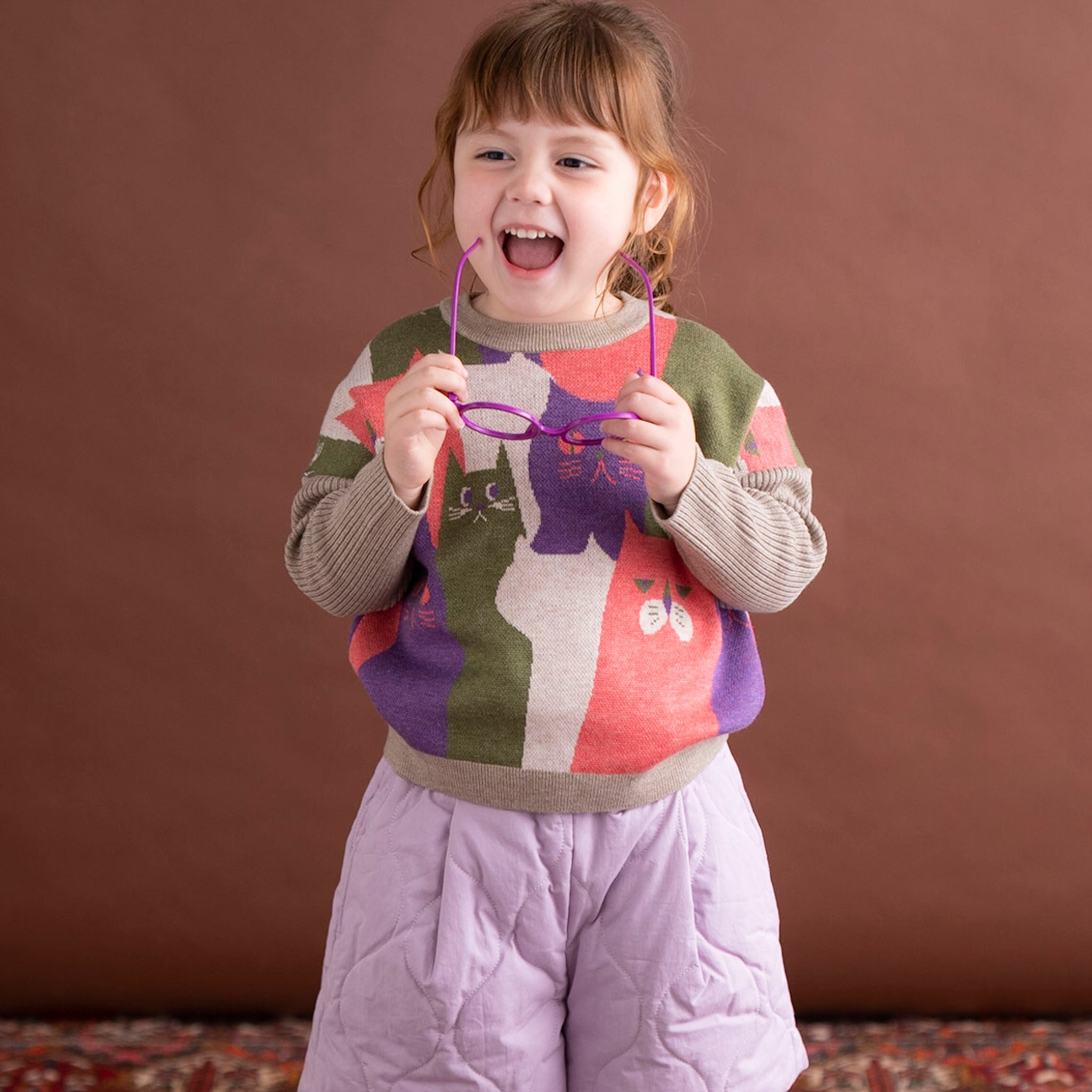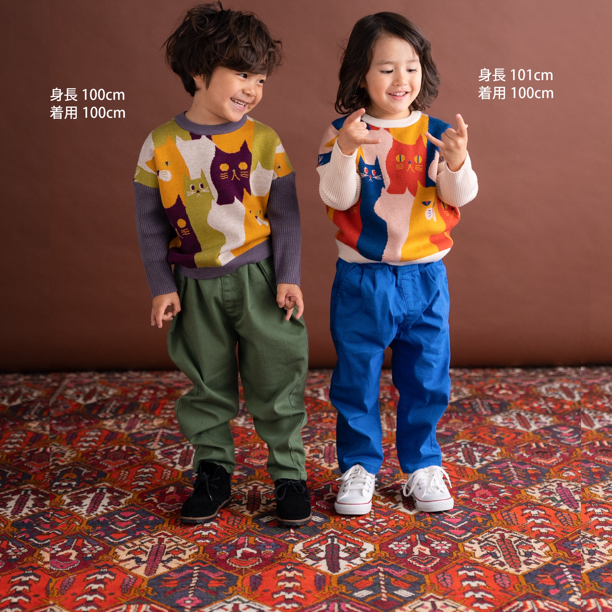 様々な表情のネコがいっぱい編み込まれたプルオーバーです。