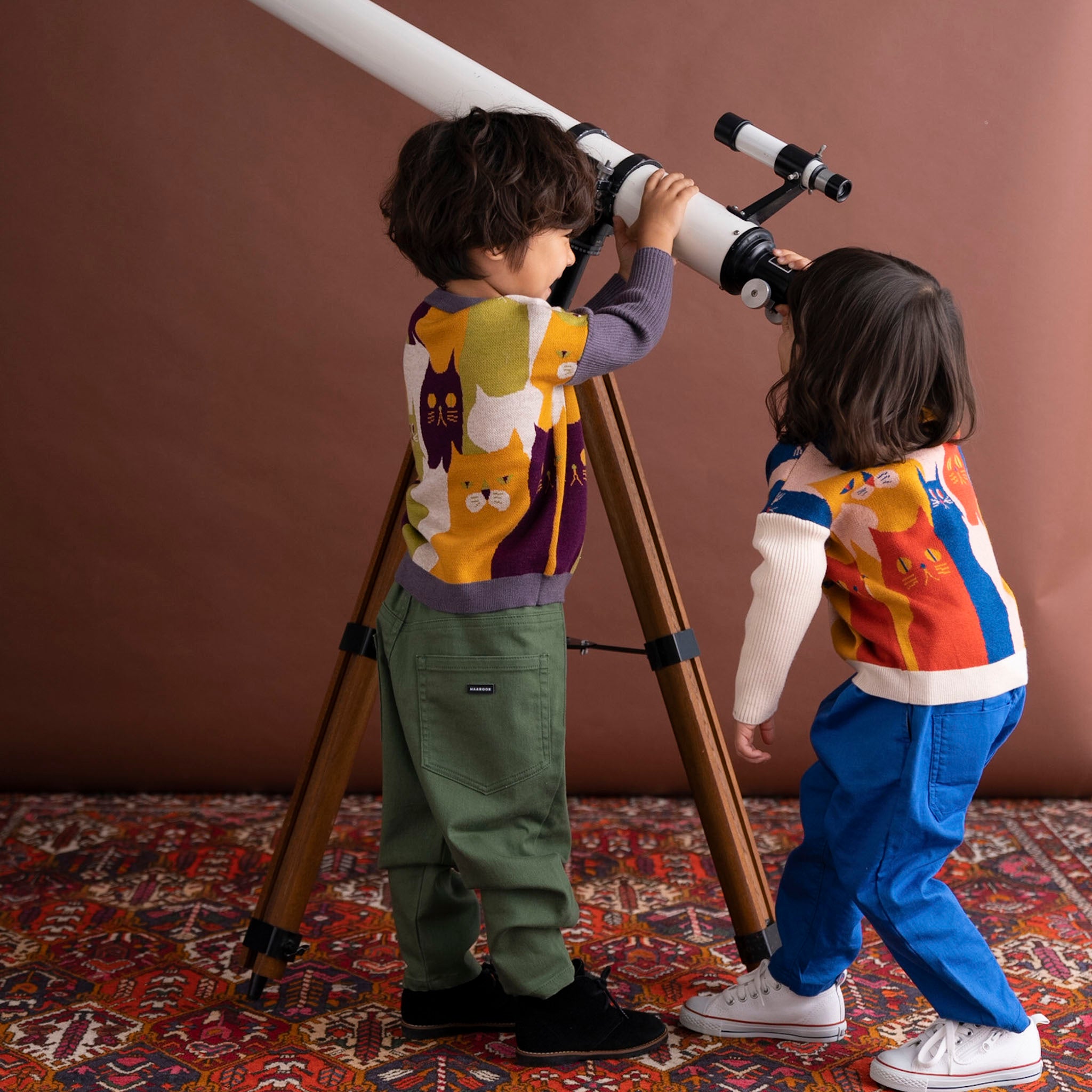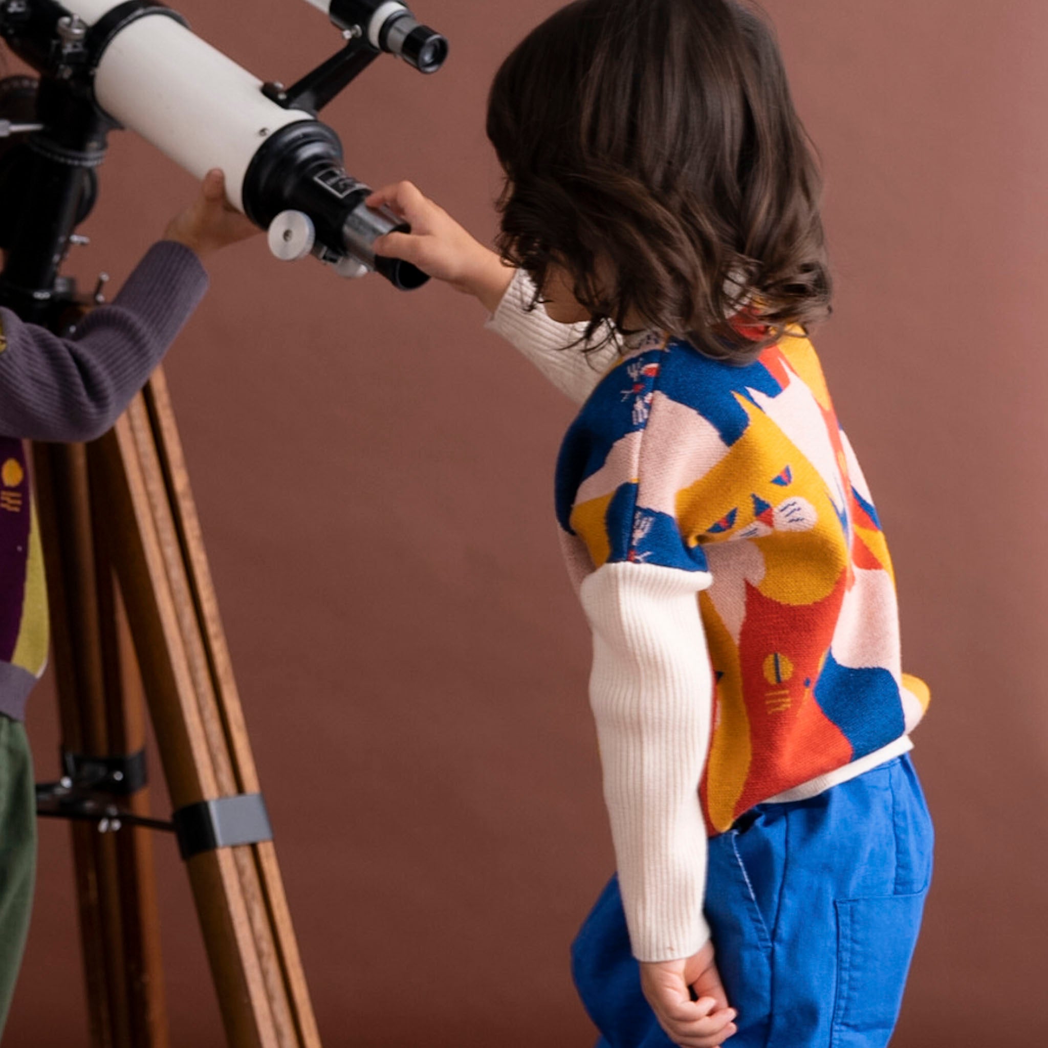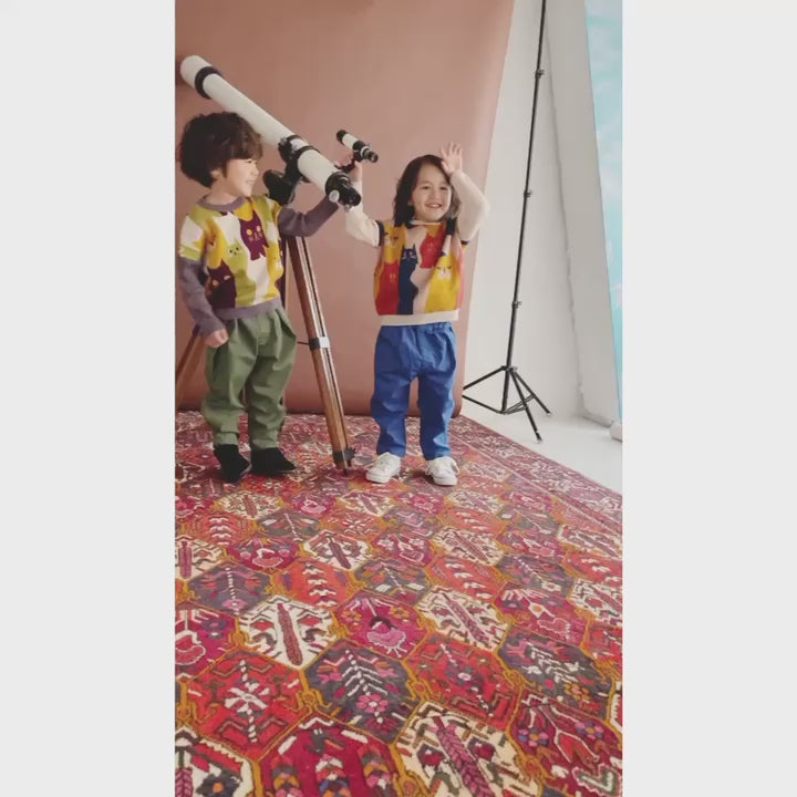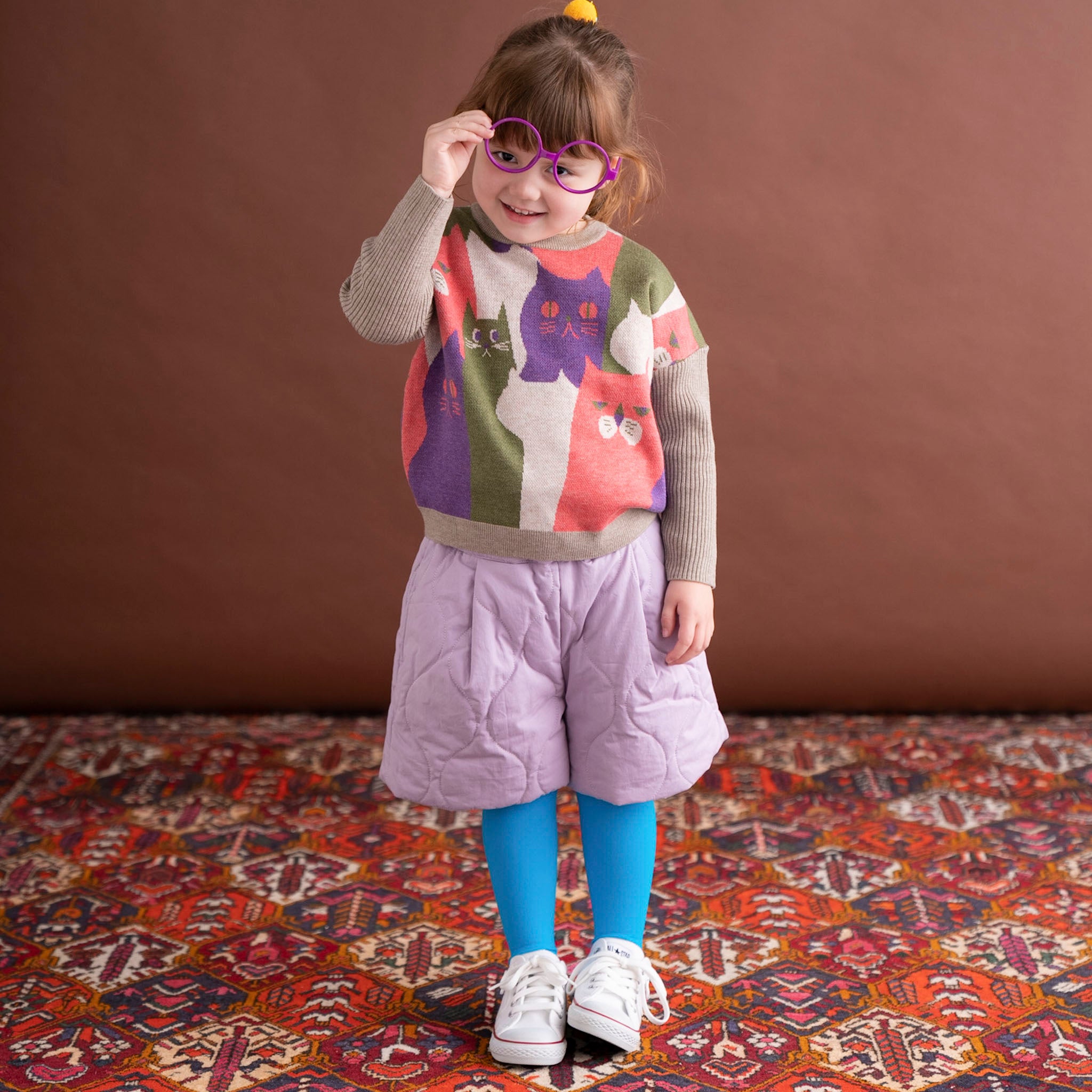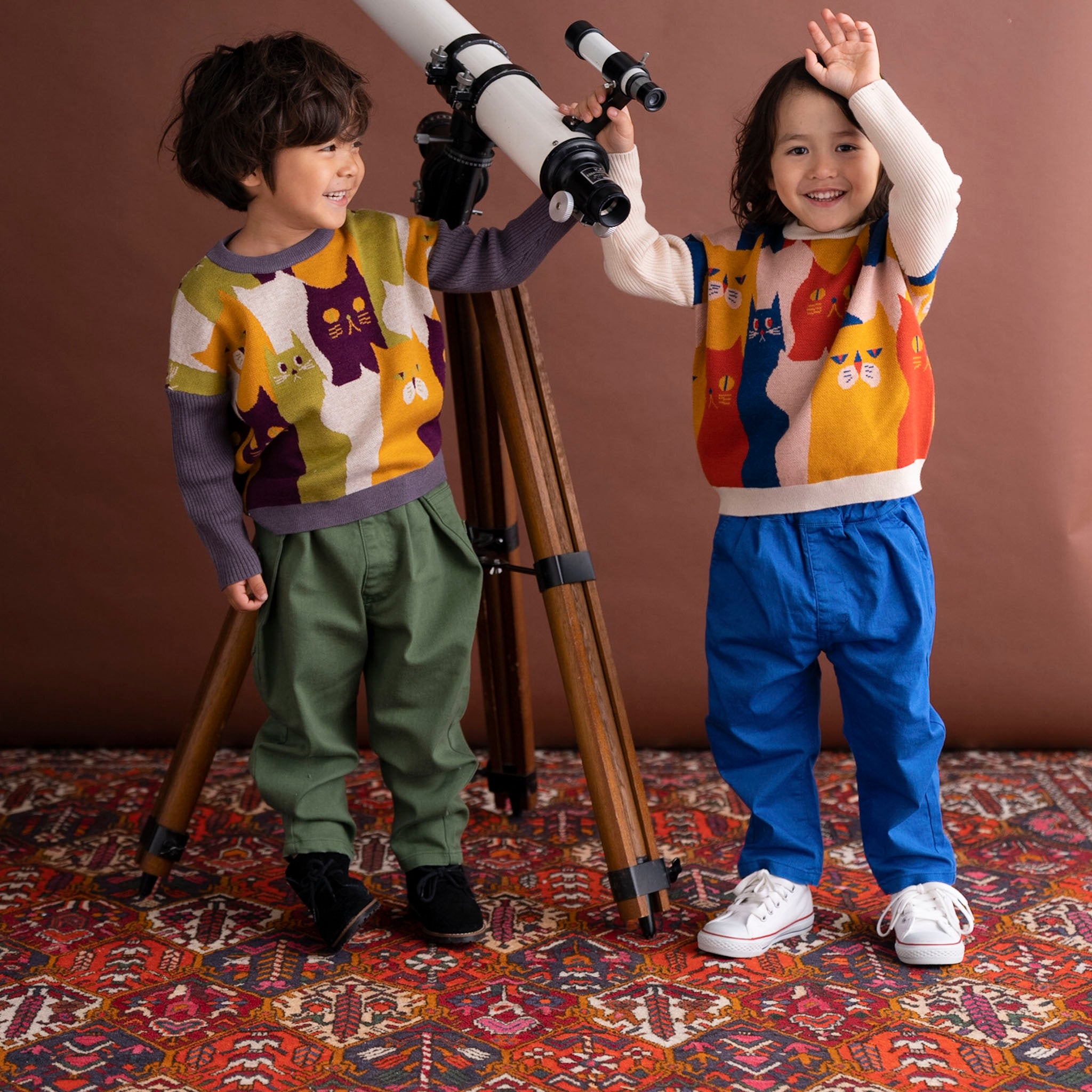 様々な表情のネコがいっぱい編み込まれたプルオーバーです。