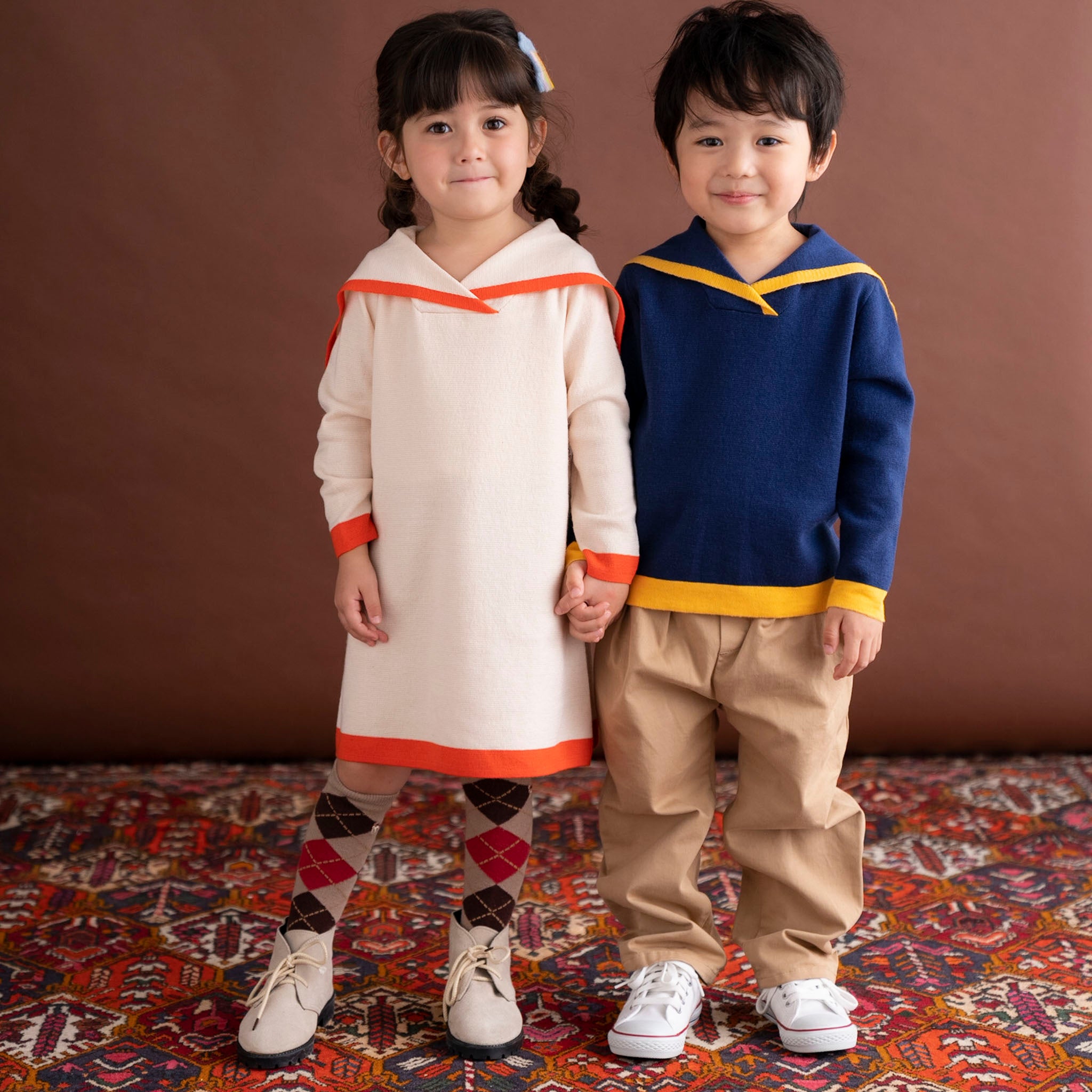 ・色合いが落ち着いているので小さなお子様から少し大きくなったお子様まで幅広くご着用いただけるカラーとデザインです。