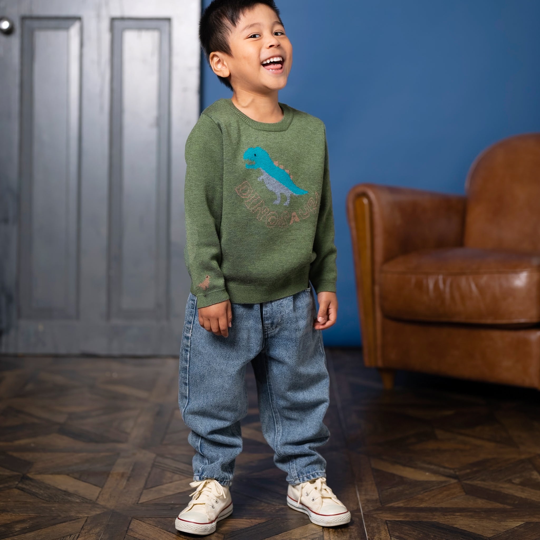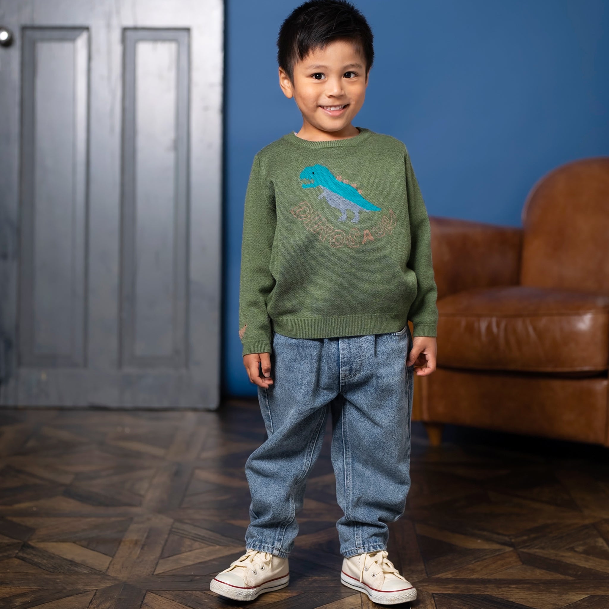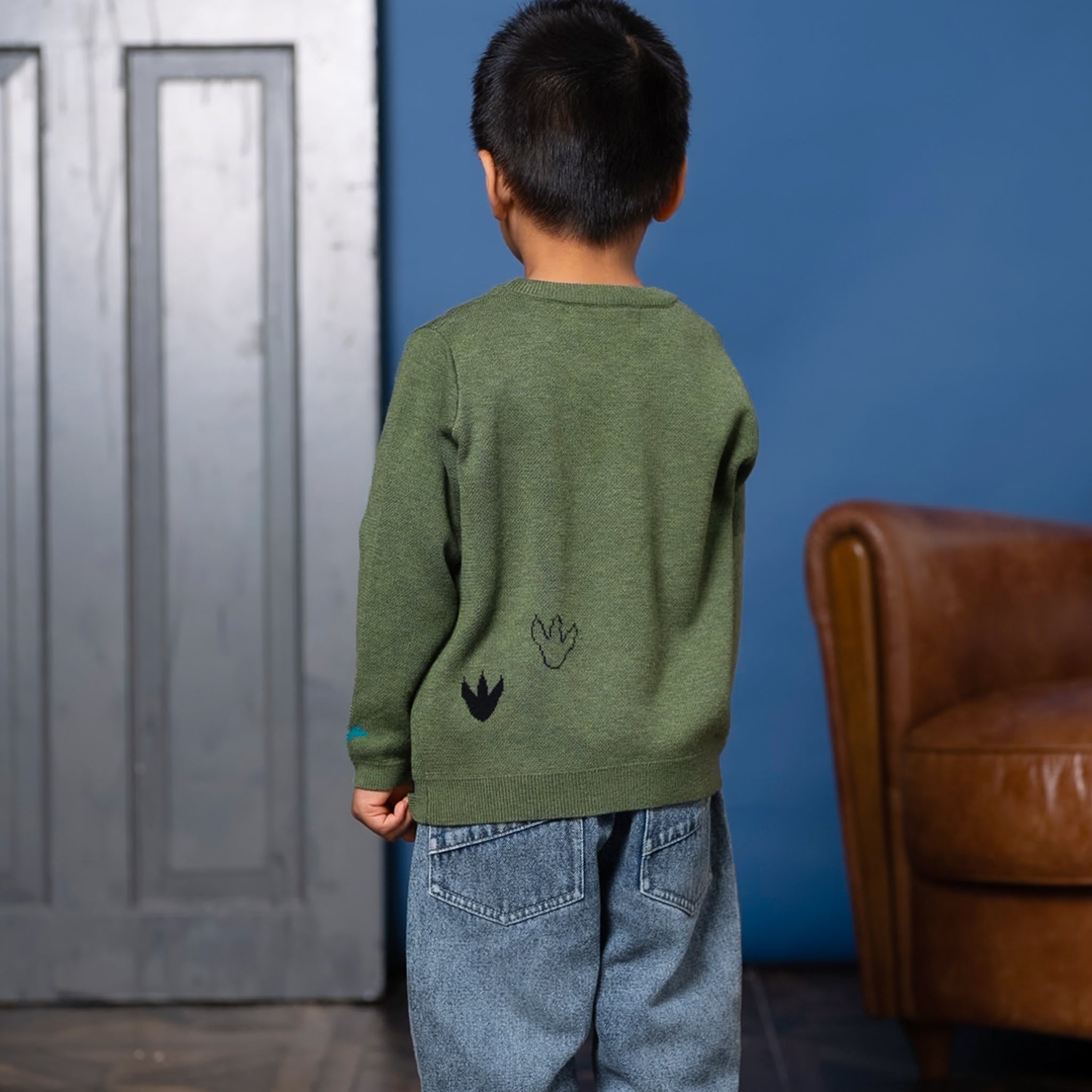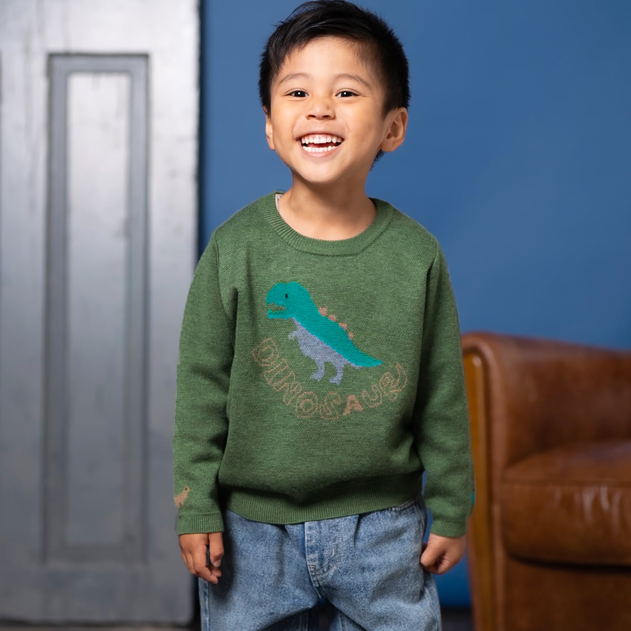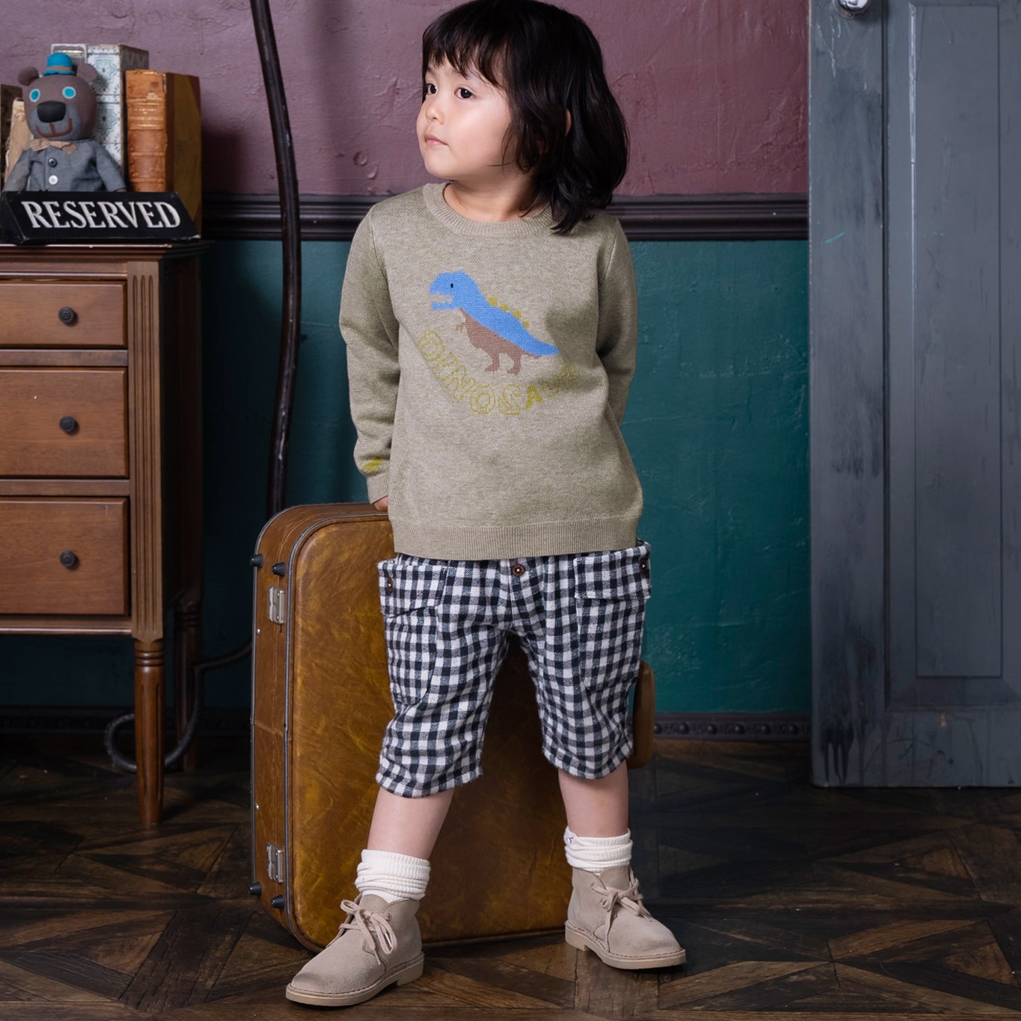 ダイナソープルオーバーは、恐竜好きのお子様にぴったりのニットトップスです。