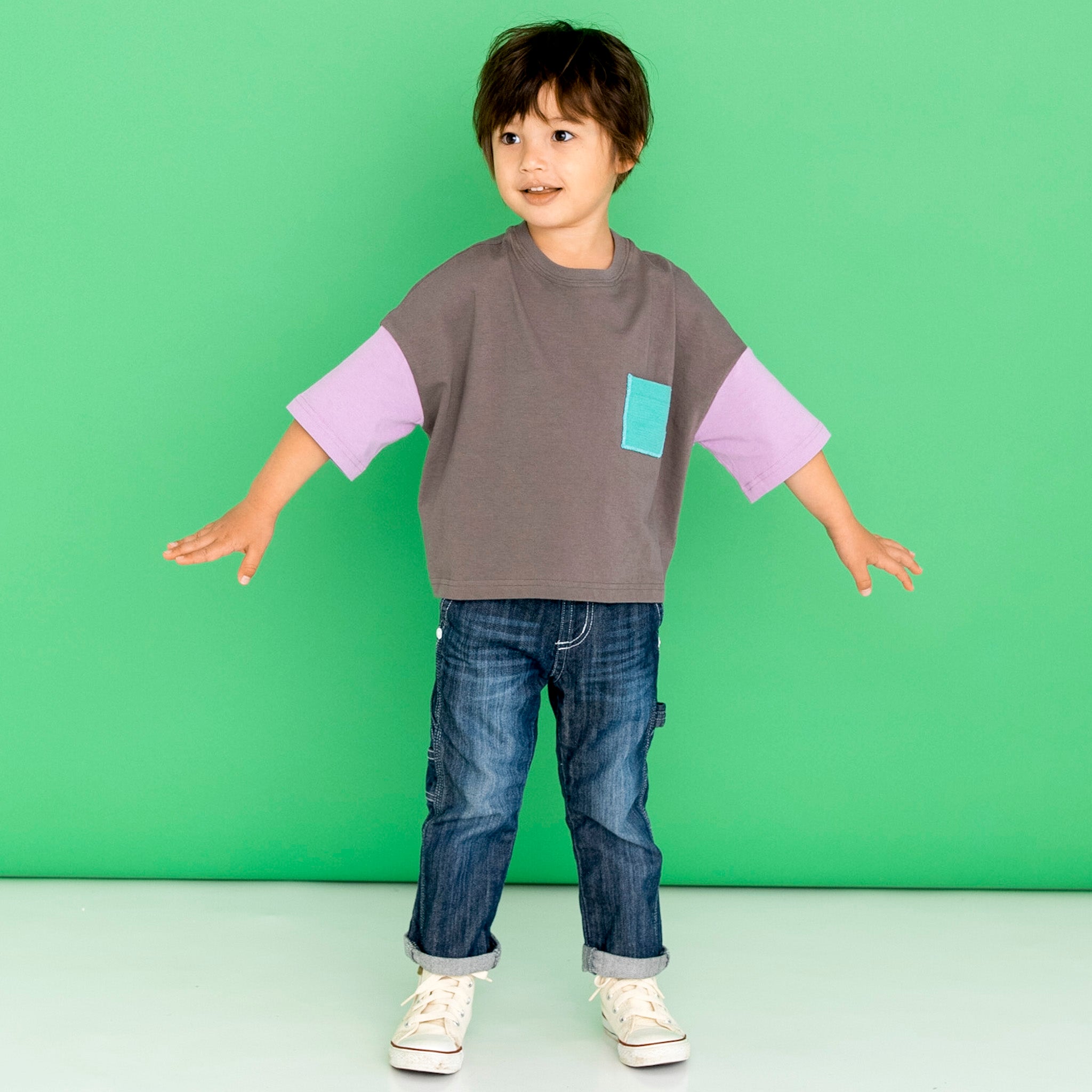 num:11 グリーン モデル身長:101cm 着用サイズ:100cm