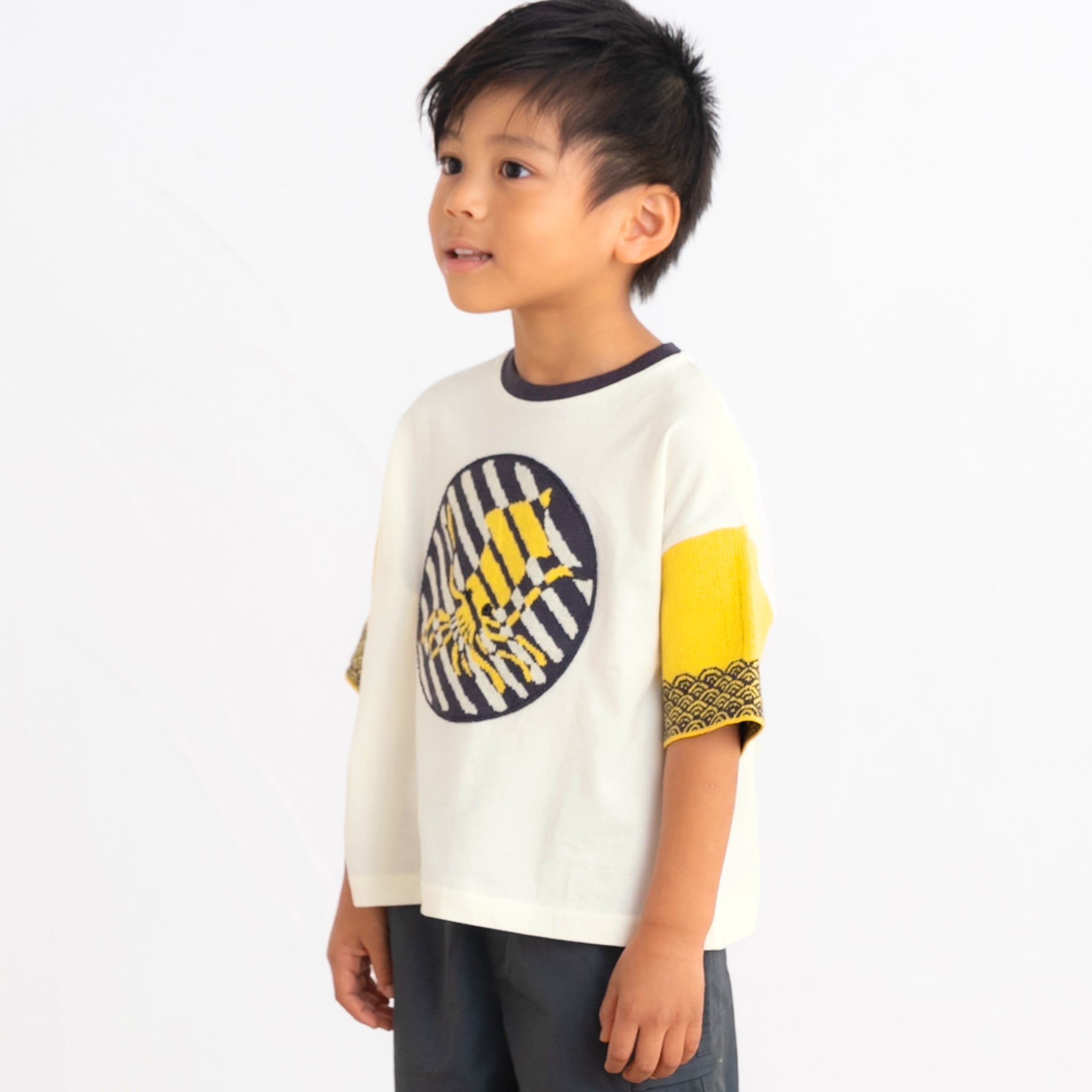 イカボーダーワイドTシャツは、ユニークなイカのボーダー柄が特徴の子供服です。