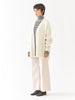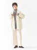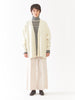 ボタンホールが左右身頃にあり、そこにボタンテープを付けていく仕様なので右前、左前、どちらの重ね方も可能です。