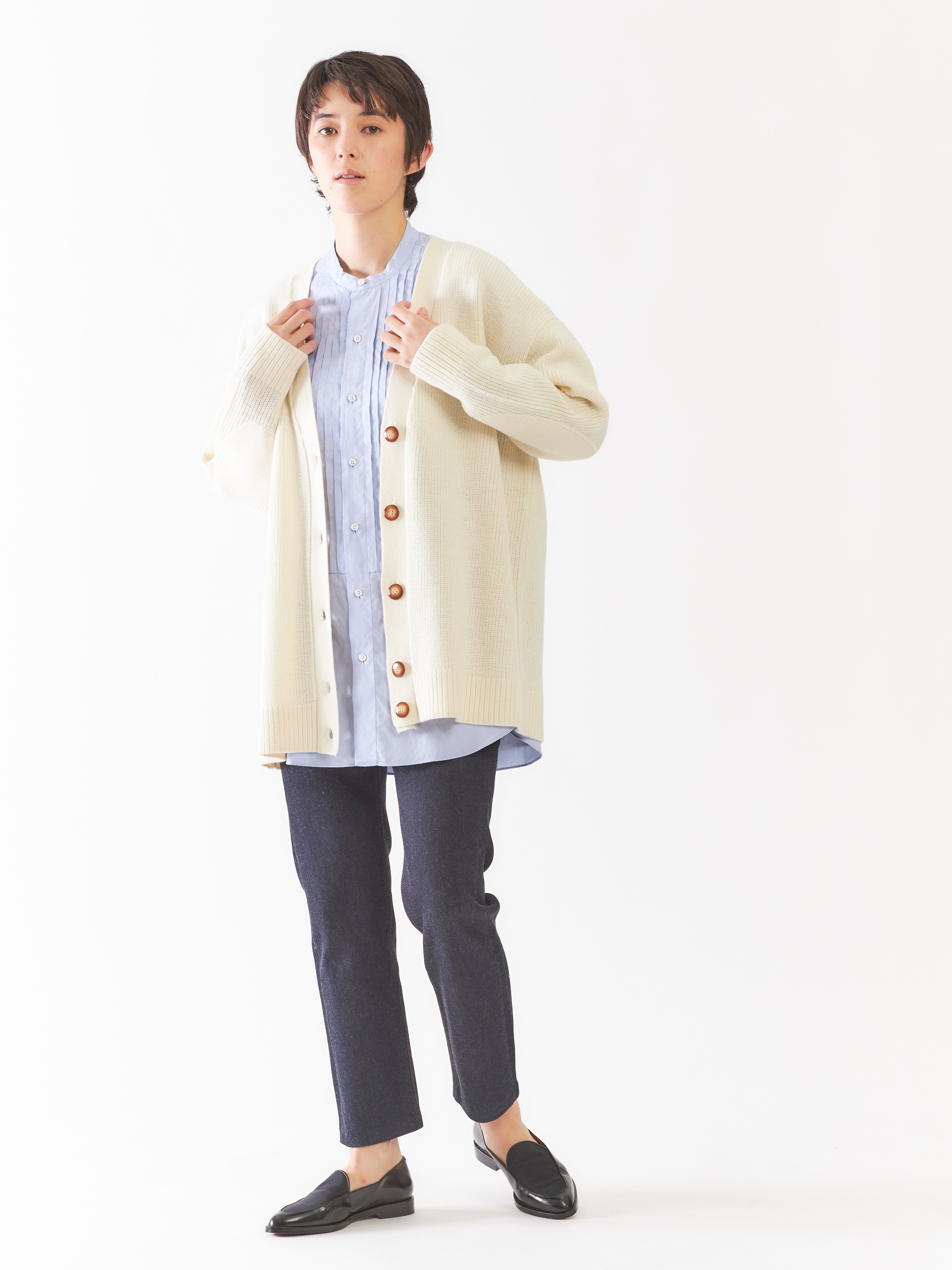 ゆったりサイズで、少し厚手のカットソーなどを合わせてもすっきり着こなせるので、長く使えるアイテムです。