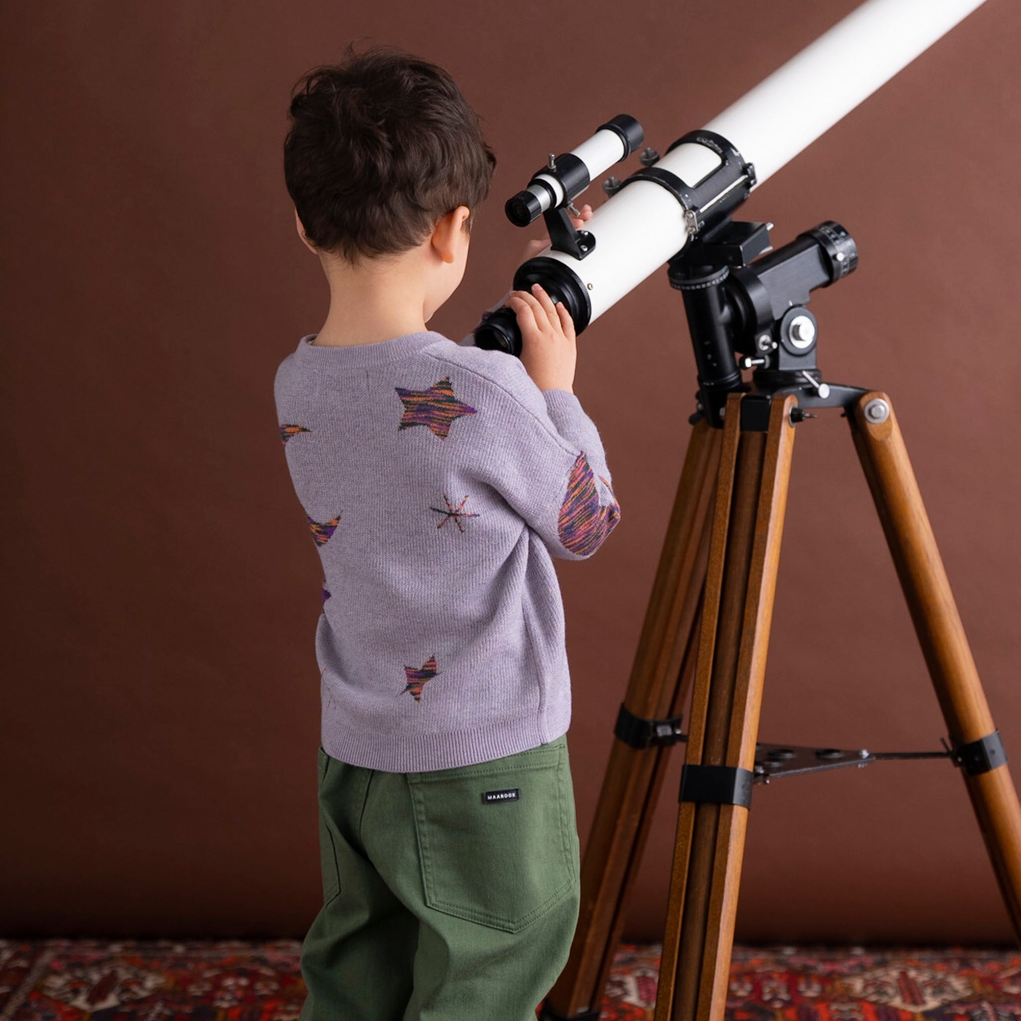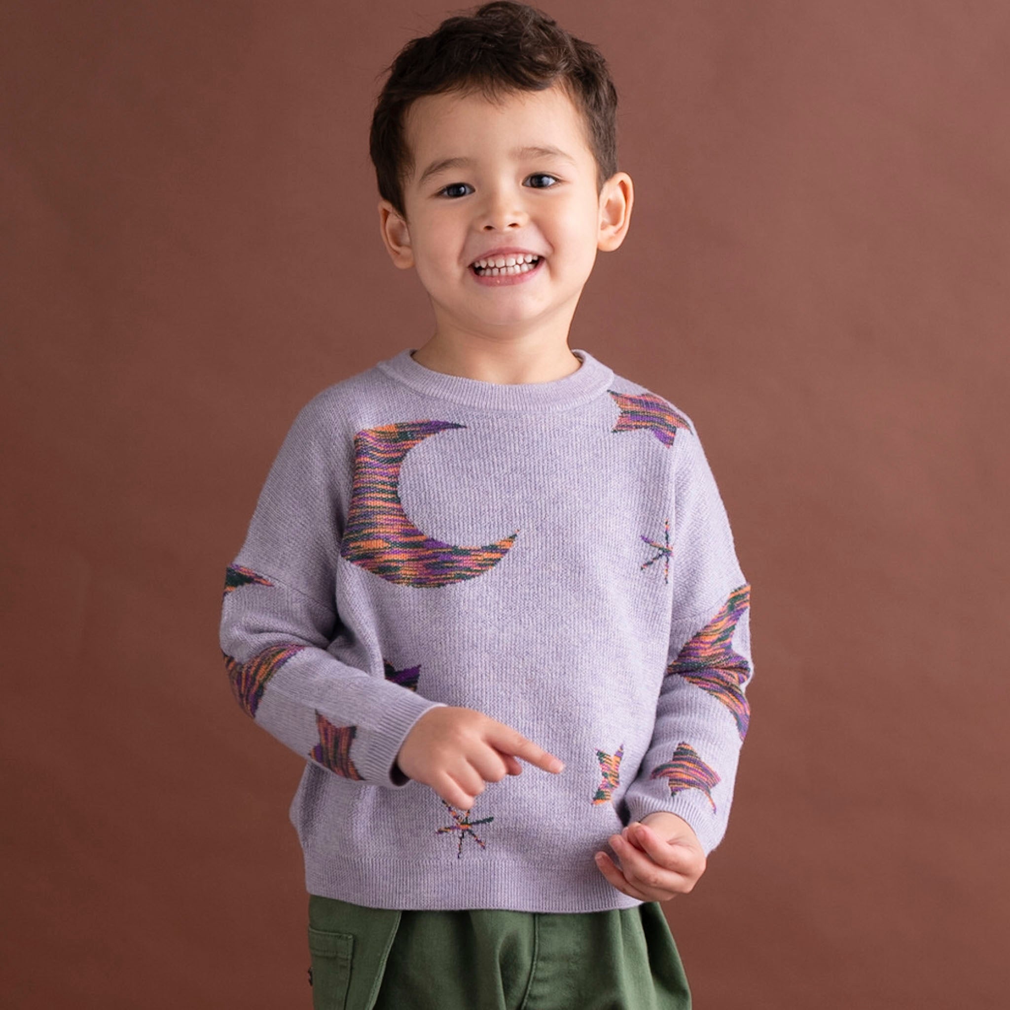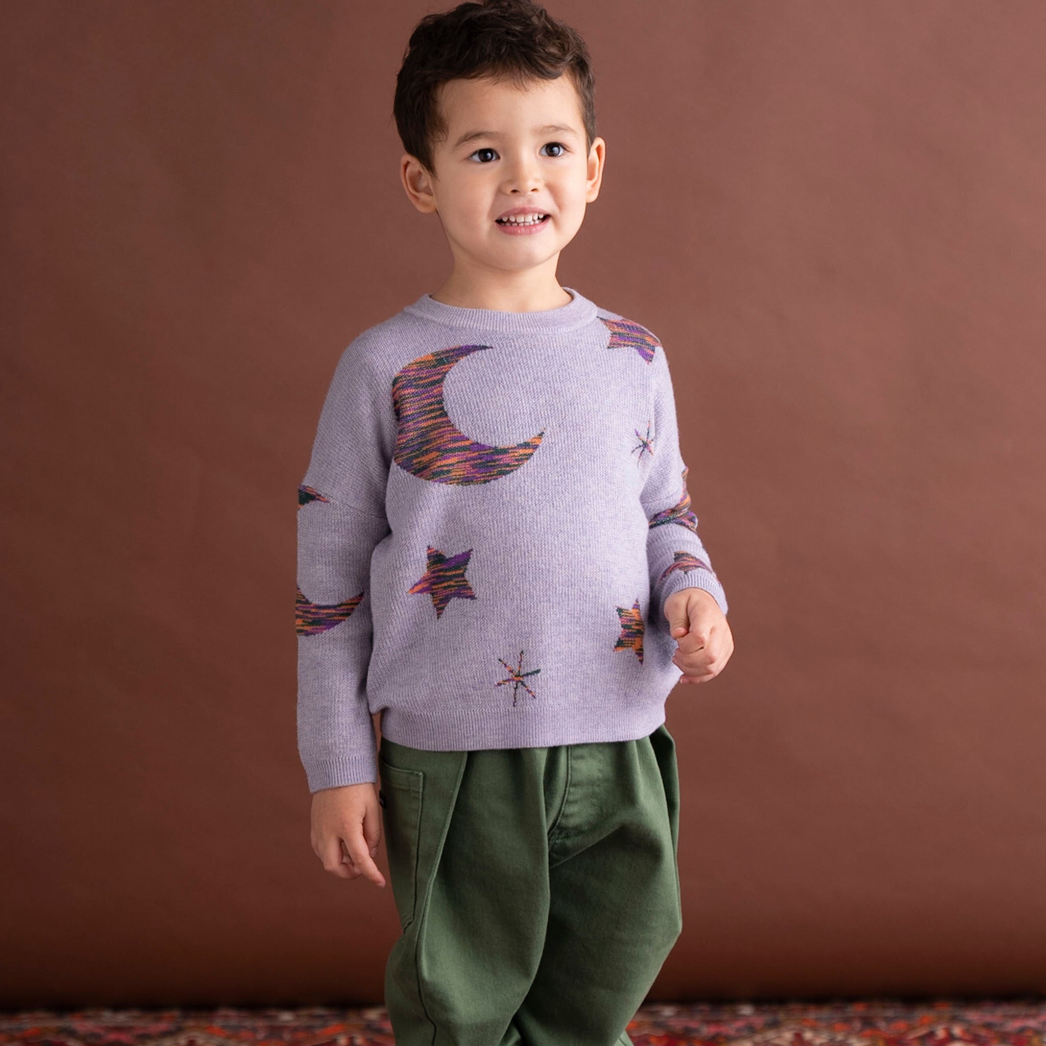 星や月が編み込まれたプルオーバーです。