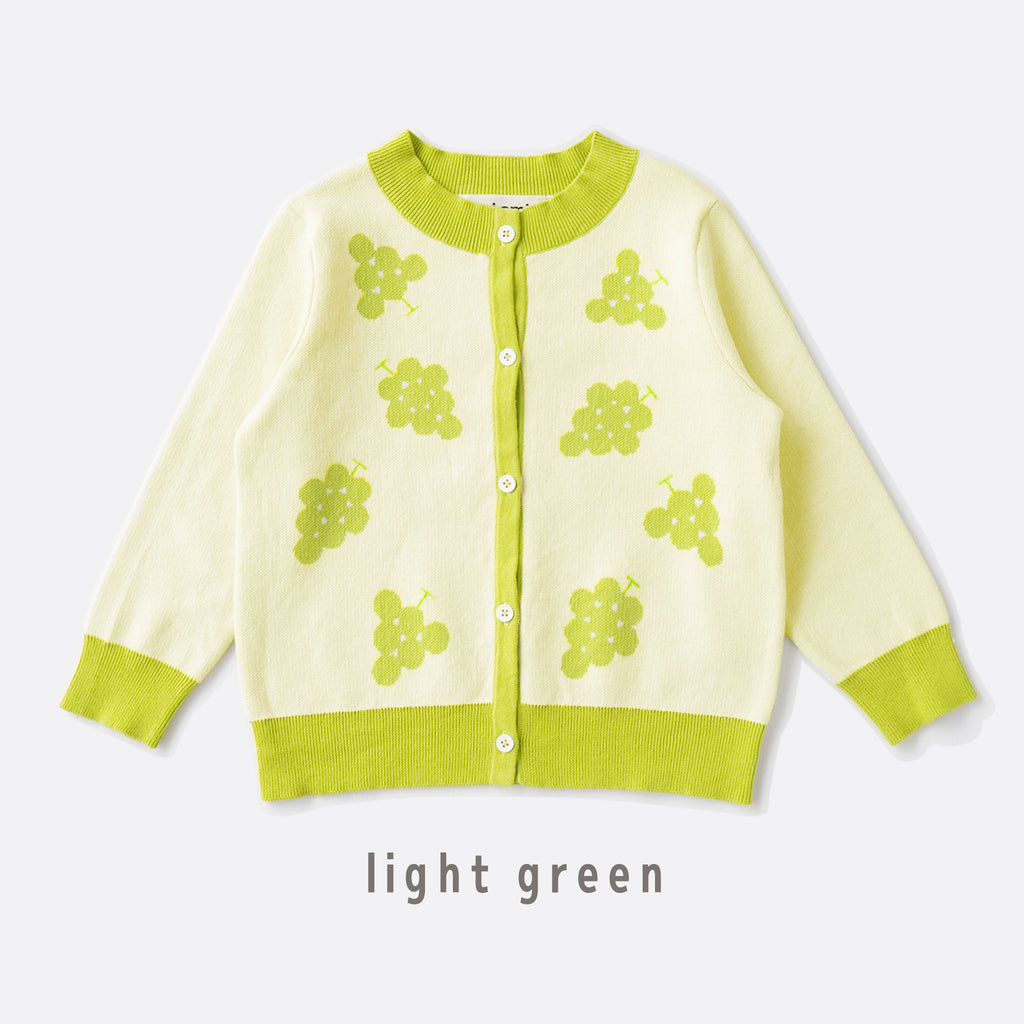 ぶどうカーディガンは、春、秋冬まで長く使えるコットン100%の素材で、お子様の肌に優しく快適です。