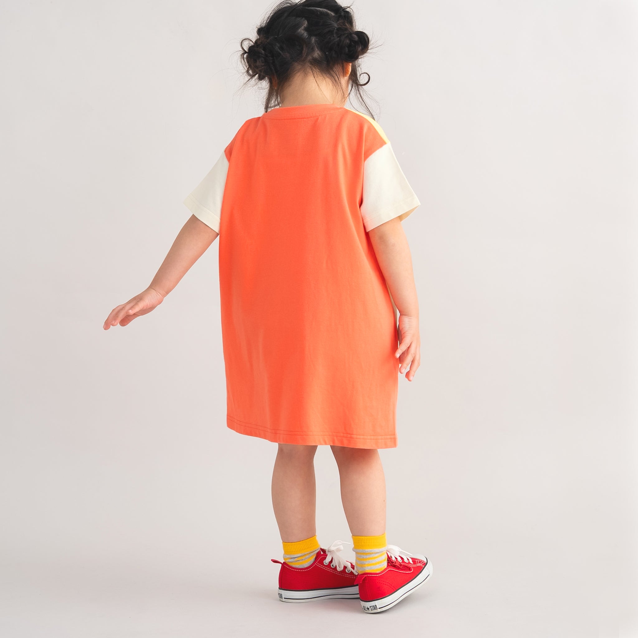 チェック柄のキズクマ刺繍が目を引く、遊び心たっぷりのワンピース 素材は肌にやさしい綿100%で、デイリー使いにも安心の着心地です。 前身頃は斜め切替、後ろ身頃がさりげなく前に回り込む立体的なデザインで、動きやすさとおしゃれ感を両立。 肩と背面には配色を取り入れ、シンプルながらも一枚でコーディネートが決まります。 フロントには、どこか愛らしい表情のチェック柄キズクマ刺繍をあしらい、ナチュラルで温かみのある印象に。 同じキズクマシリーズのTシャツも展開しているので、兄弟姉妹でのリンクコーデもおすすめです。 さらにTシャツにはフリーサイズ(ママサイズ)もあるため、親子リンクコーデも楽しめます。 お出かけにも、毎日の通園・通学にも活躍する、特別感のある一枚です。 |