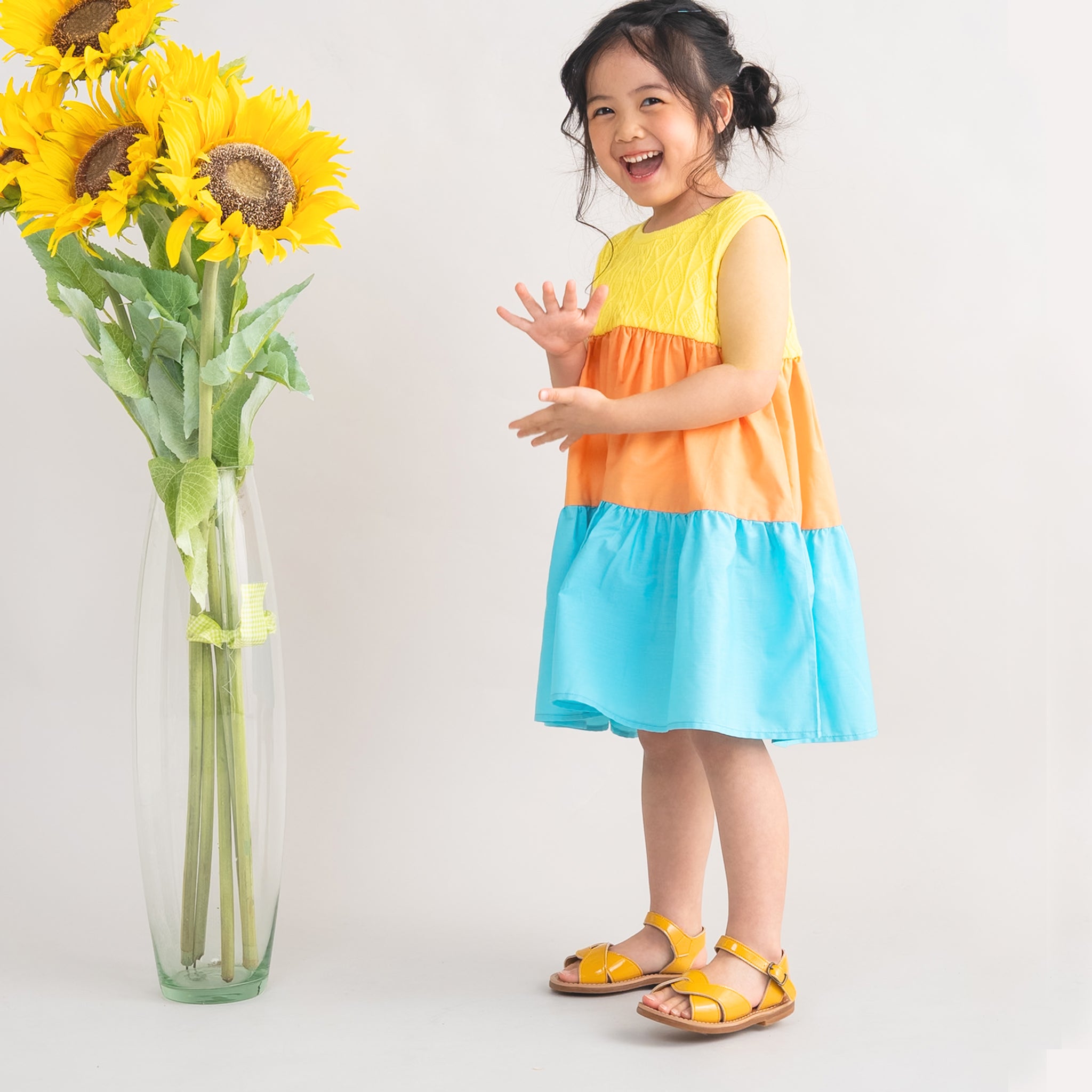 サマーニットと布帛を切り替えた、夏らしい配色が目を引くノースリーブワンピース。 上身頃はコットン100%のサマーニット素材を使用し、やさしい表情と程よいきちんと感をプラス。 スカート部分は軽やかな布帛素材で、ふんわり広がるAラインシルエットが魅力です。 カラフルで元気な配色は、1枚でコーディネートが完成する主役アイテム。 ノースリーブ仕様なので暑い季節もすっきり着られ、夏のお出かけやデイリー使いにぴったりです。 85cm〜145cmまで幅広いサイズ展開で、姉妹コーデにもおすすめ。 着るだけで夏気分が高まる、明るく楽しい印象のワンピースです。 洗濯機洗い可能で、お手入れも簡単。デイリーにもギフトにもおすすめの一枚です。 |