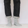この靴下はホールガーメントという技術を使い、内側を全面シルク・外側をコットンの2重構造つくっているので1枚で2枚分の暖かさがあります。