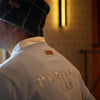 サイドはリブ編みにしてストレッチ機能がヴィジュアルで見えるように工夫し背中には落ち着いた刺繍糸カラーでブランドロゴを入れました。