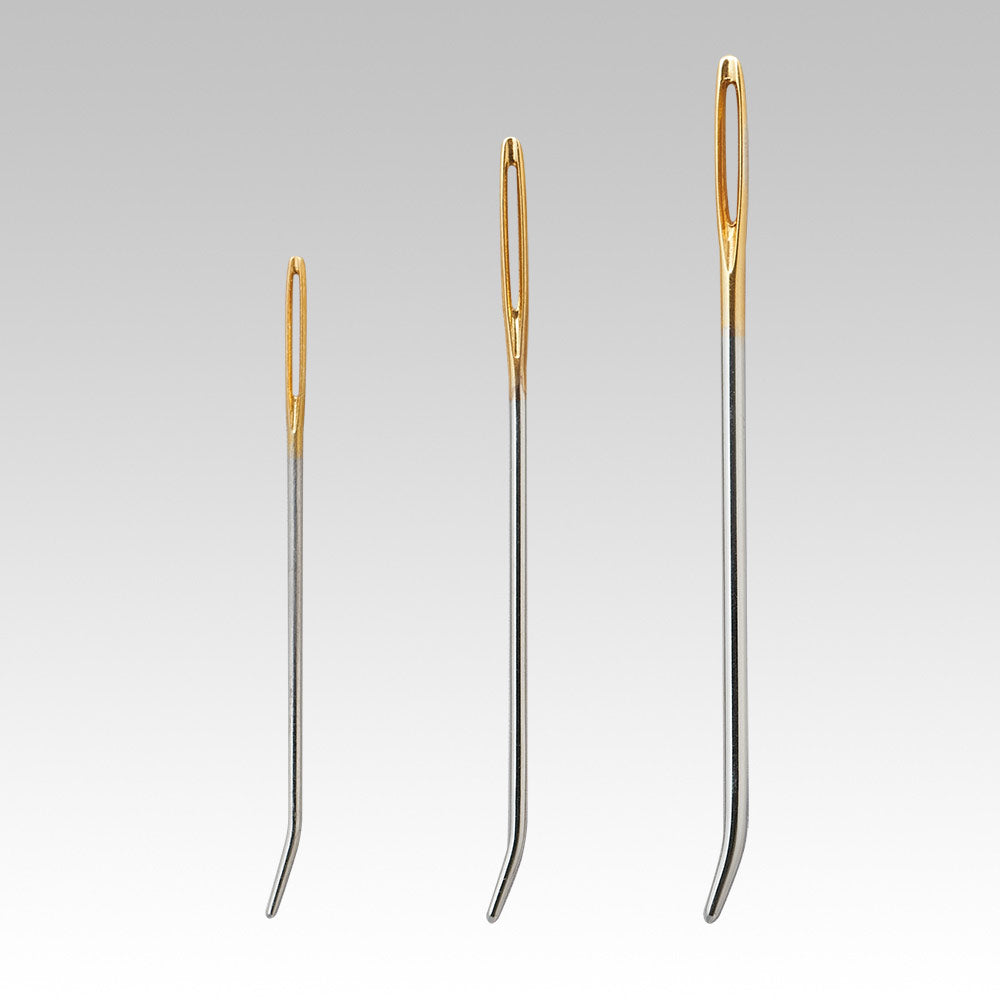 針先が曲がっているので、編み目を狙ってすくいやすいです。とじ・はぎや1目ゴム編み止め、巻きかがり、糸始末の用途や、あみぐるみ作り、編み地への刺しゅうにも便利です。