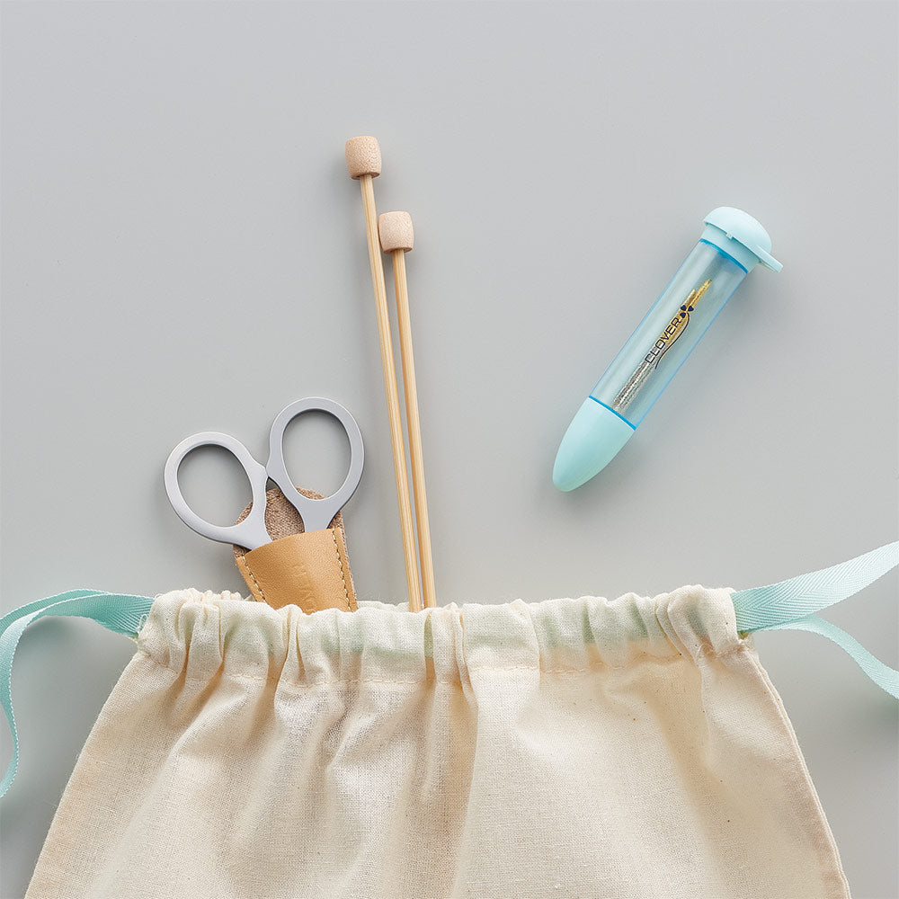 持ち運びに便利なケースは、中身が見やすい透明カラーです。外出時に編み物を楽しむ時に便利です。