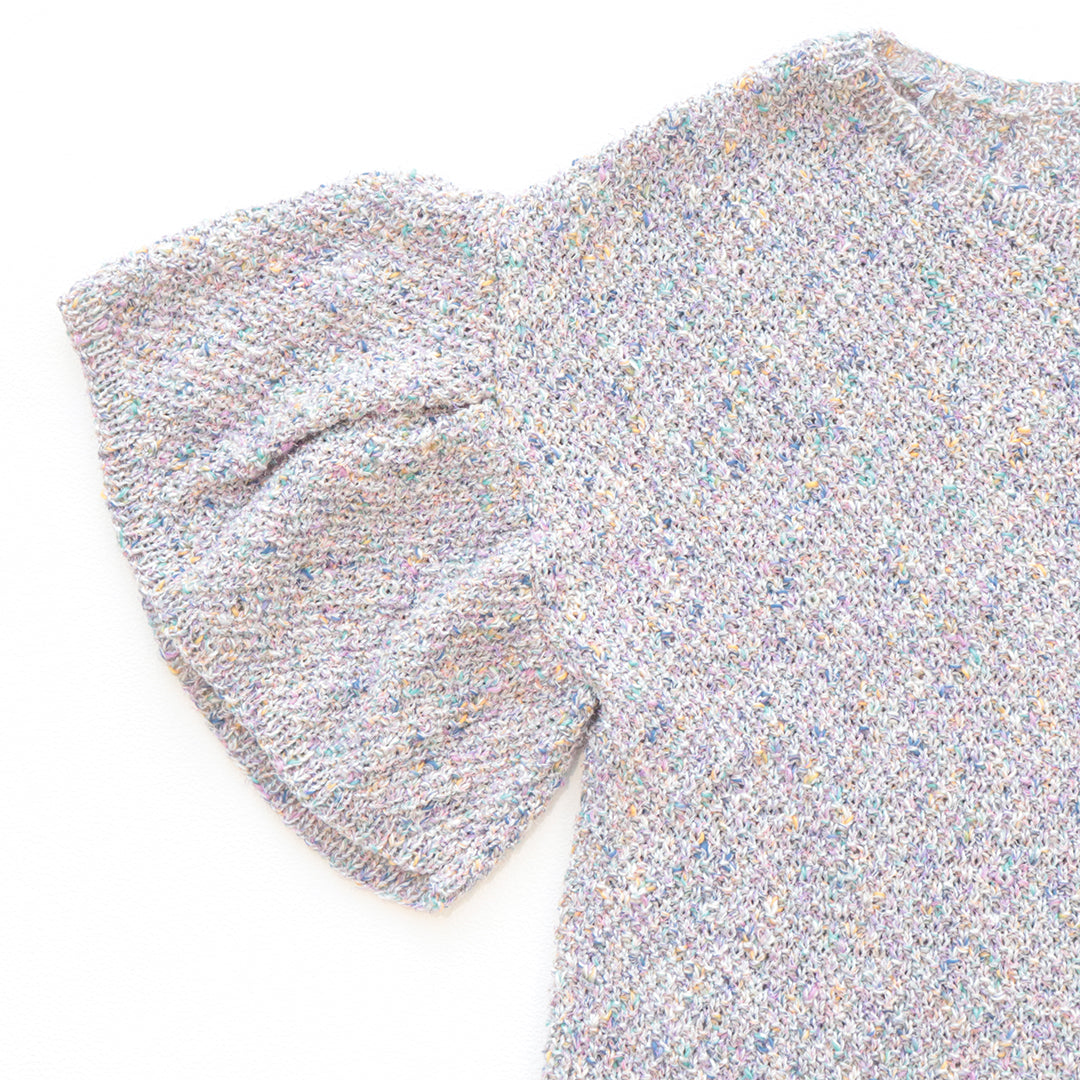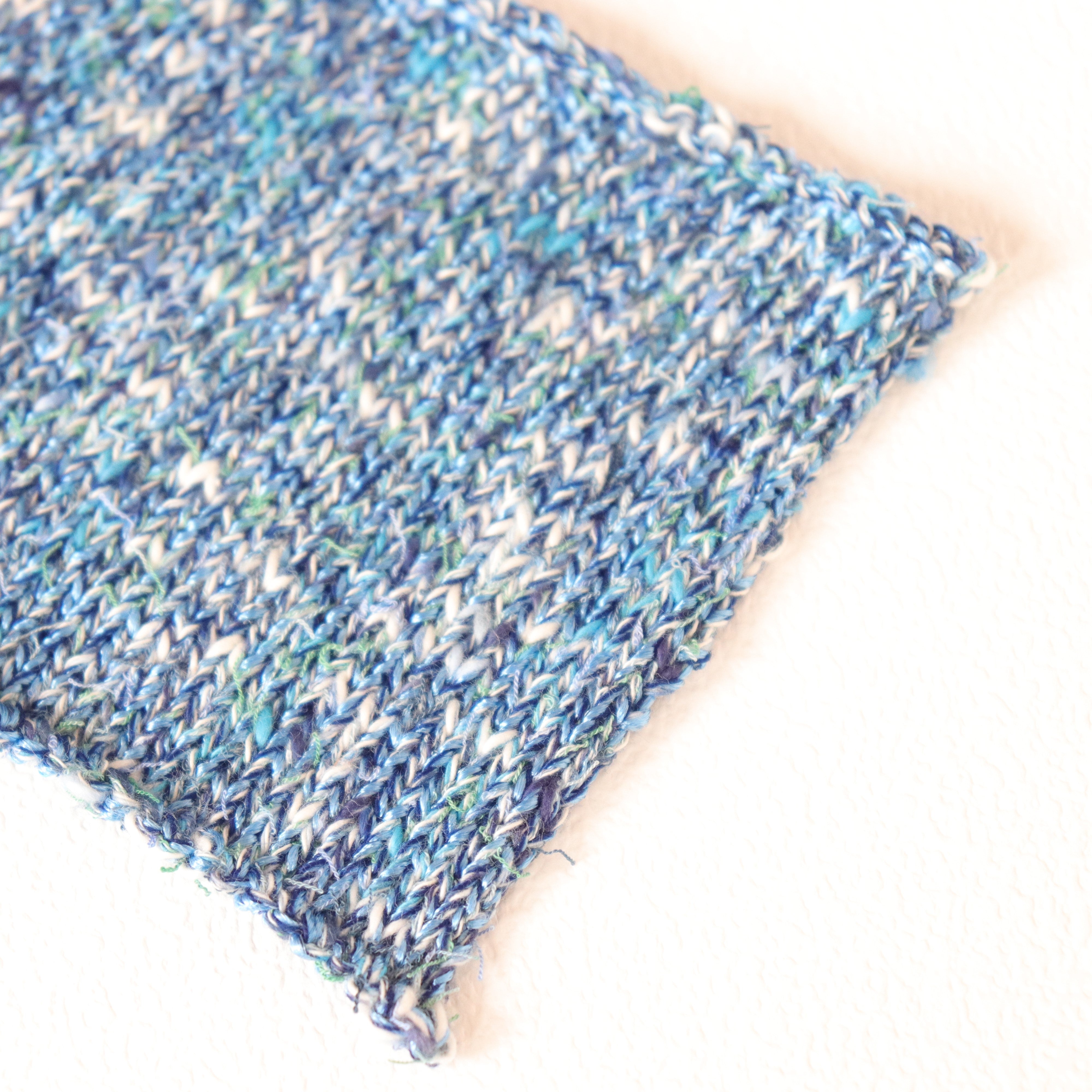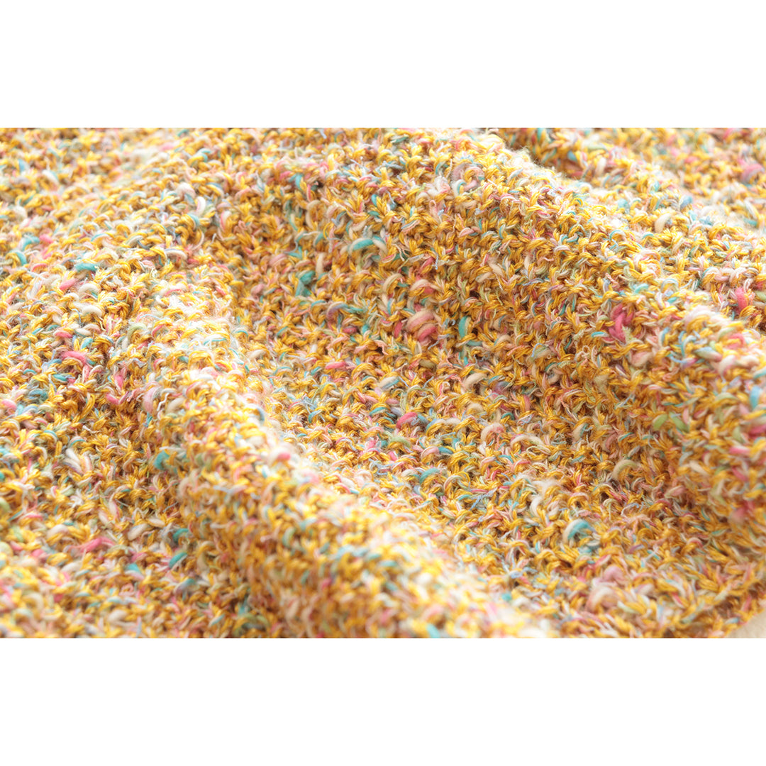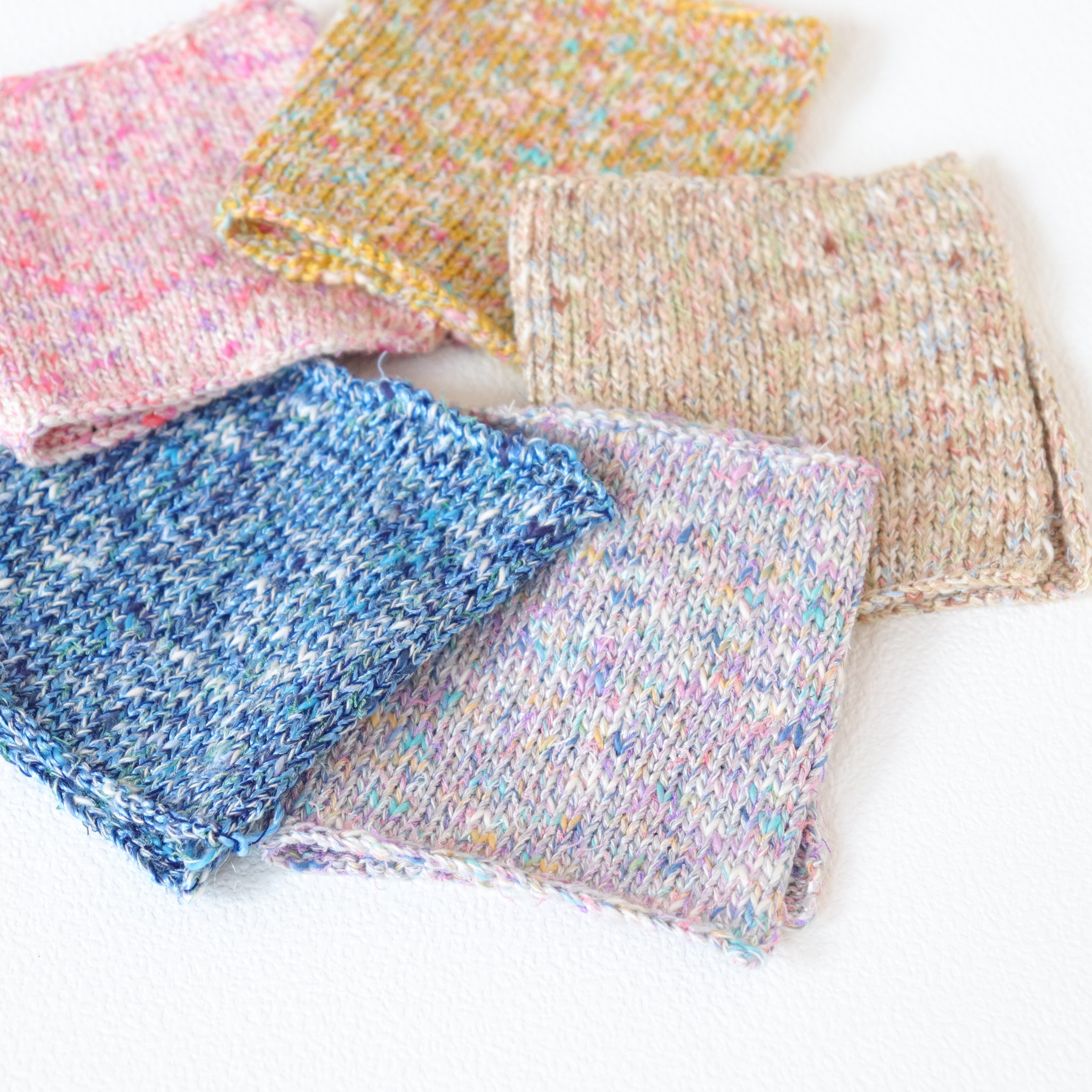 編地は柔らかくしなやか、テロンとした風合いになります。風合い・形状の異なる様々な糸を撚り混ぜて表情豊かに仕上げているのでシンプルな糸と引き揃えも楽しめる糸です♪