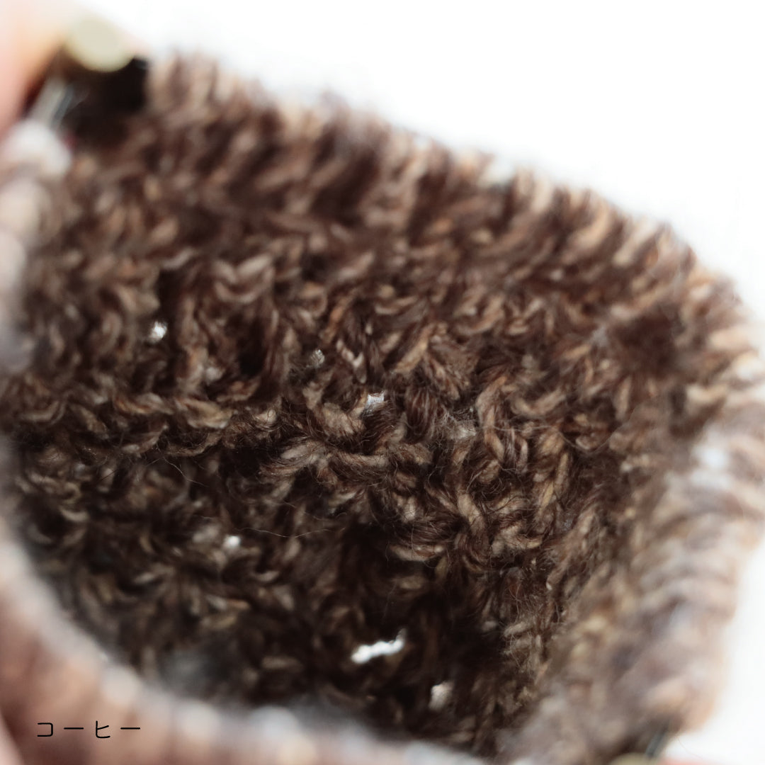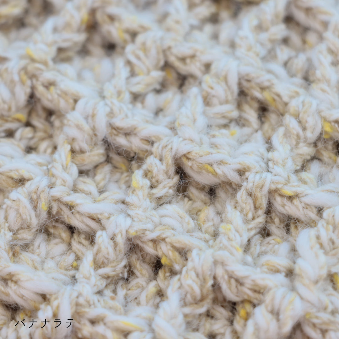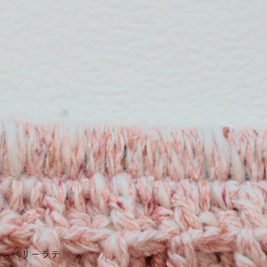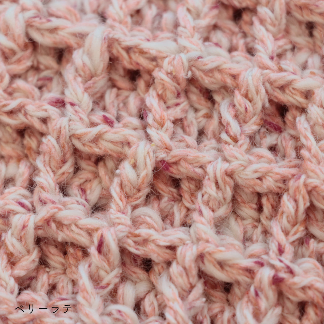 つぶつぶと散りばめられたネップがキャンディのような可愛らしさ。編んでいる時間がキャンディを食べている時のような甘くて幸せな癒しの時間になりますように。