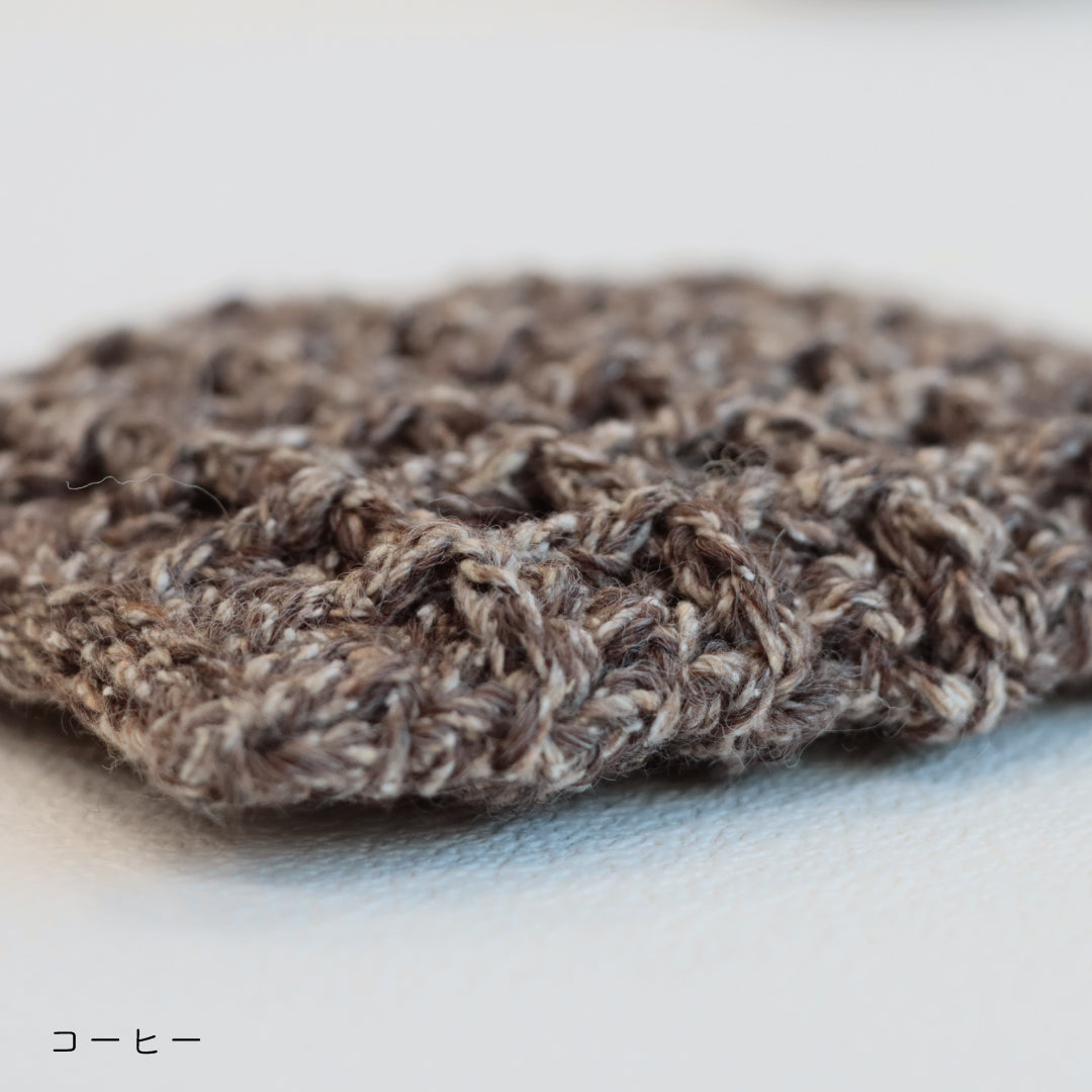 しっかりとした編み地で厚みがあります。毛糸ならではのやわらかさと手に取ったときのぬくもりも感じていただけます。