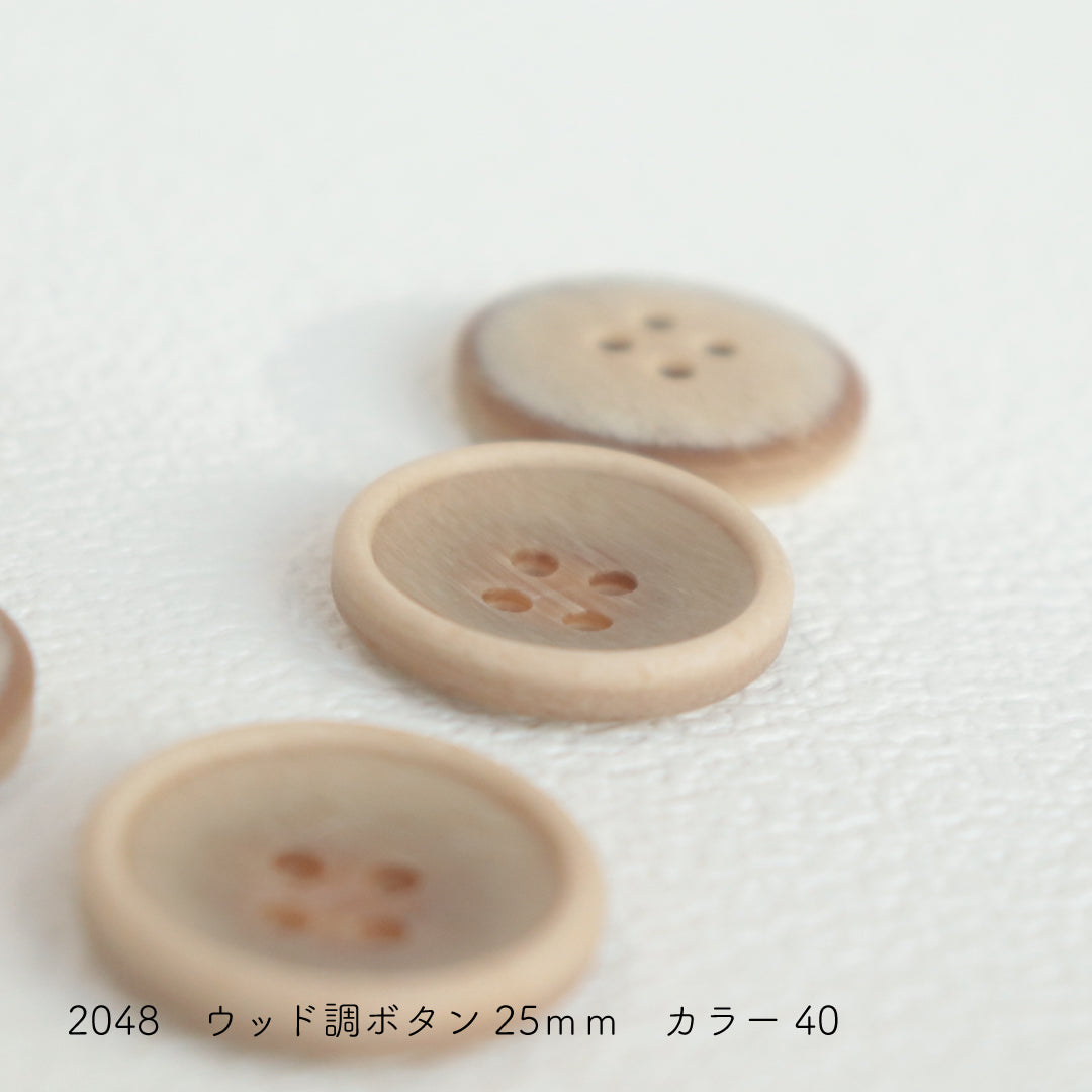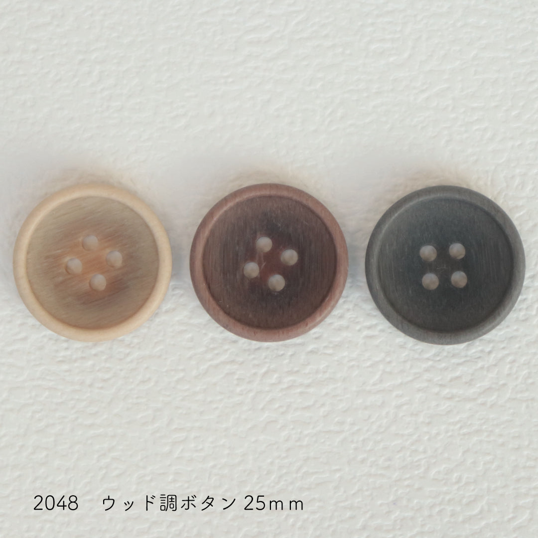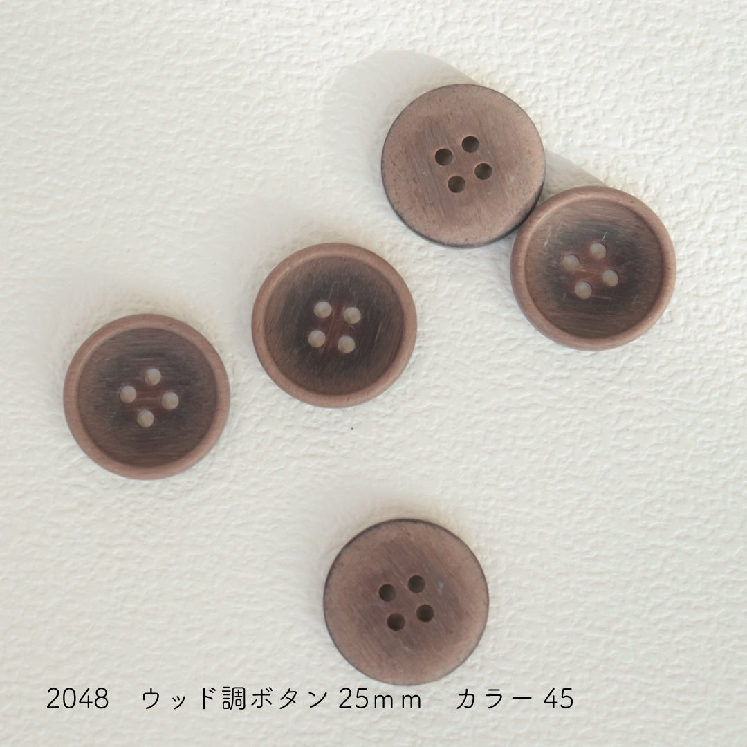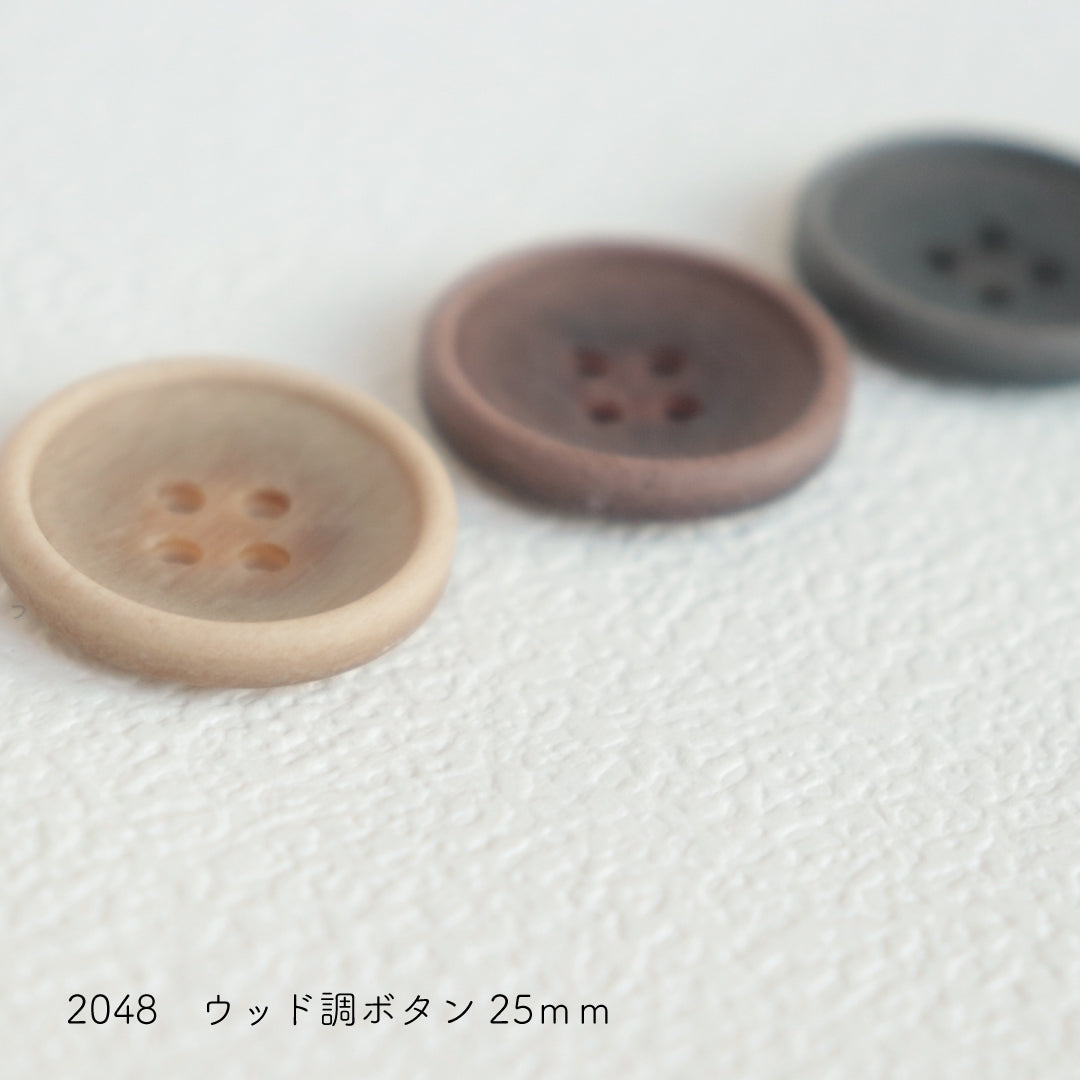 ウッド調のナチュラルな雰囲気のボタンでえす。カーディガンやポーチのボタンにおすすめです。1点からご購入いただけます。