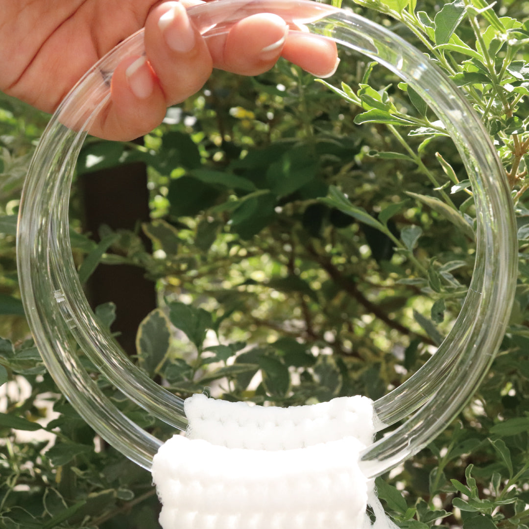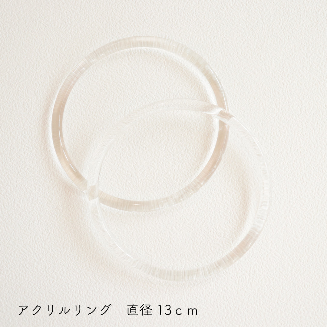 涼やかなアクリル製のクリアハンドル。バッグの取っ手に使えばぐっと夏らしい雰囲気と作品の完成度があがります♪また、毛糸で編みくるめば冬のバッグにも使えます。