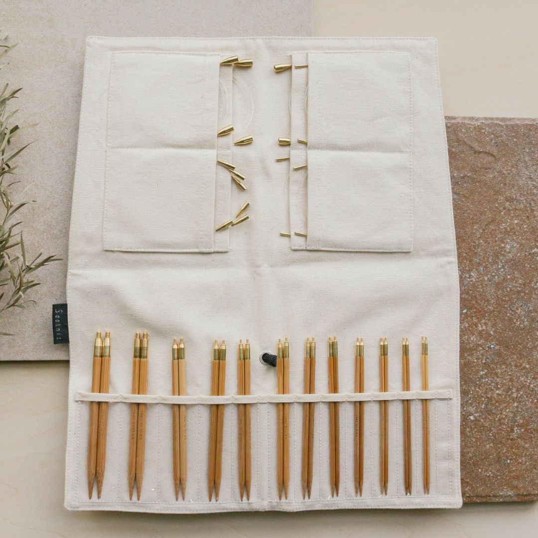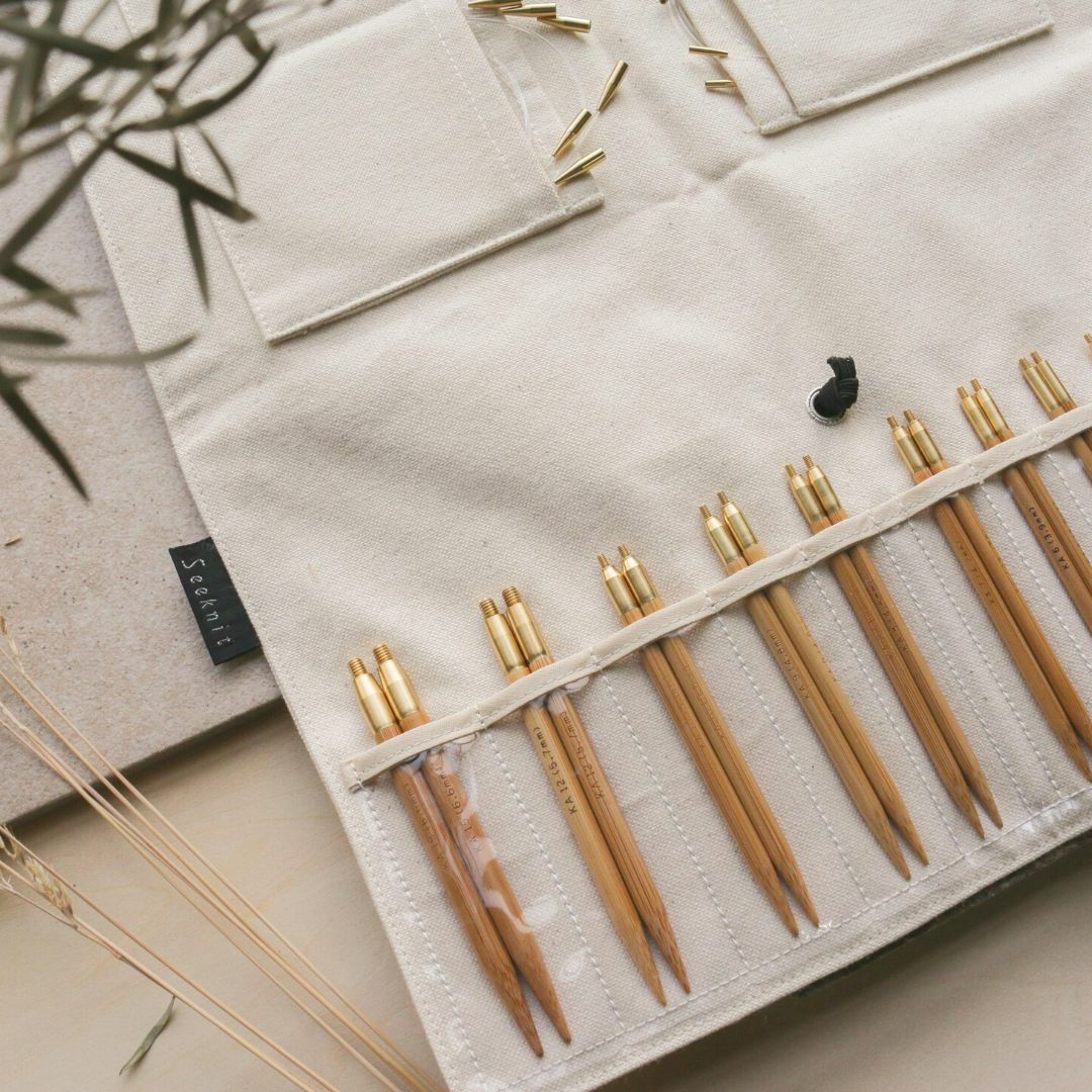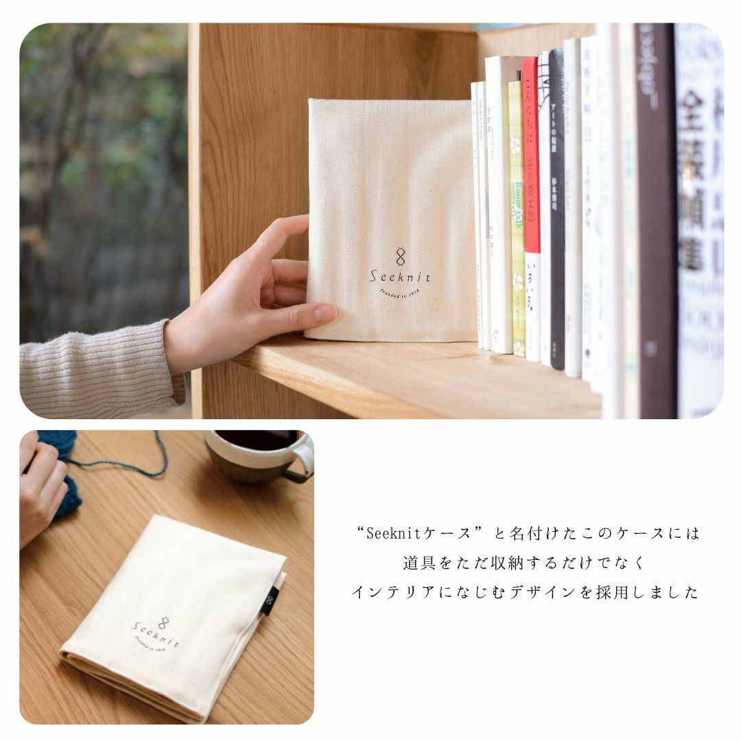 針先・コードをコンパクトに収納できるキャンバス地の“Seeknit ケース2”に入れてお届けします。