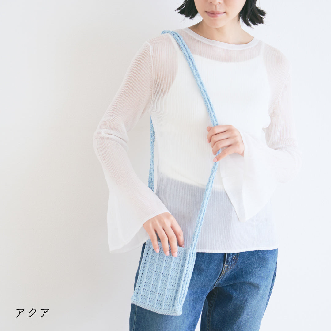麻に似た風合いでサラッと軽く、しっかり編めばバッグや小物にゆるく編めば夏のウェアなど様々な作品でお使いいただけます。