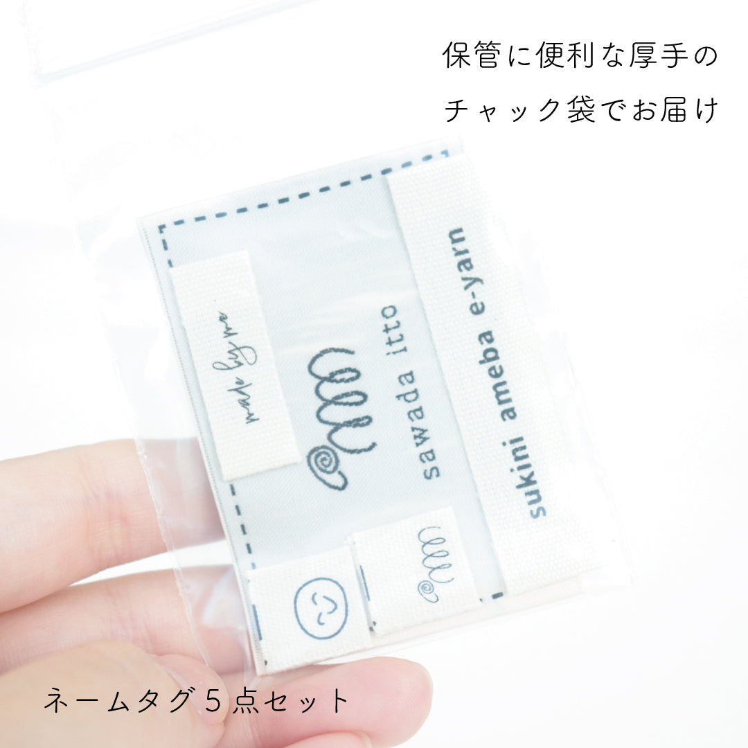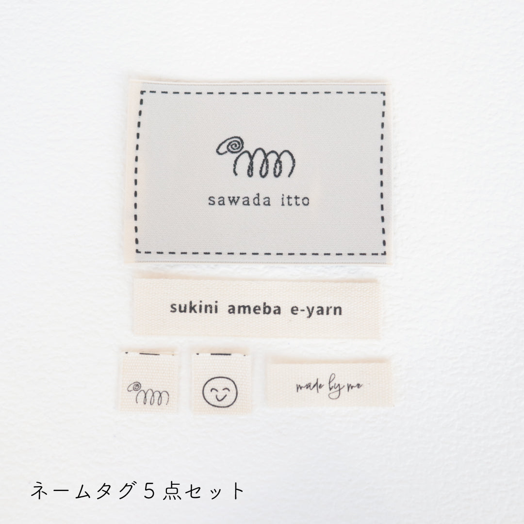 他のネームタグは全てプリントです。コットンで作られており、編み物作品との親和性がとても高いネームタグになりました。