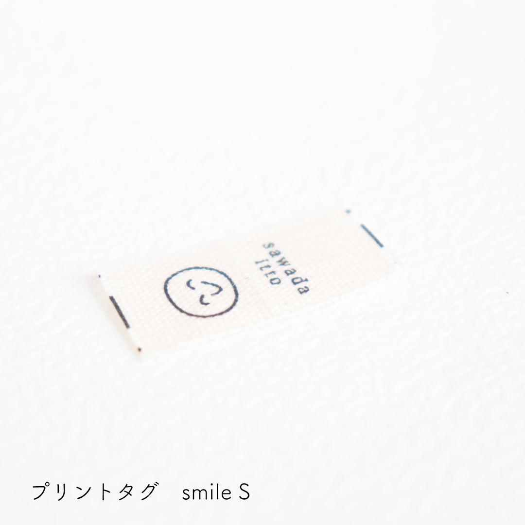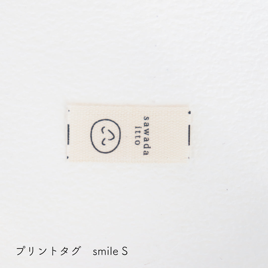 sawada ittoのスタッフの手書きのにこちゃんマークです。 素朴な雰囲気がとても可愛くなりました。作品に挟むようにつけるタイプのネームタグで、さりげなくつけれるのがオススメポイントです。