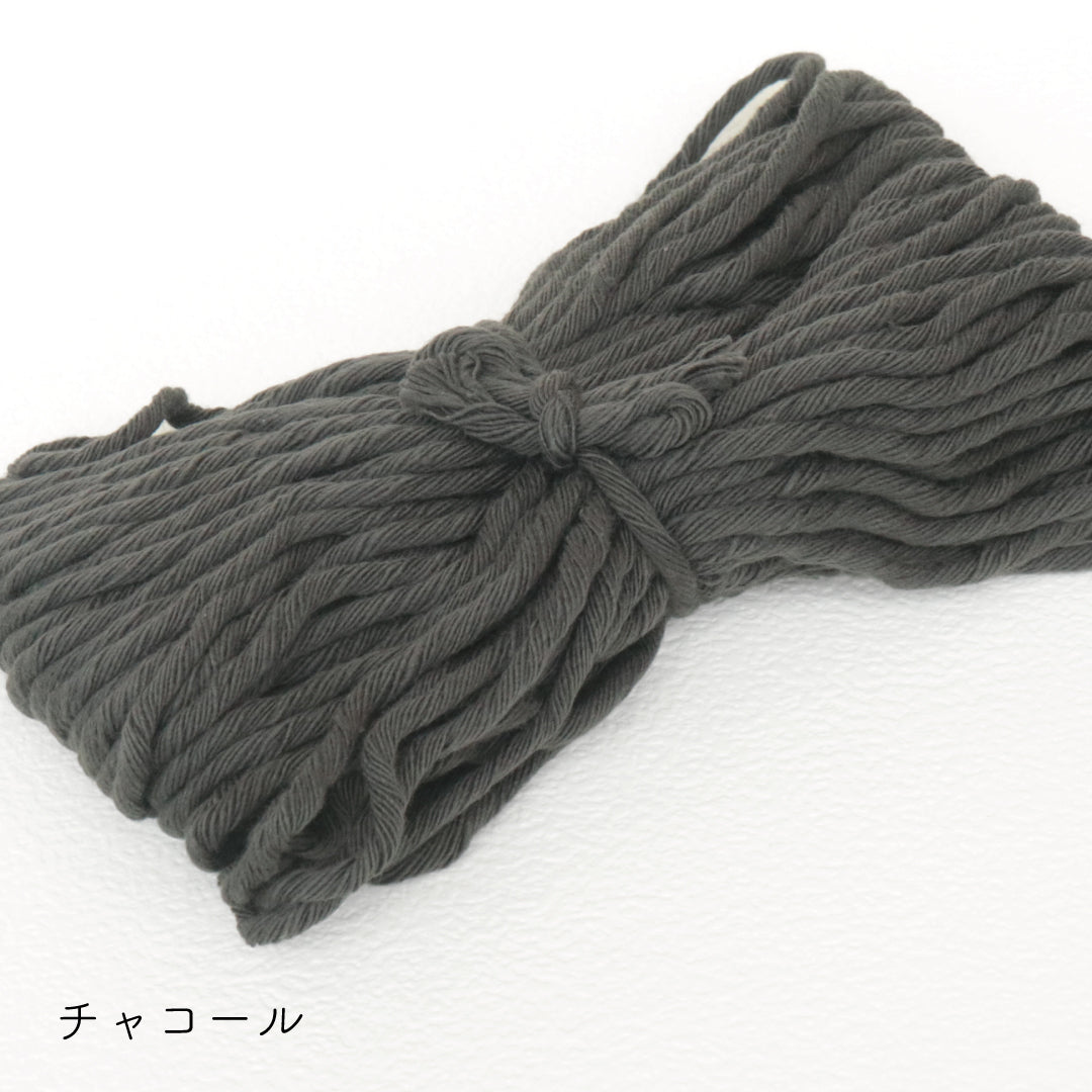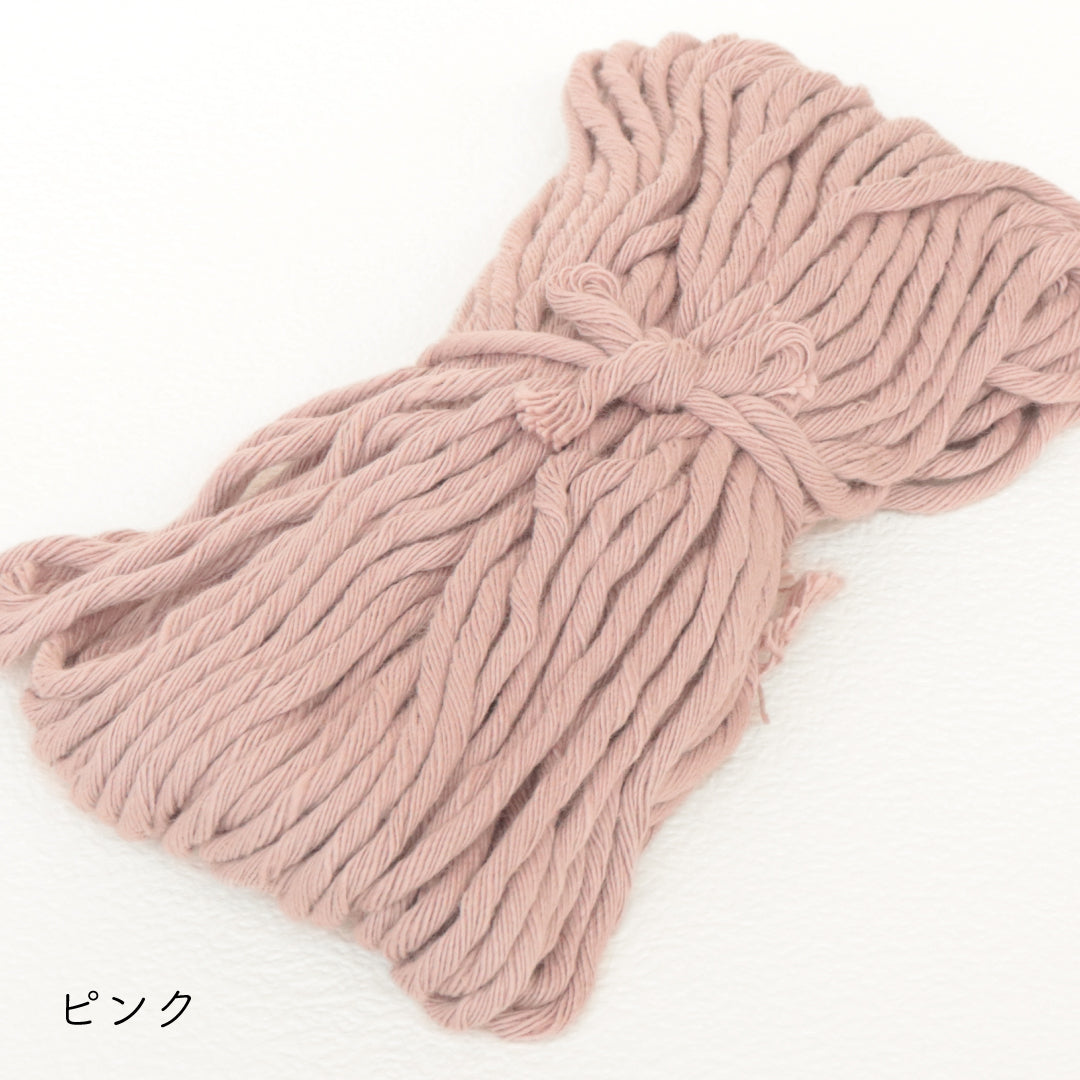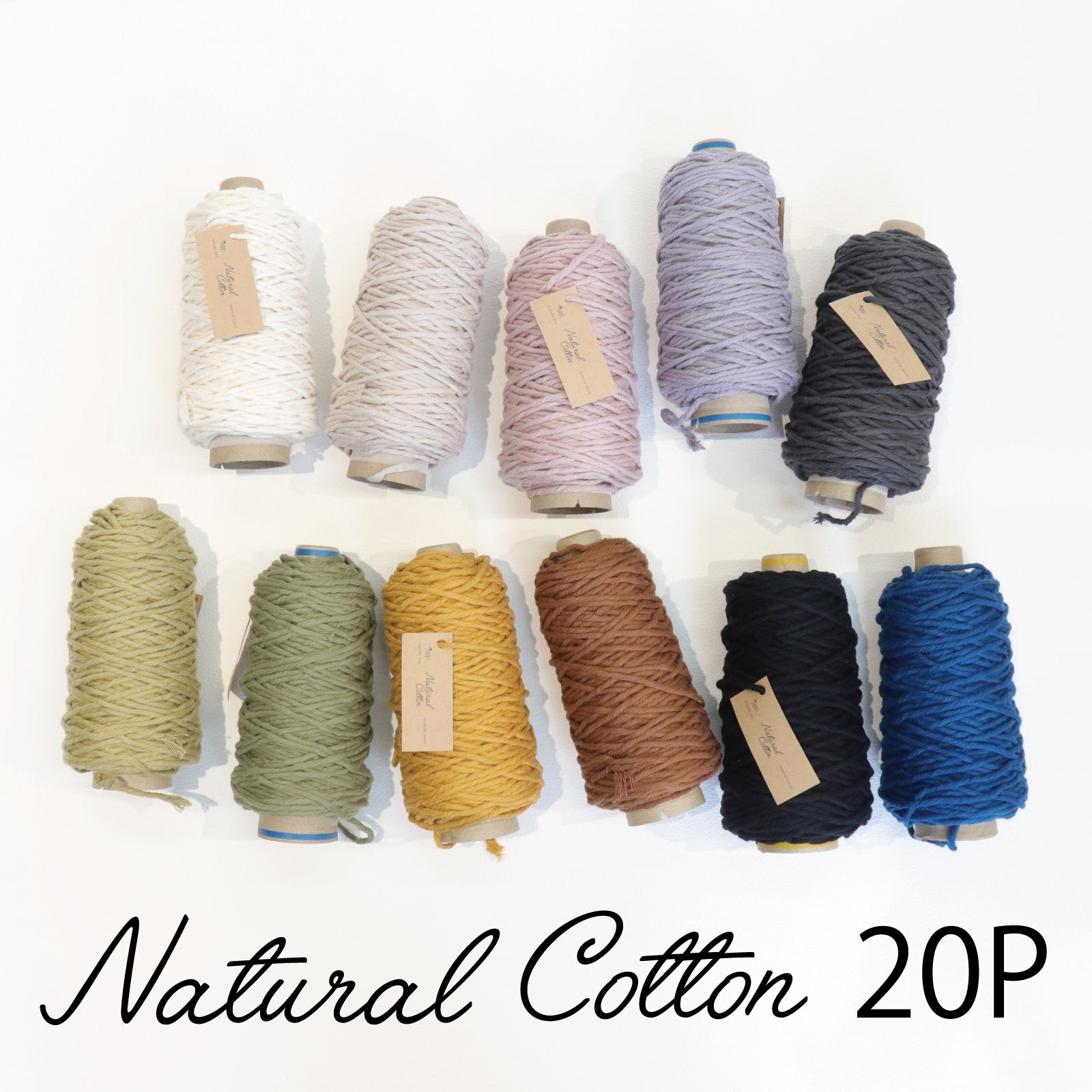 マクラメコードとして大人気のナチュラルコットン。長い繊維と短い繊維を絶妙なバランスでブレンドして手紡ぎ風に仕上げました。コットンの細い糸を20本撚糸しており、太さは約3.5mmになります。やわらかなコットンの雰囲気を生かしたこだわりのカラーリングを豊富にご用意。カップホルダーや、スマホポシェットなど1カセで作ることができます。バスケットやランチマットにもおすすめです。