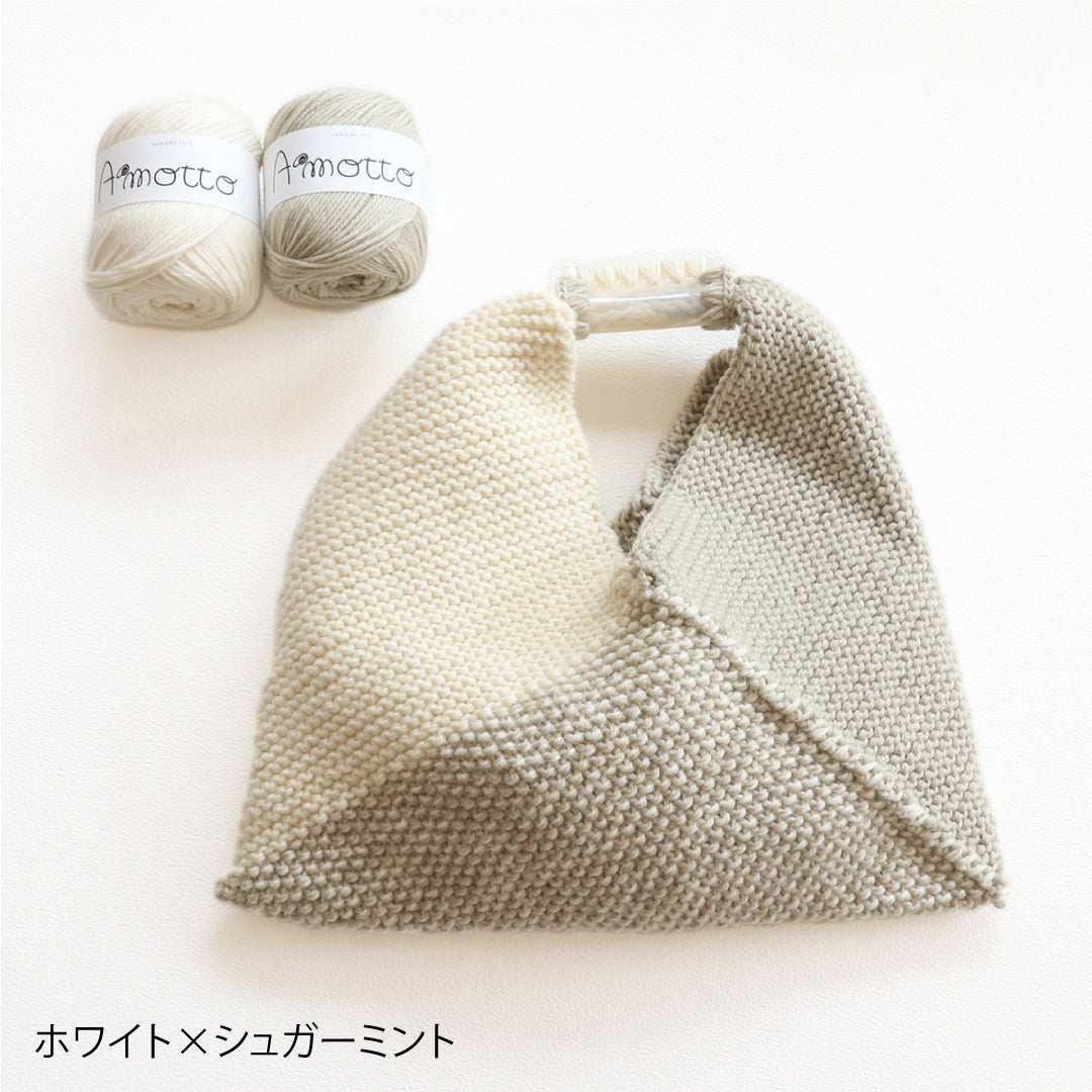 棒針編みの基礎的な編み方『ガーター編み』と『鹿の子編み』だけで可愛く仕上がります。長方形の編地をイレギュラーにはぎ合わせることでトライアングルになる工程も楽しみながら作っていただけます。2本どりで形がしっかり表現でき、さくさく編むことができますよ♪グラデーションも楽しめるのが2本取りならでは✨色合わせ次第で全く雰囲気の違う仕上がりになるので、コーディネートに合わせて沢山作ってみてください♪