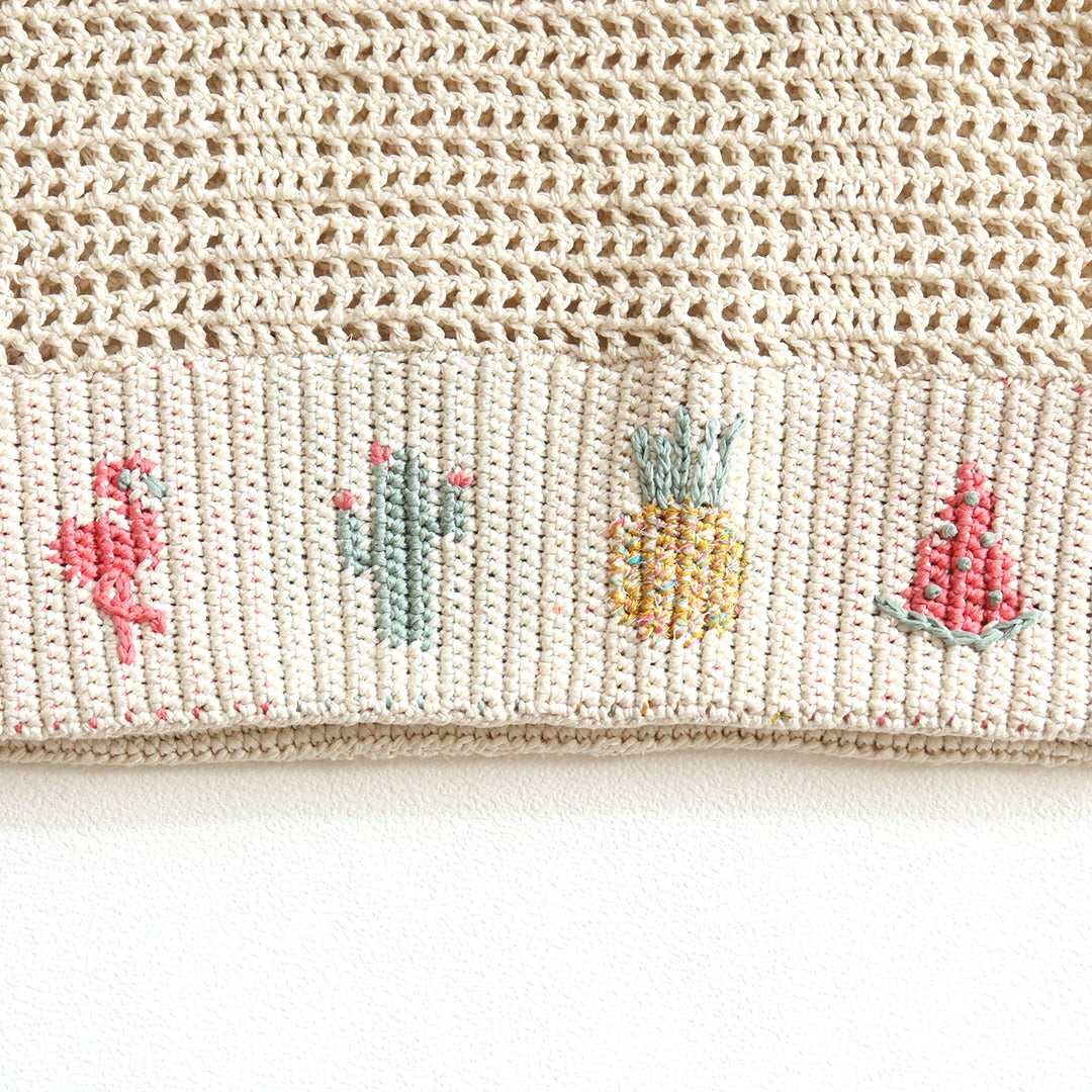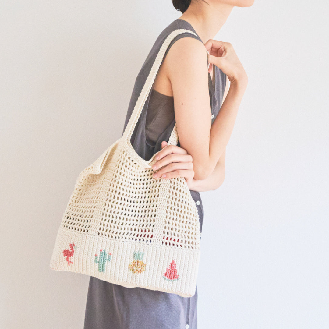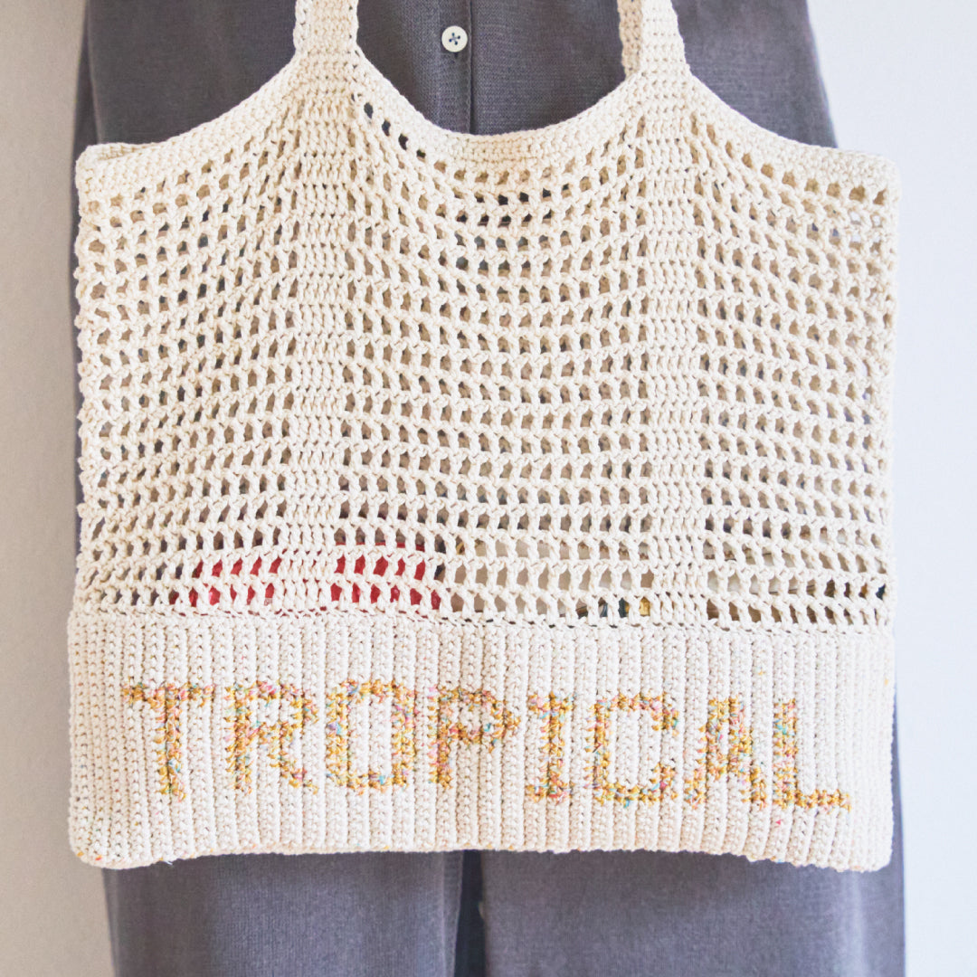 サラッとした風合いのCOTOLIにキラキラと色んな色が混ざったRuFが映えるトロピカルなデザイン!底はしっかりした編地に仕上がるので耐久性も◎